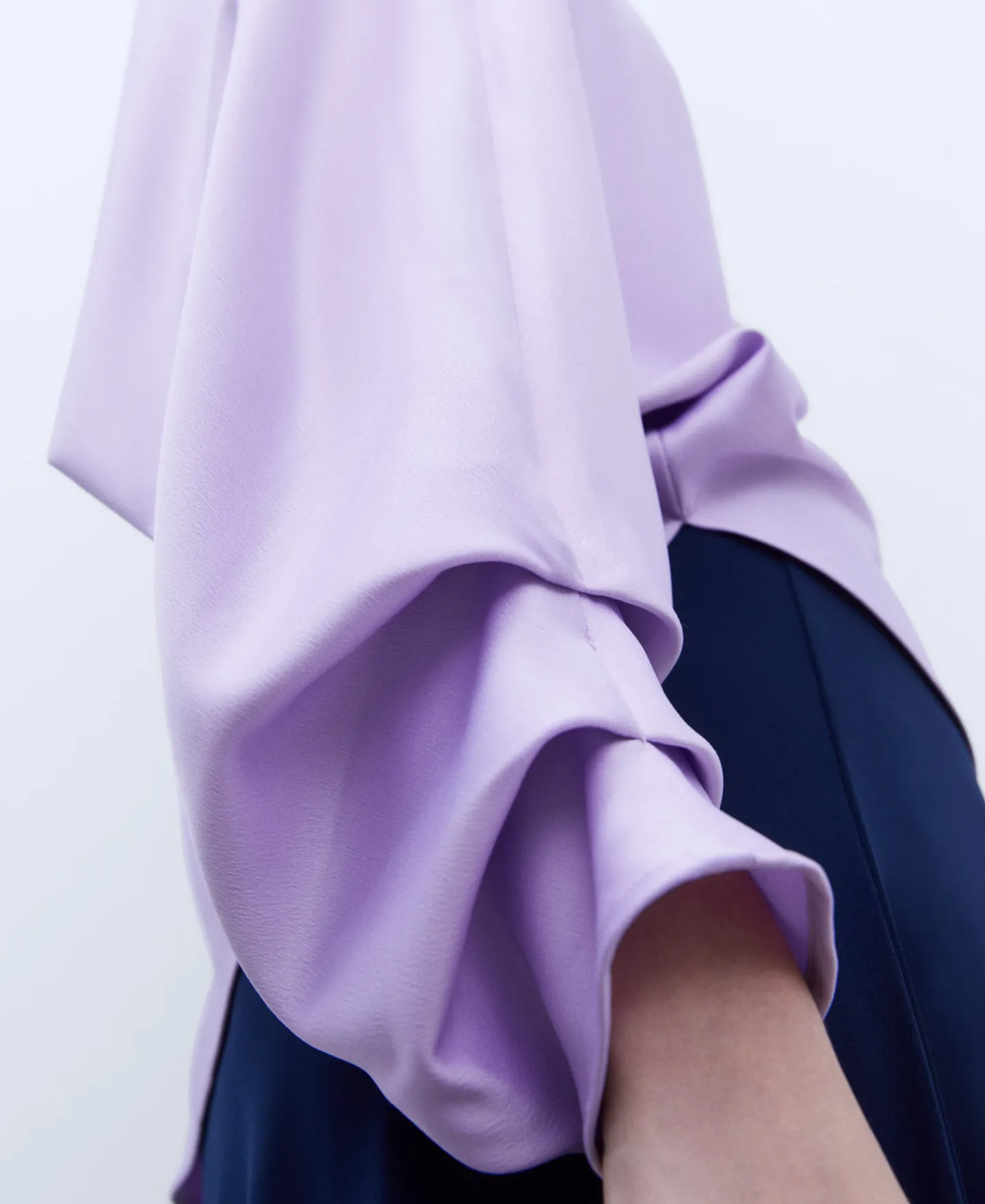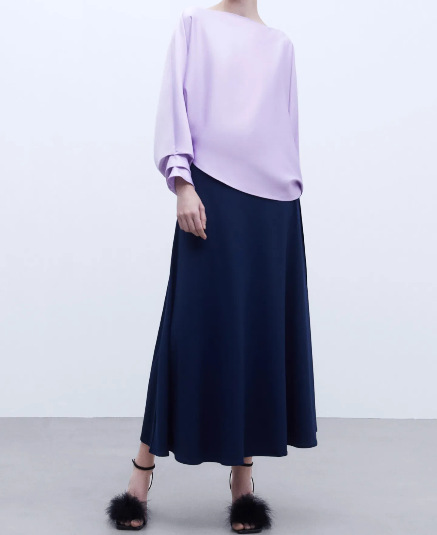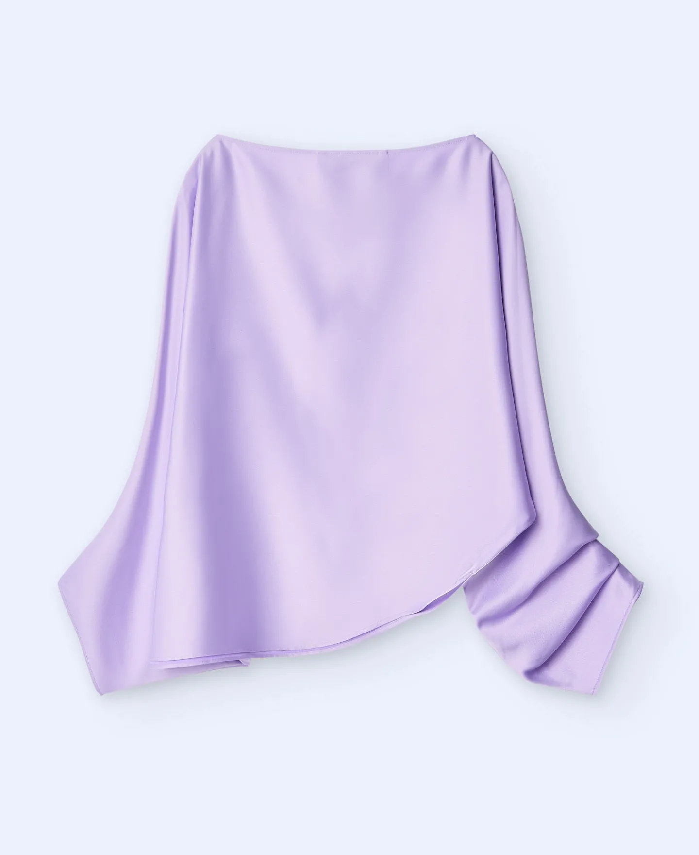 Blusa Com Decote Barco. Manga Japonesa Assimetrica. Um Punho Franzido. Bainha Assimetrica.