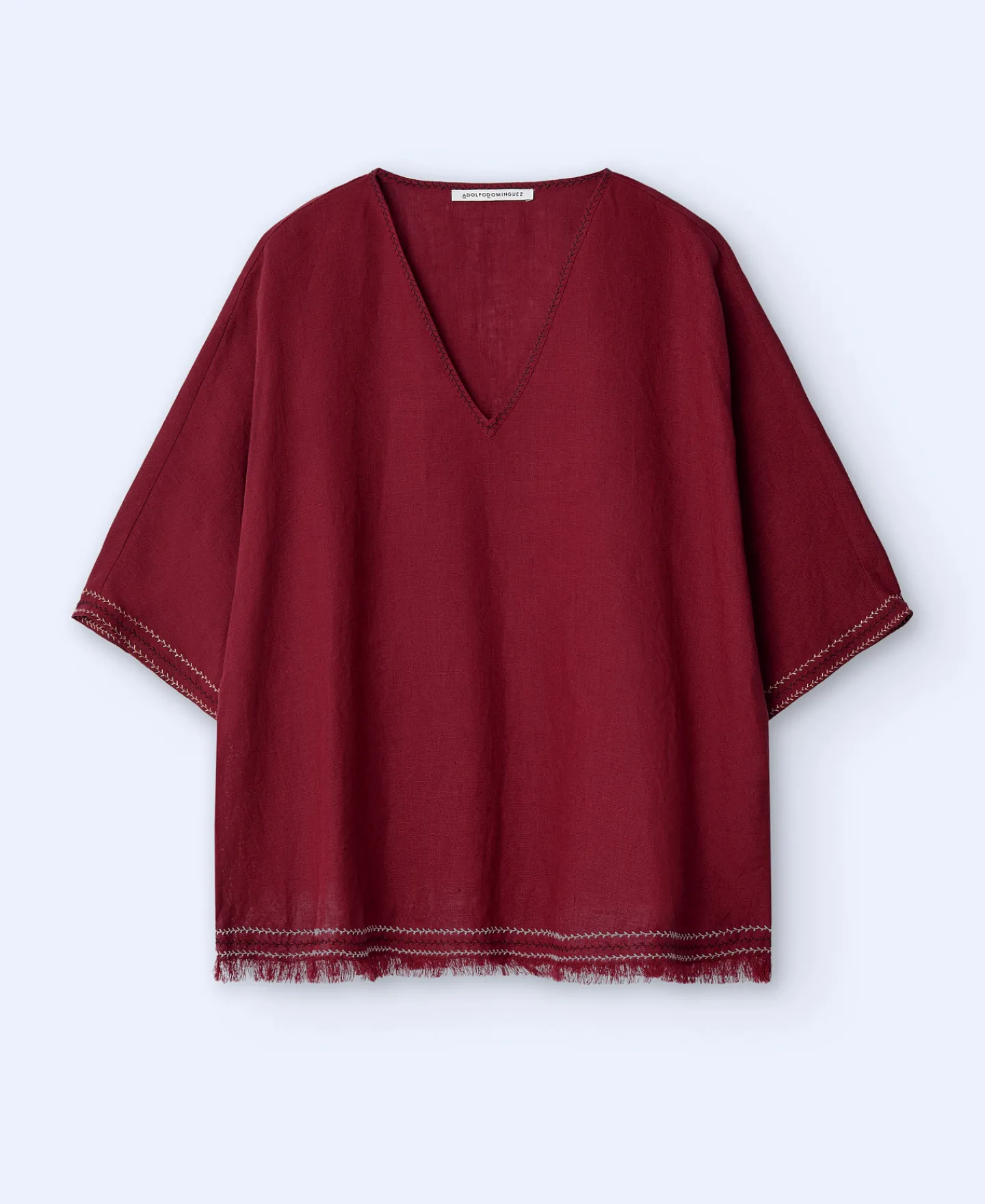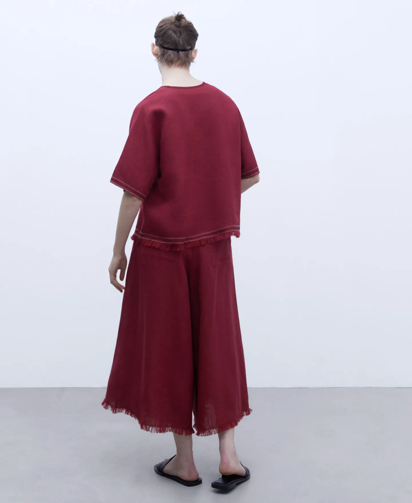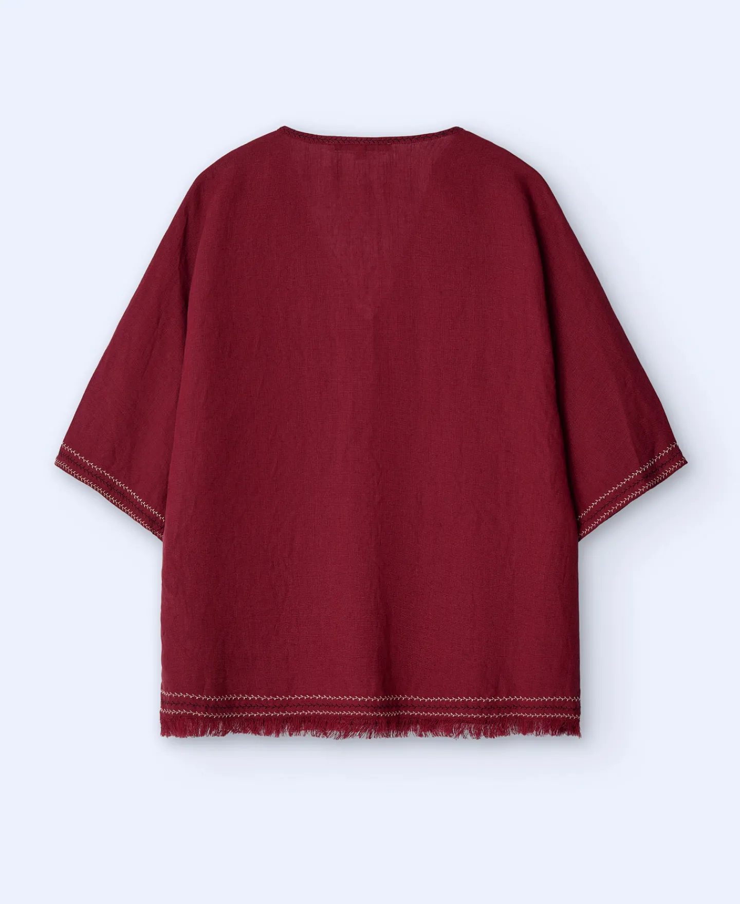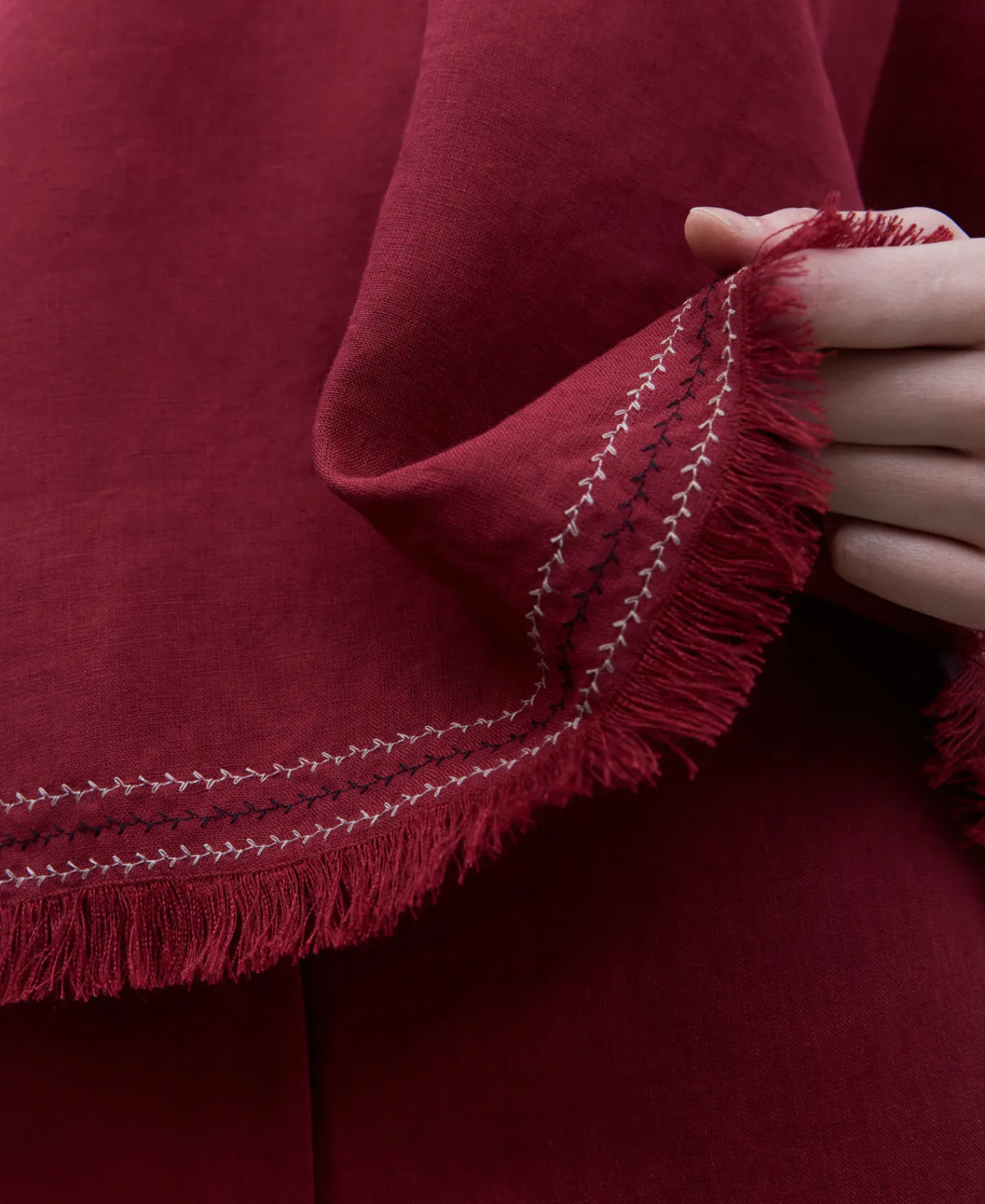 Manga Japonesa. Franjas Nas Mangas E Bainha. Detalhe Pespontos.100% Linho EuropeuDecote Em VFranjas