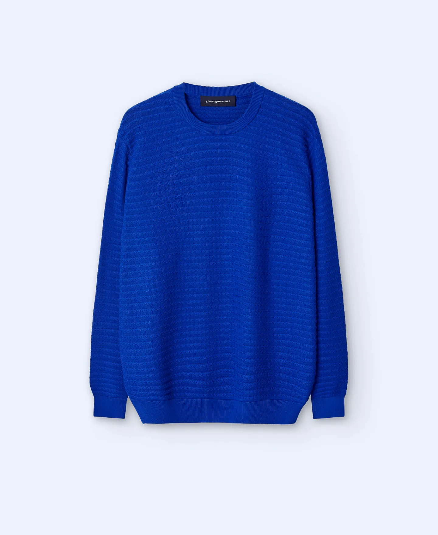 Camisola De Gola Redonda Em Algodao. Manga Comprida. Estrutura Quadriculada. Acabamentos Canelados.