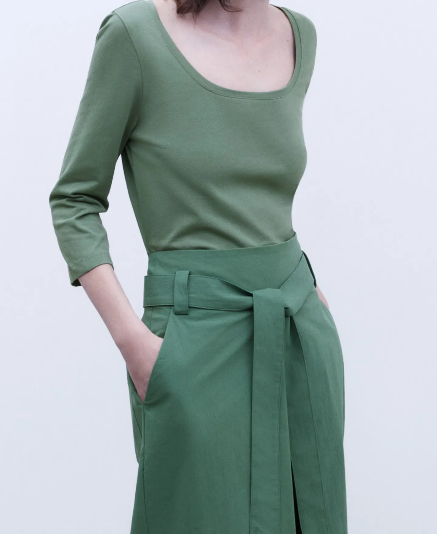 Camisola Fluida. Decote Banheira. Manga Comprida. Logotipo Bordado. Bainha Reta.