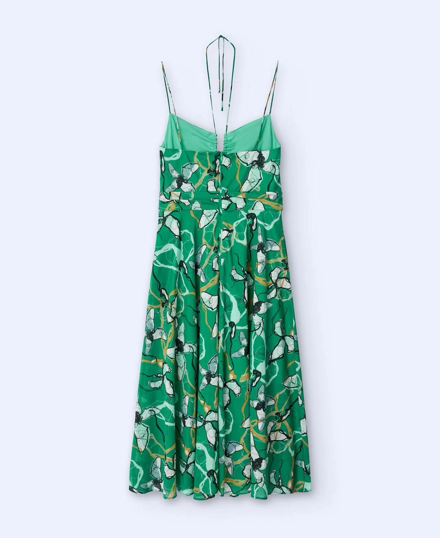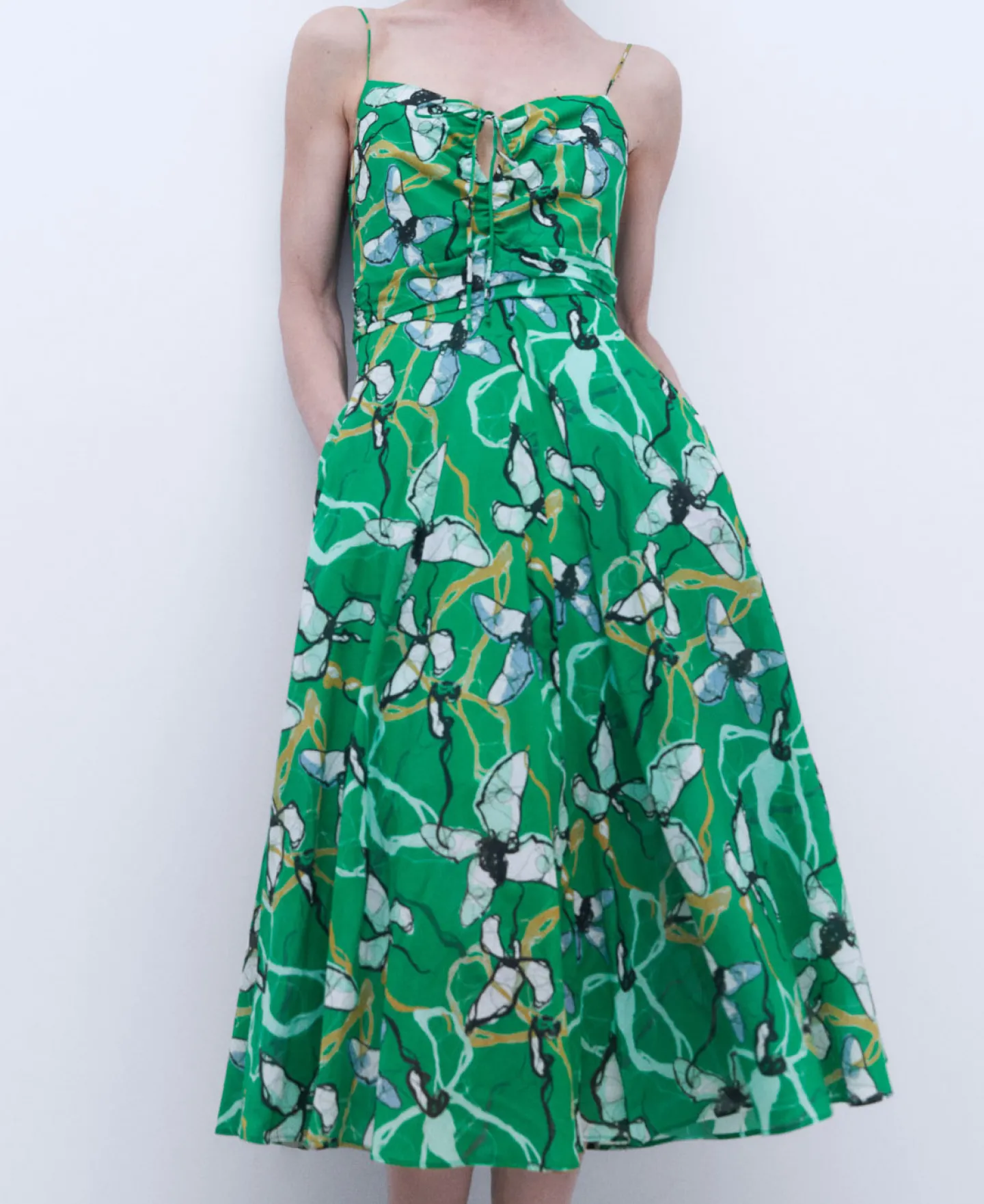 Tres Alcas. Decote Franzido. Saia Capa. Costas Abertas. Fecho De Correr Traseiro. Bainha Reta.