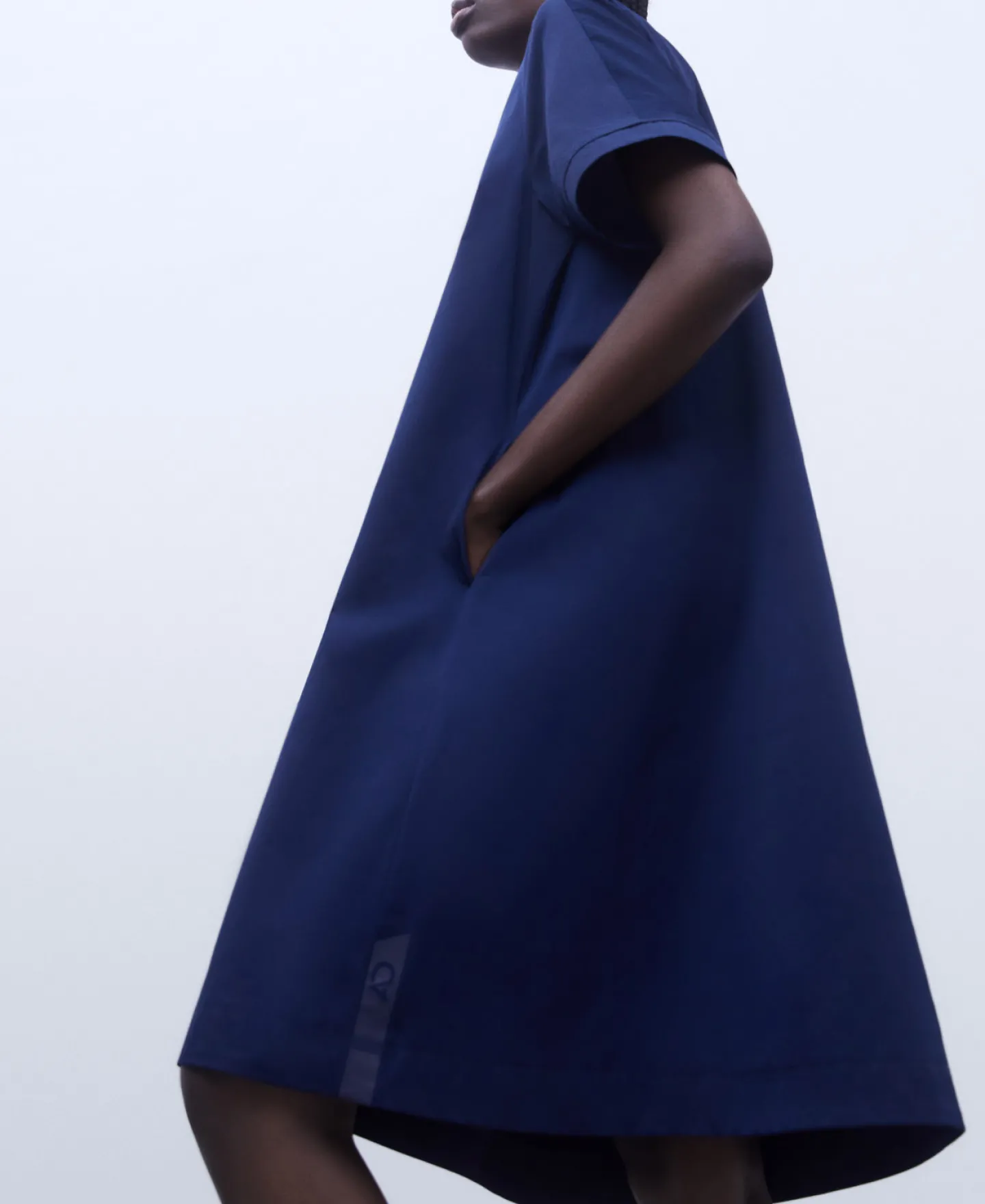 Vestido Evase Com Gola Caixa. Gola Em Canelado. Manga Raglan Pelo Cotovelo. Fecho De Correr Traseiro. Costuras Adiantadas. Bolso Lateral.
