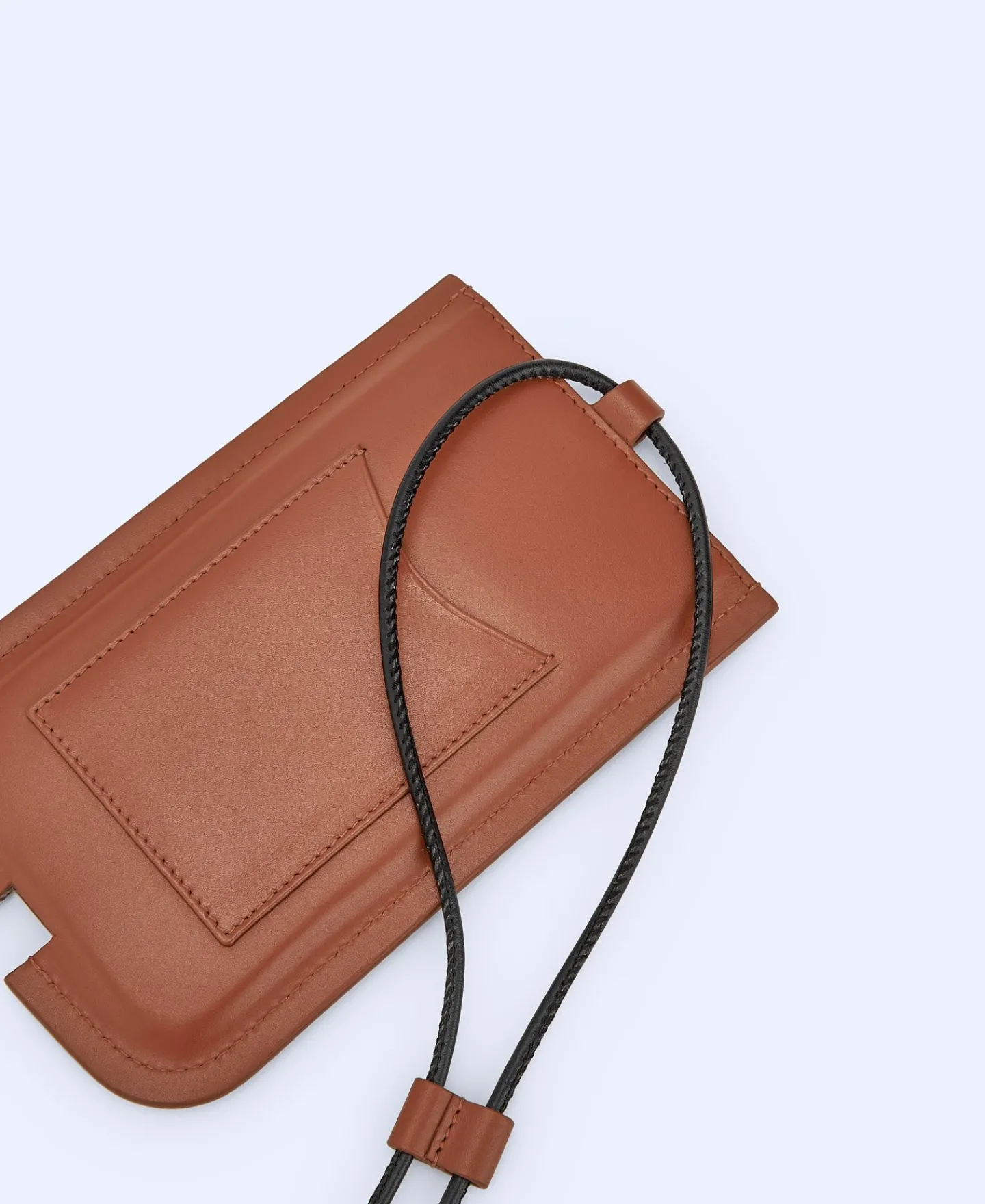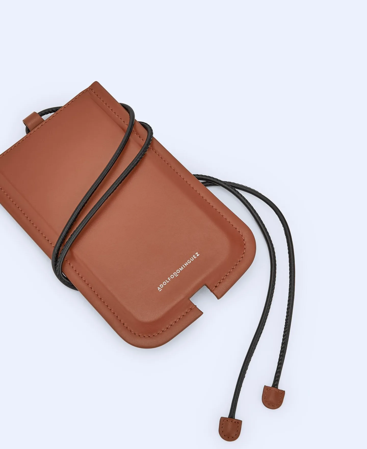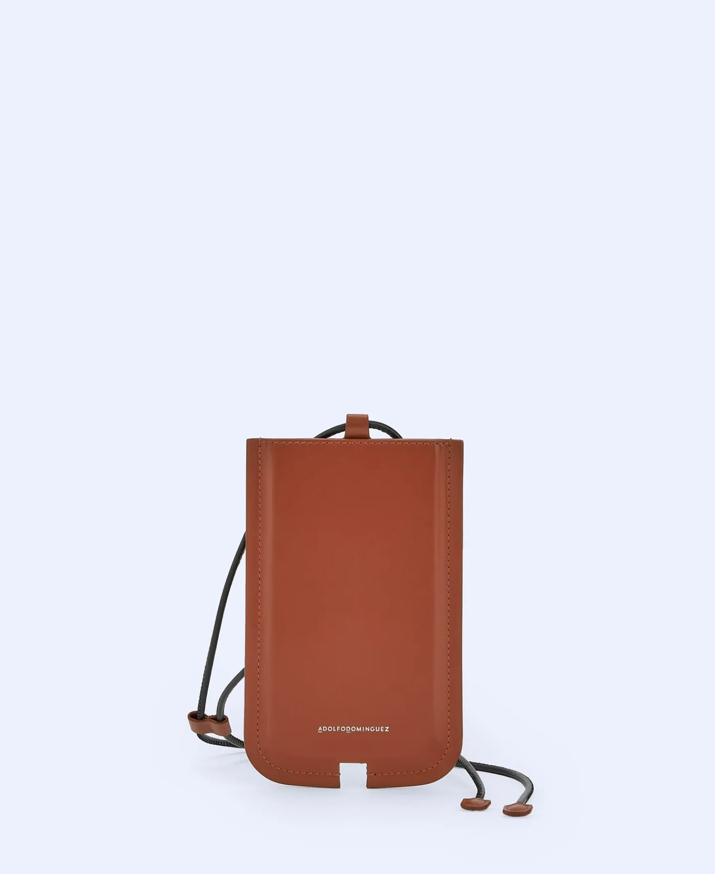 Porta-Telemovel Em Pele De Vaca Lisa. Cordao Ajustavel. Logotipo. Forro Em Algodao.