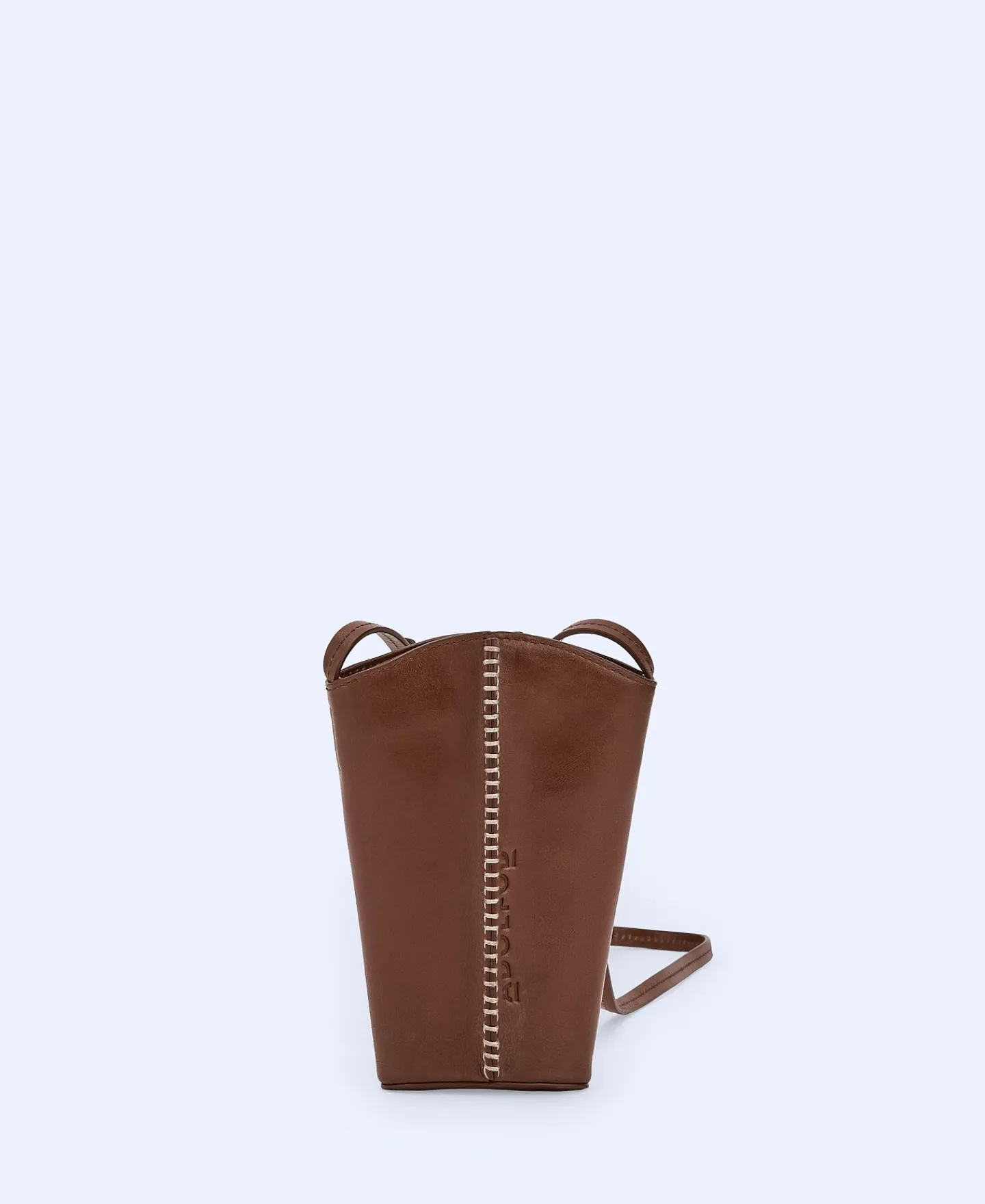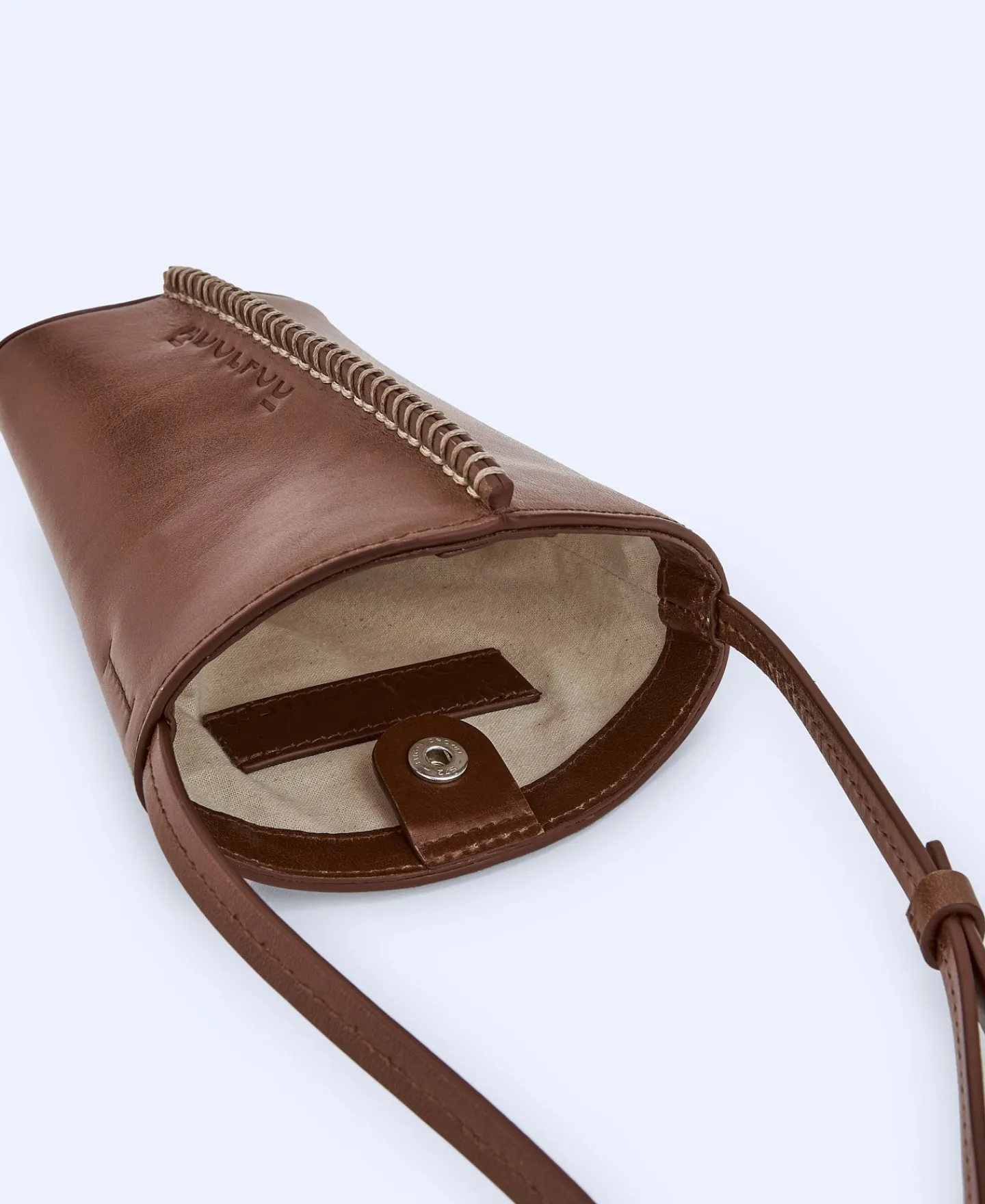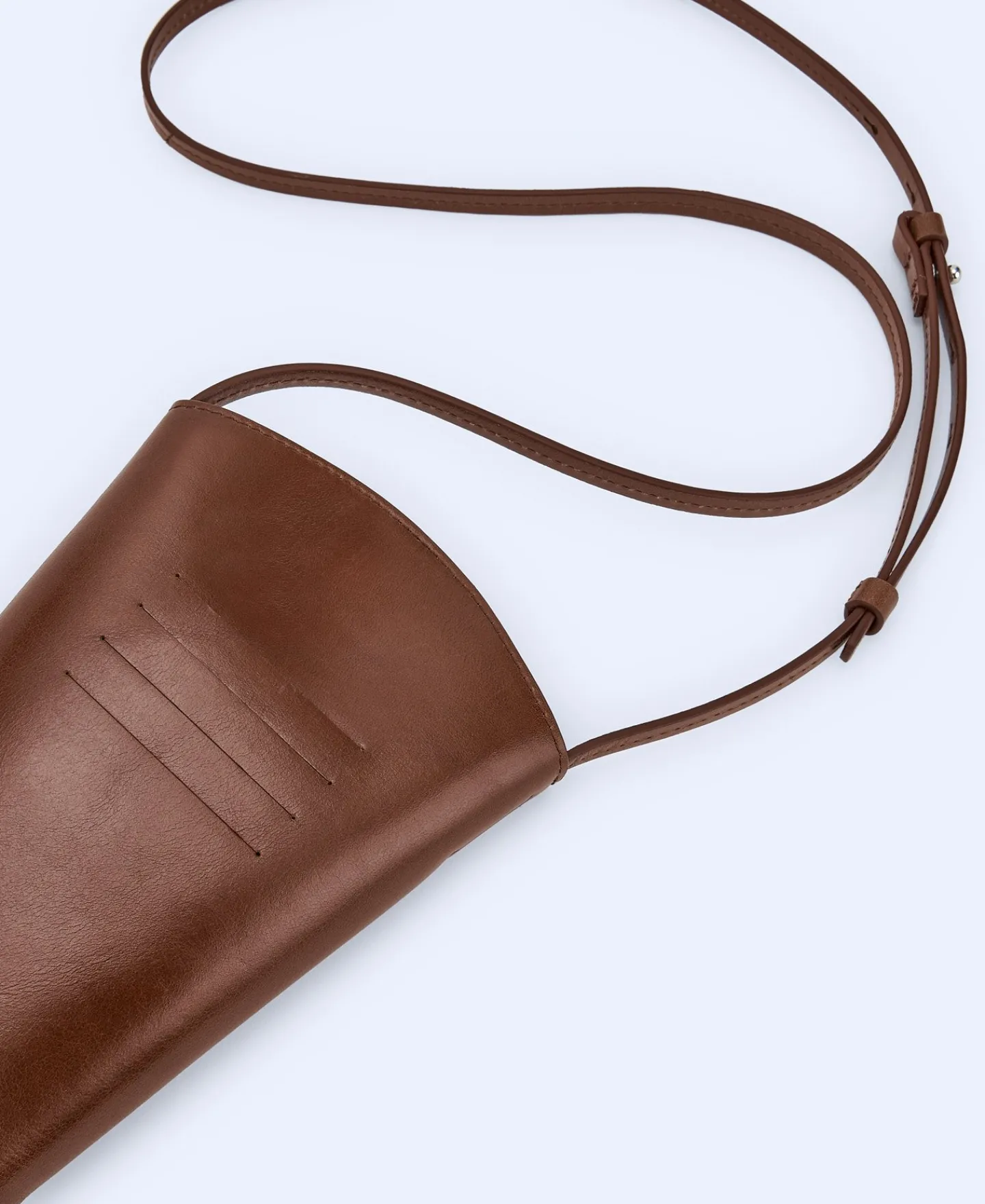 Porta-Telemovel Em Pele De Vaca. Um Compartimento. Fecho Com Botao De Pressao. Alca Comprida Ajustavel. Porta-Cartoes Posterior. Textura Lisa. Costuras Em Contraste. Forro Em 100% Algodao. Logotipo.