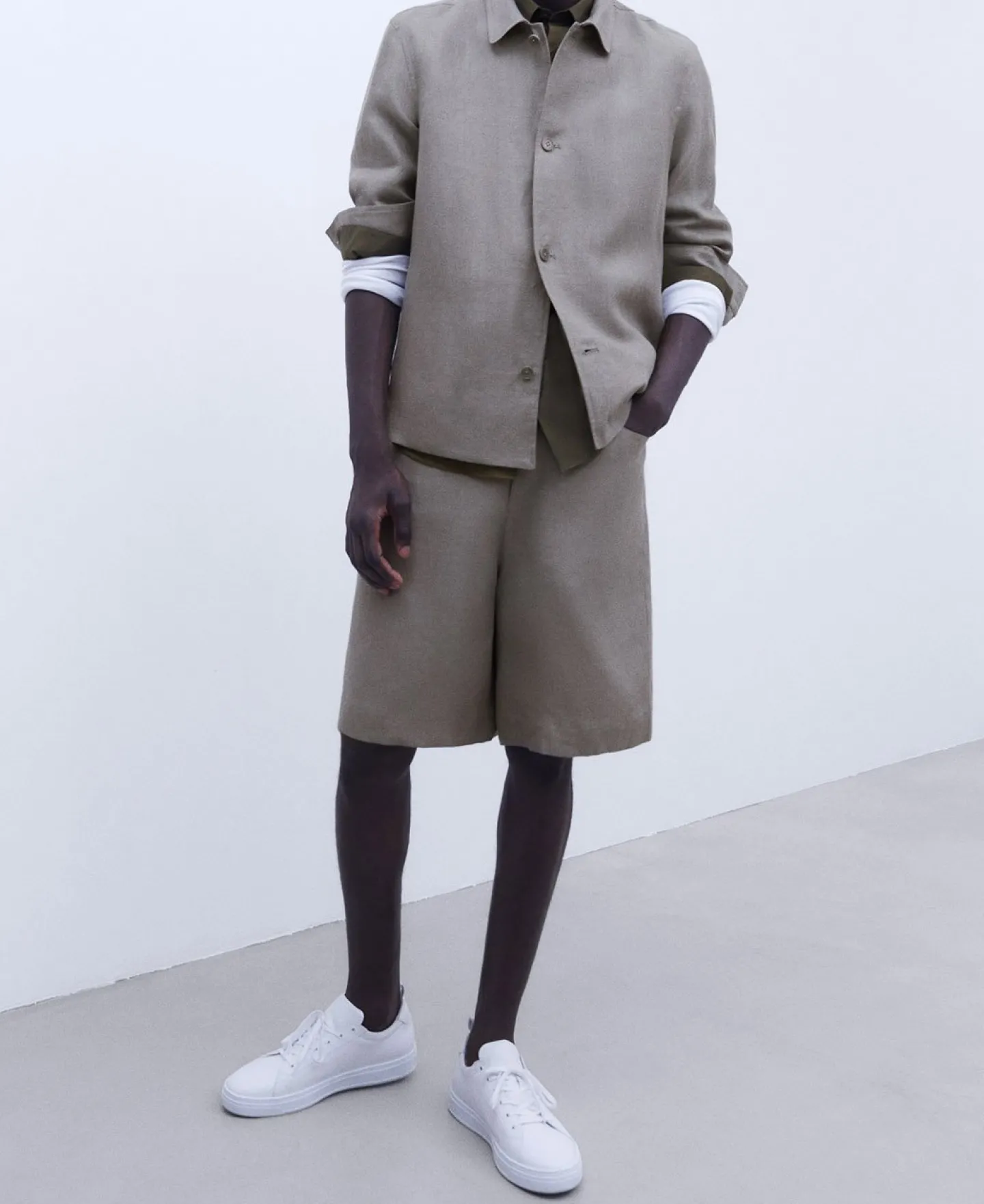 Curtas. Bolsos Arredondados. 100% LinhoCurtasBolsos Arredondados