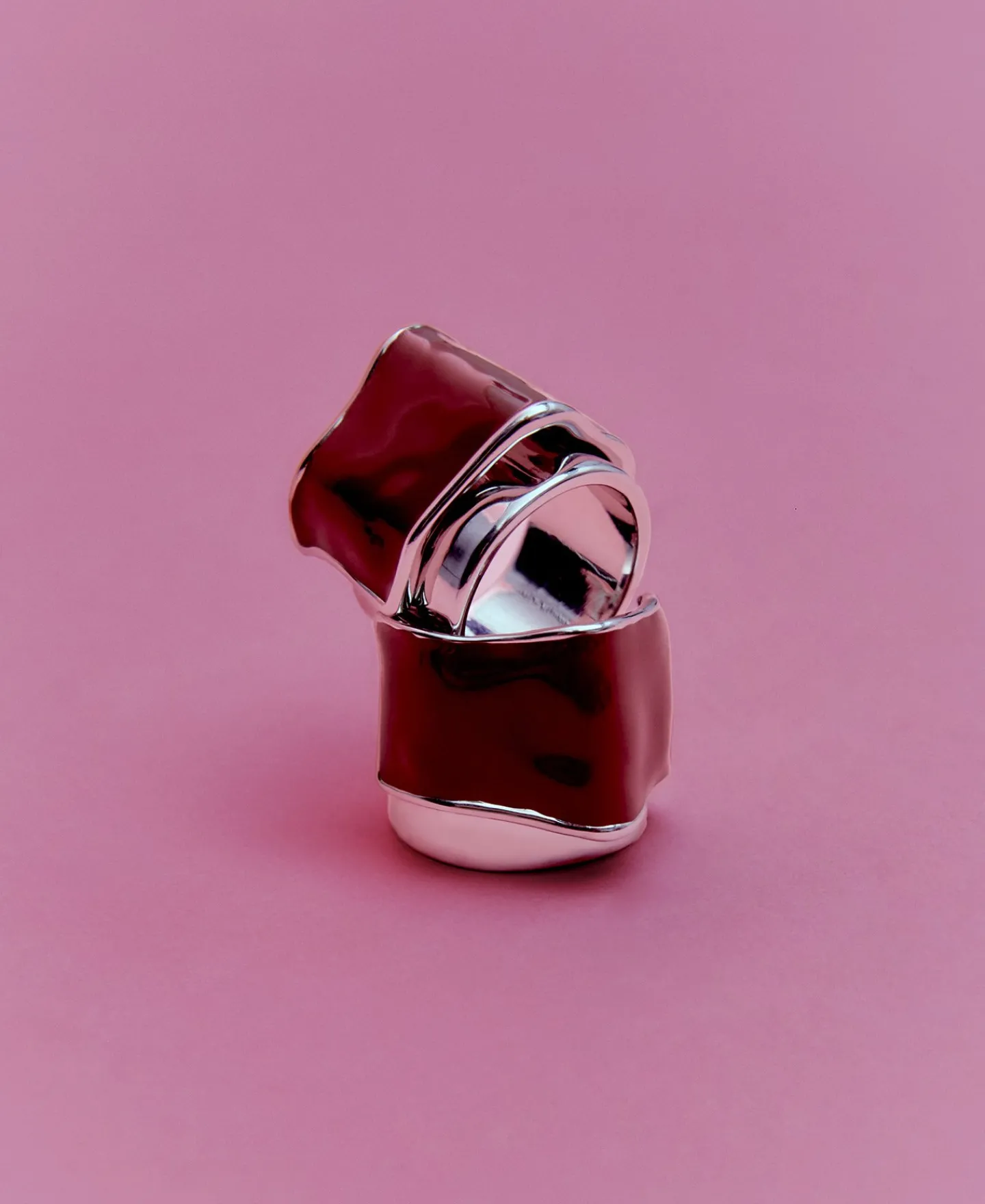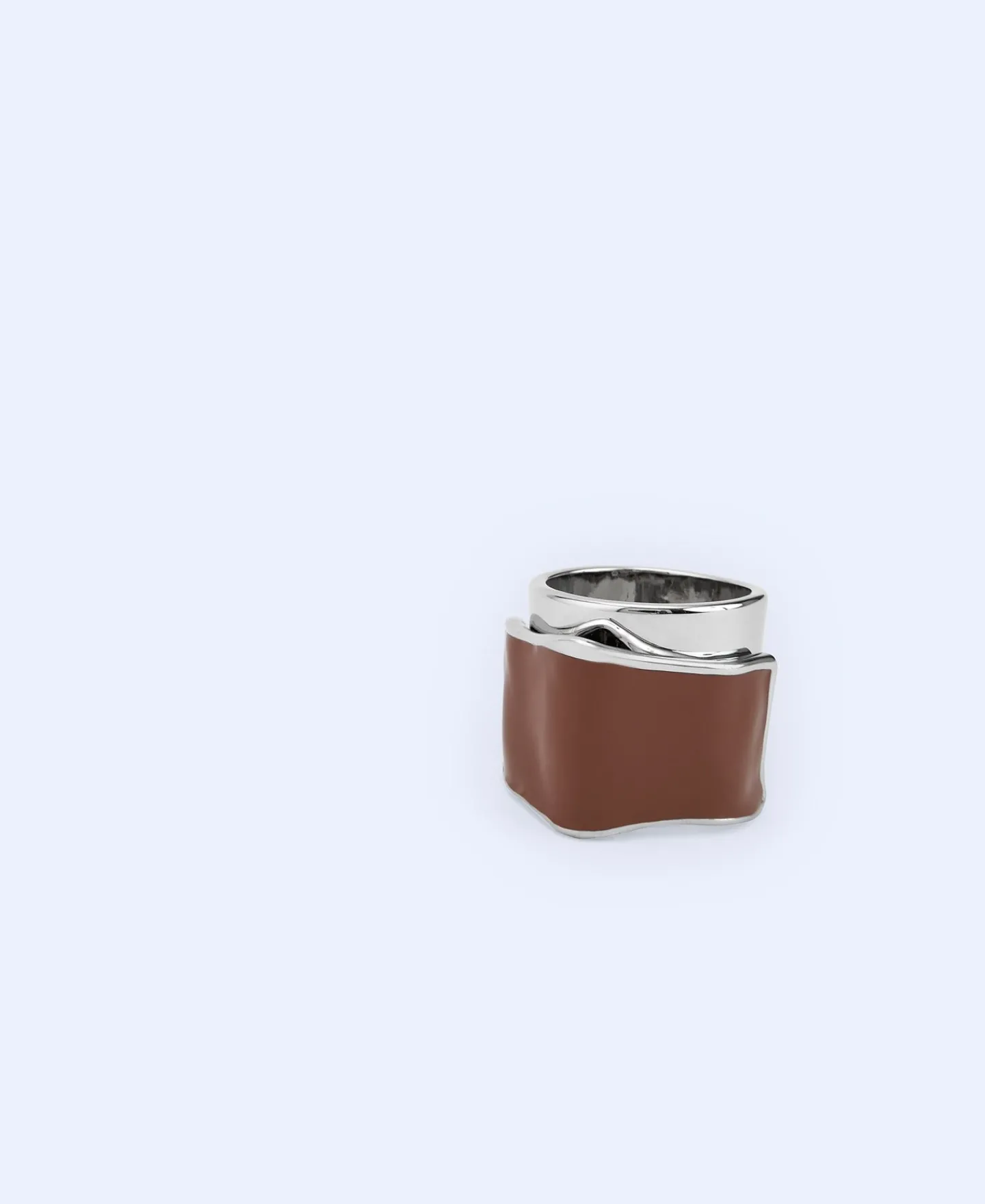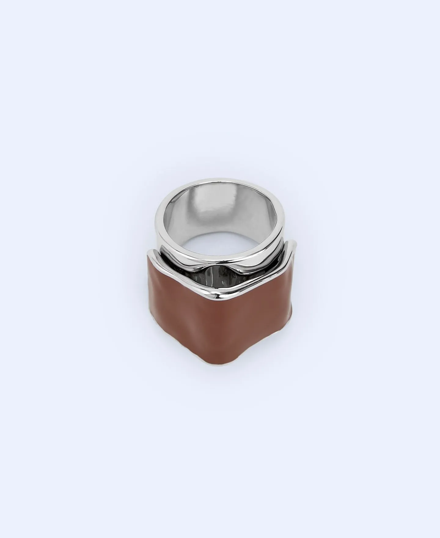 Anel De Dupla Camada Lacada. Zinco. Resina. Logotipo Gravado.