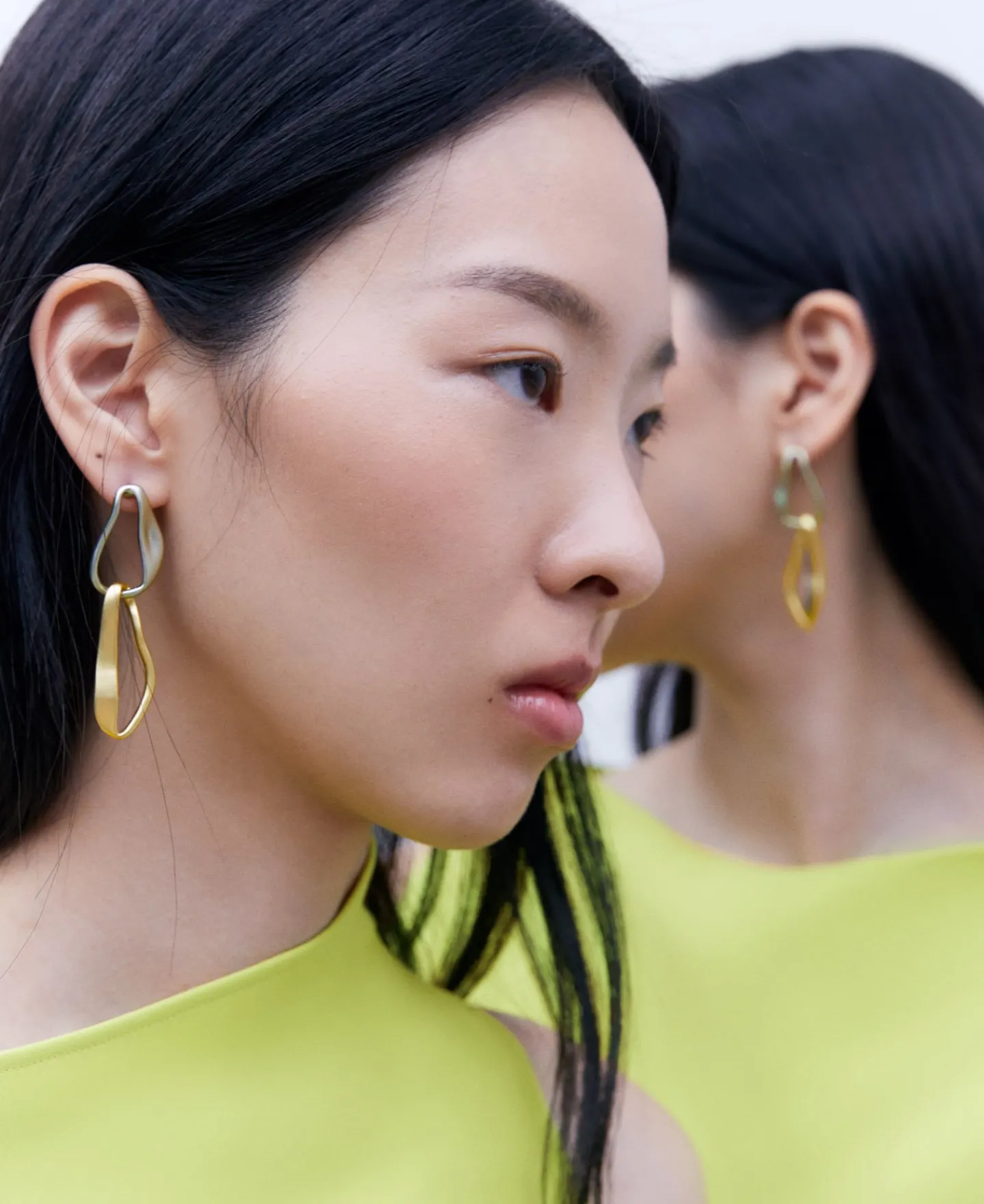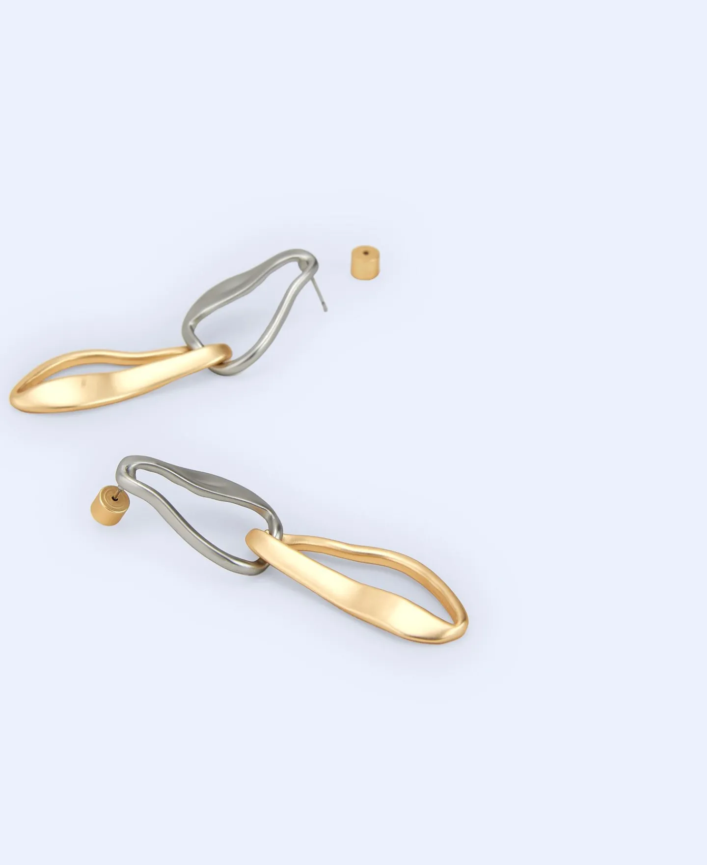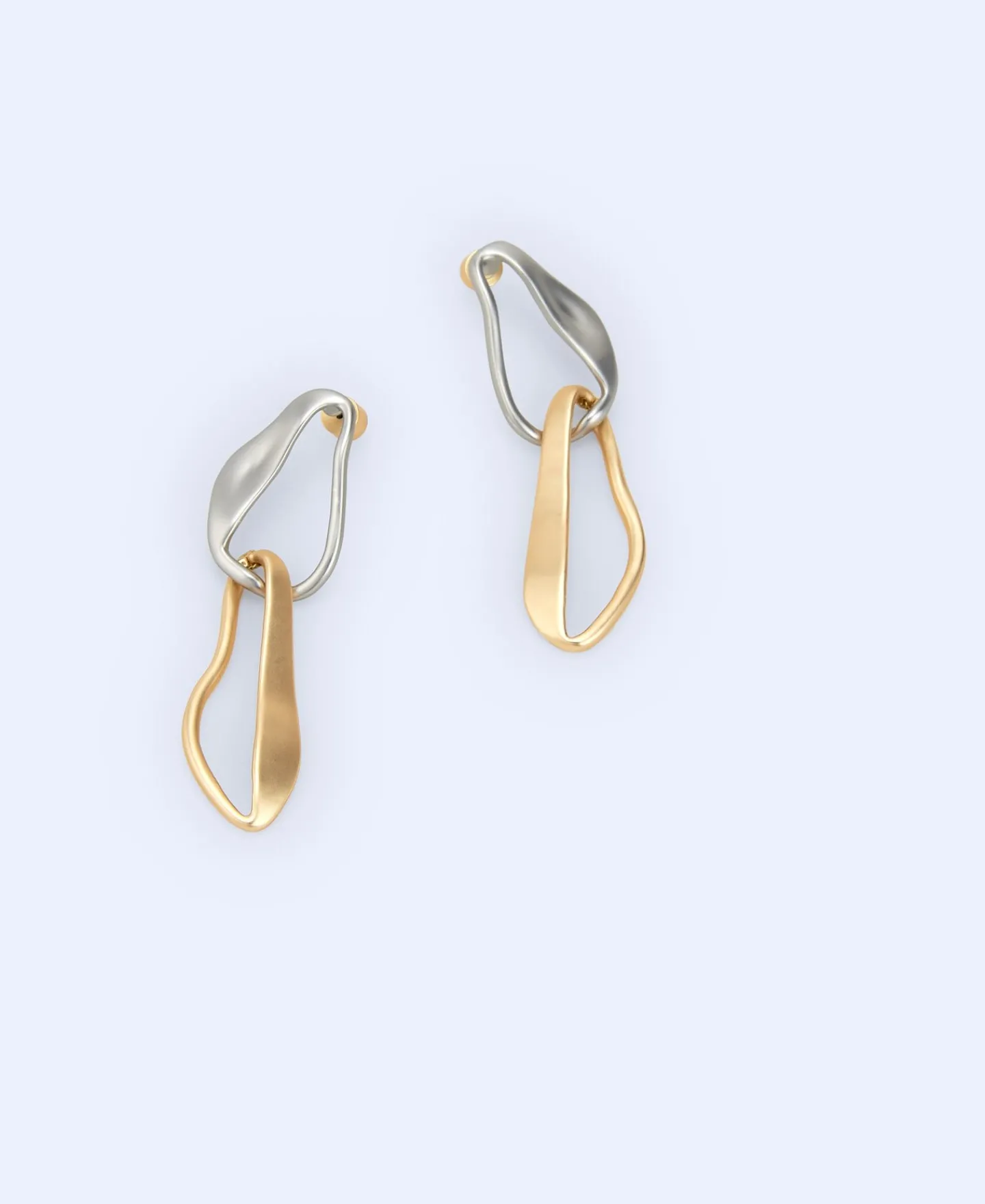 Adolfo Dominguez Bijuteria | Brincos Duplos Motivo Vibrar Prateado/Dourado