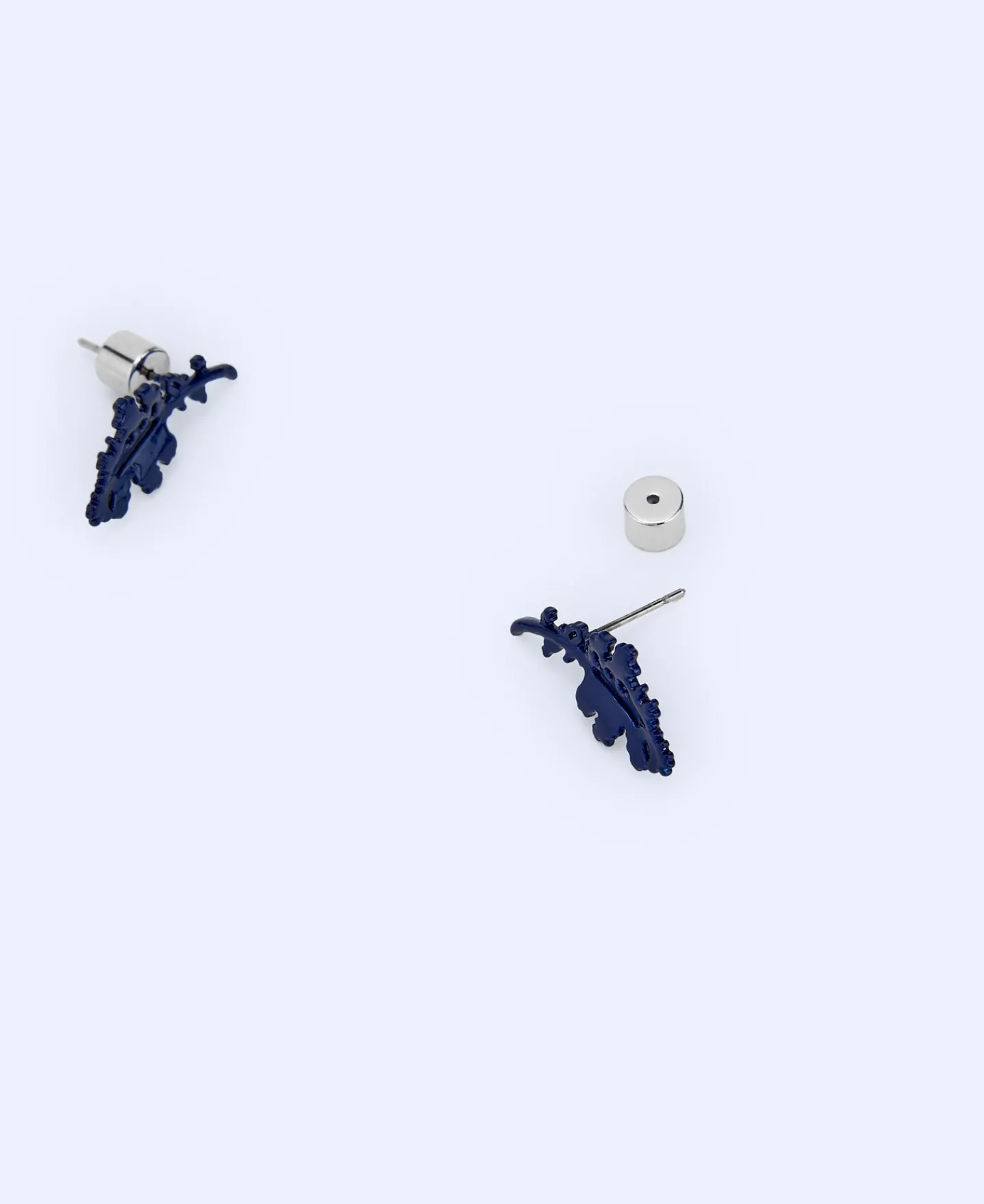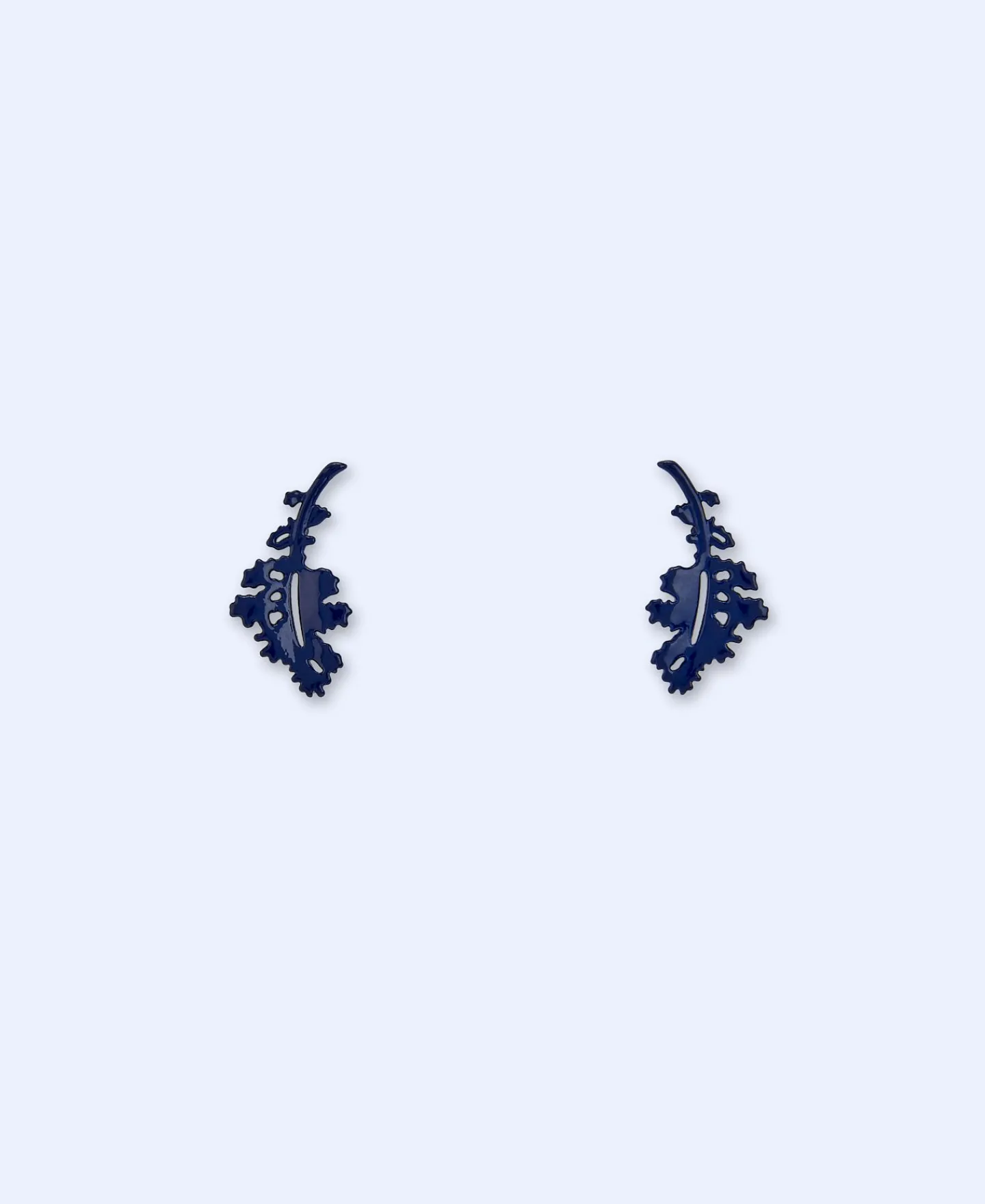 Brincos Folha Em Latao E Resina. Motivo Folha. Terminal Com Logotipo.