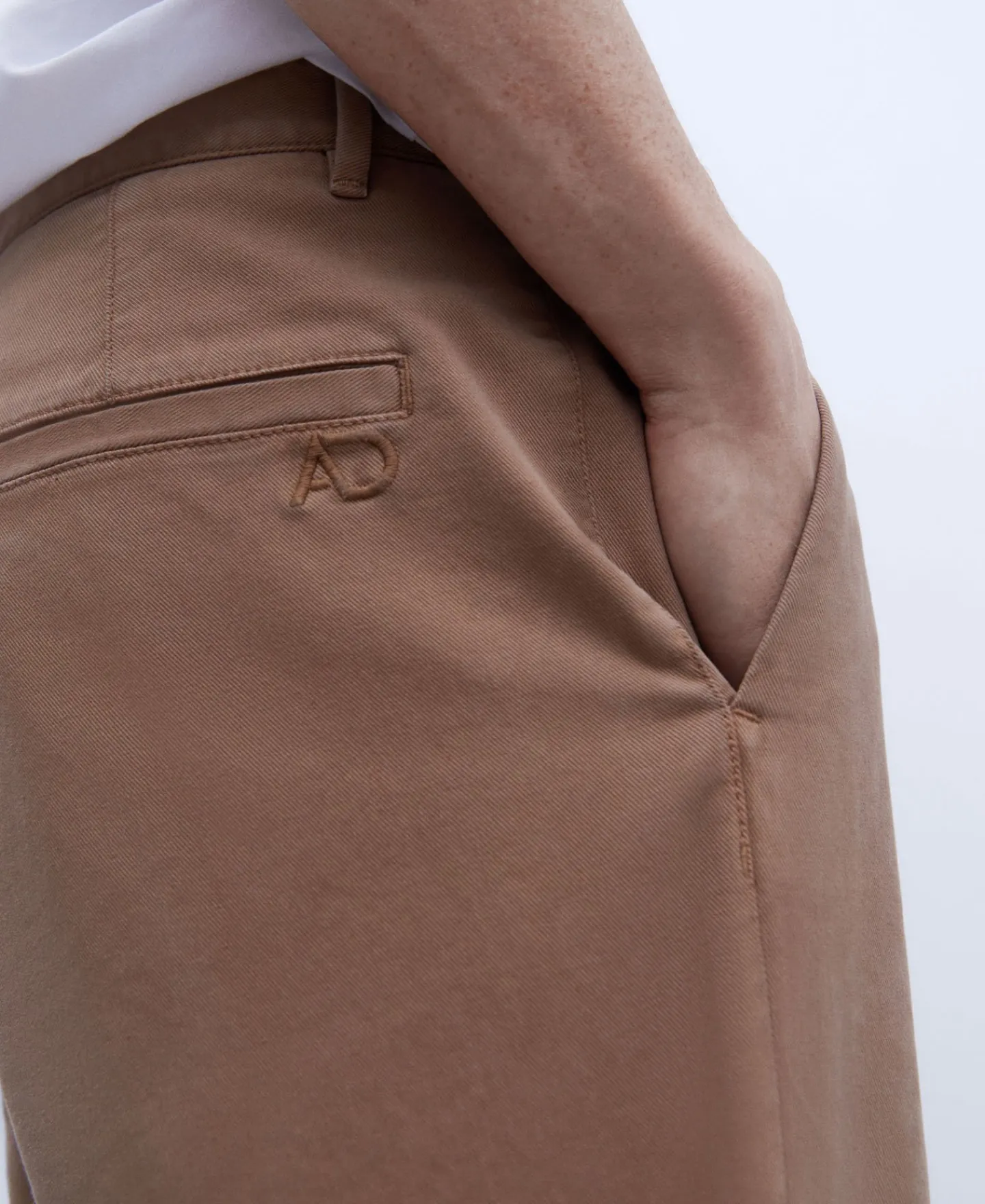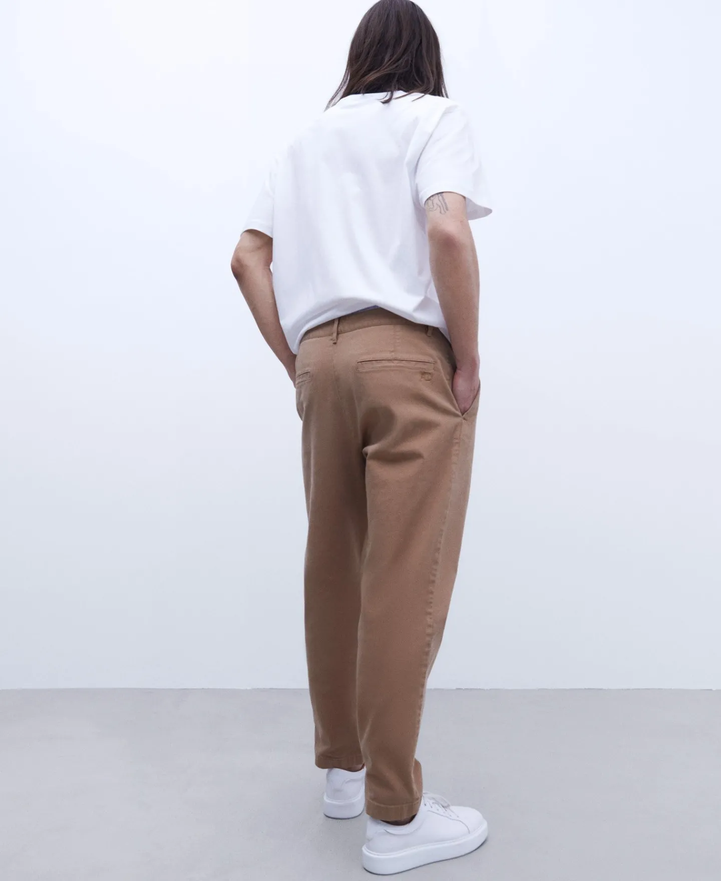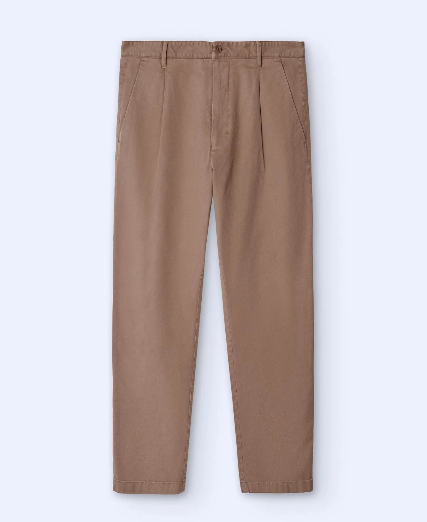 Calças Chino Com Pincas Em Algodao. Silhueta Folgada. Bolsos Laterais Embutidos.