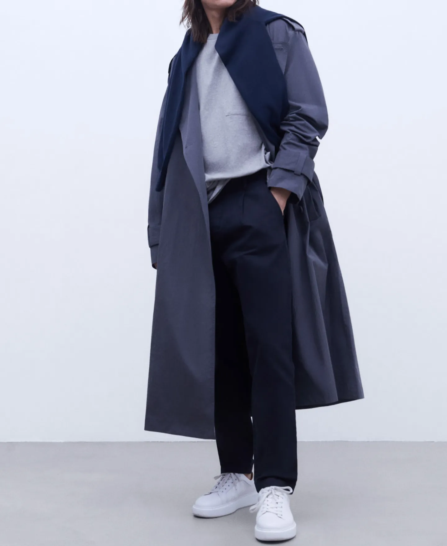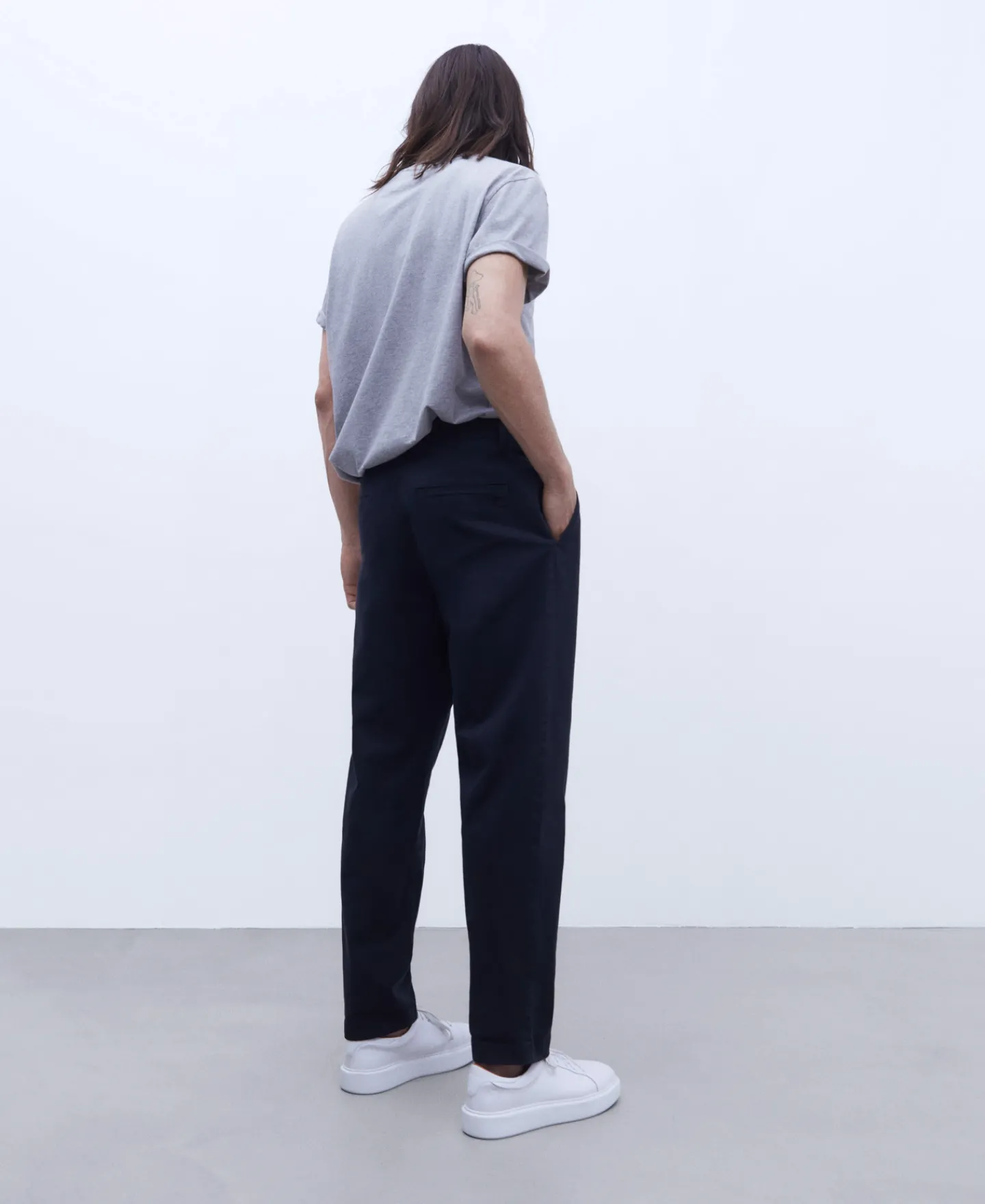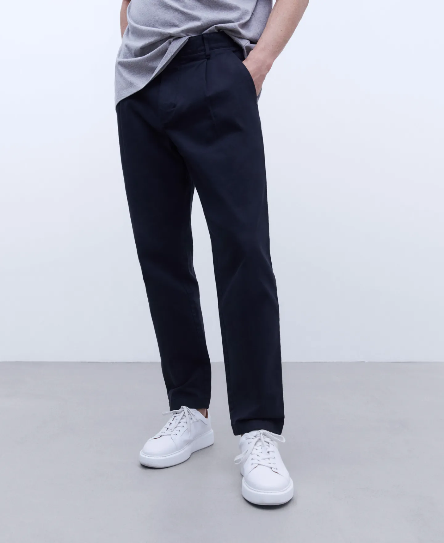 Calças Chino Com Pincas Em Algodao. Silhueta Folgada. Bolsos Laterais Embutidos.