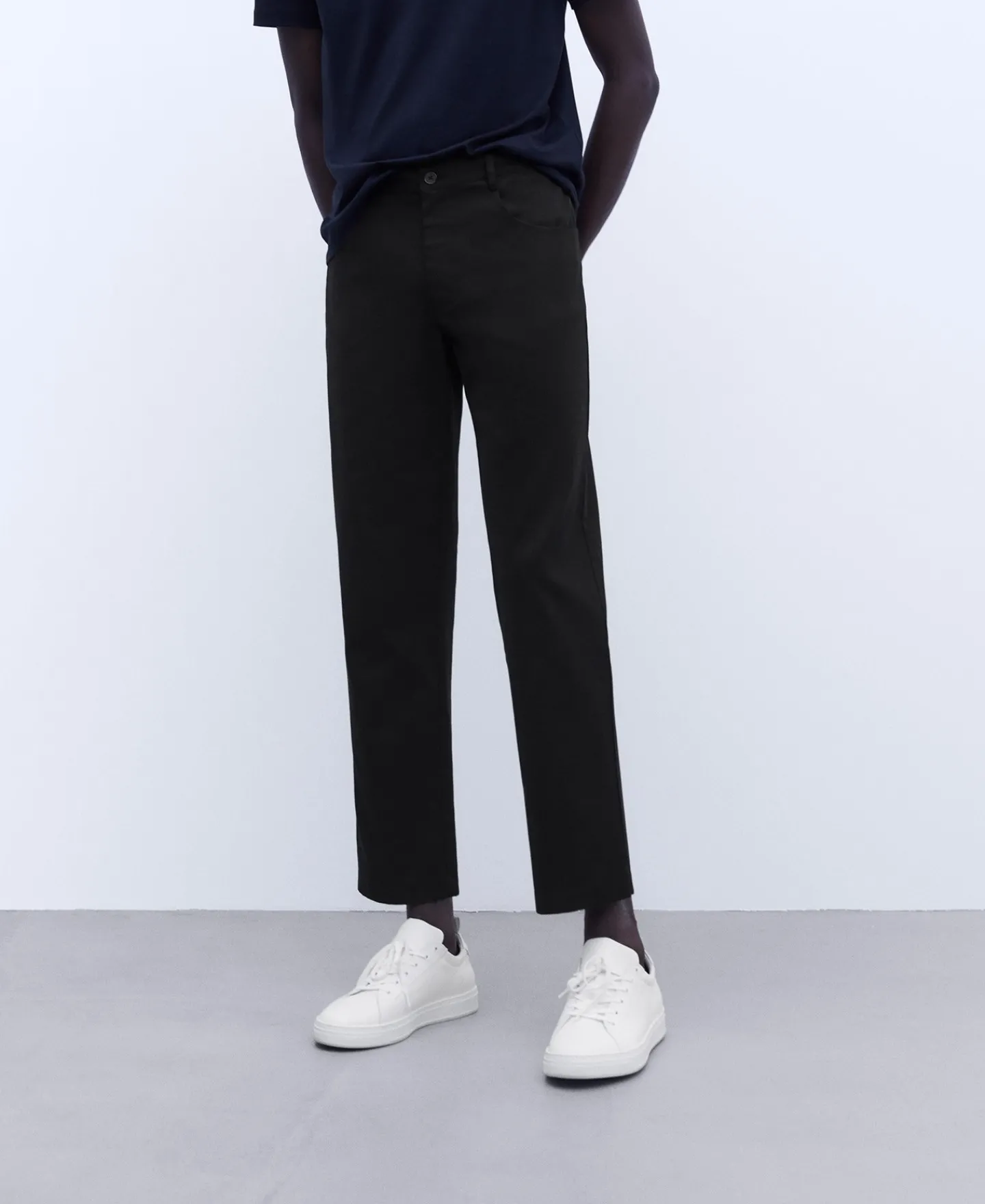 Bolsos Frontais Arredondados E Bolsos Traseiros Embutidos. Logotipo Bordado No Bolso Traseiro. Fecho De Botao E De Correr. Slim Fit.