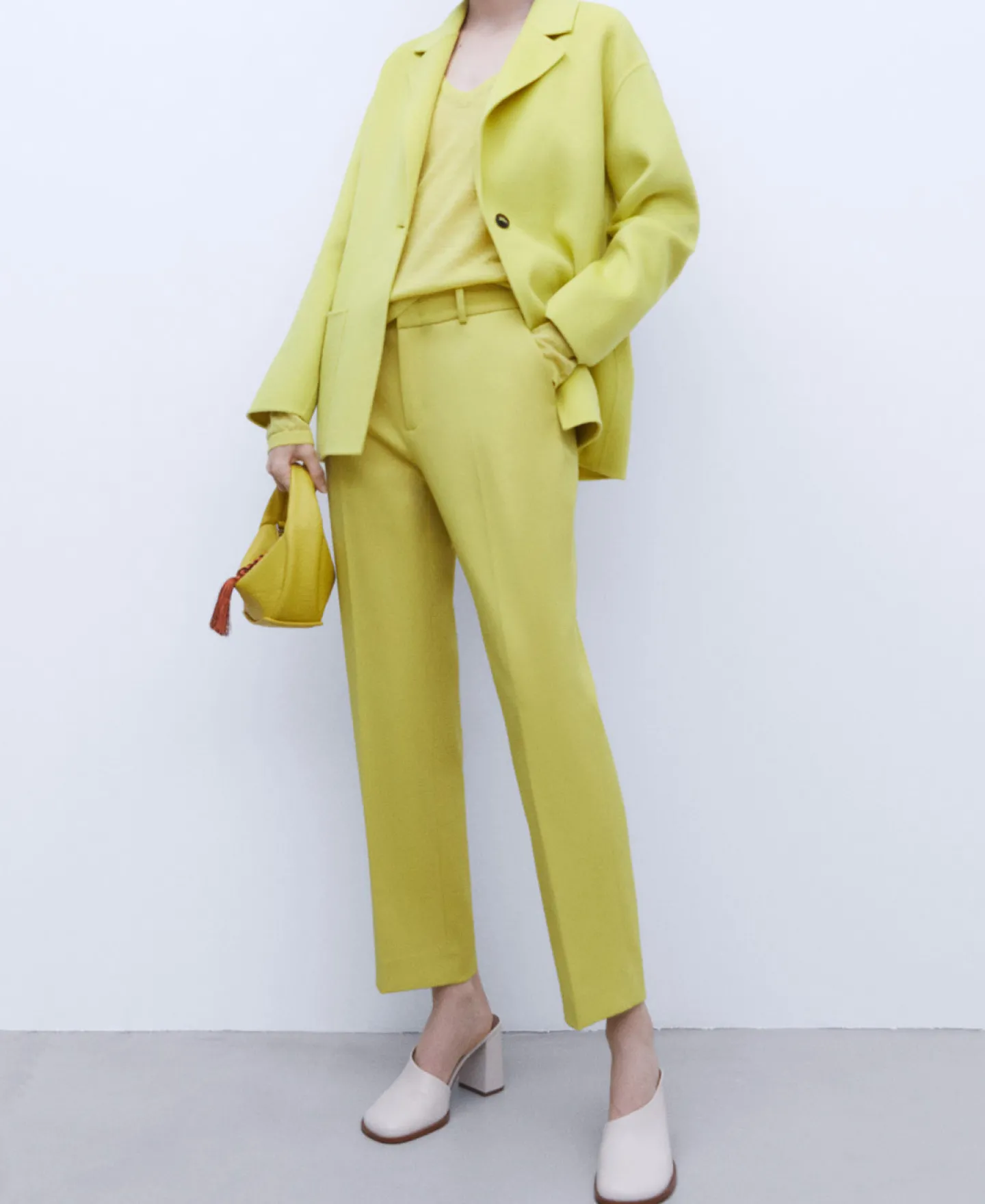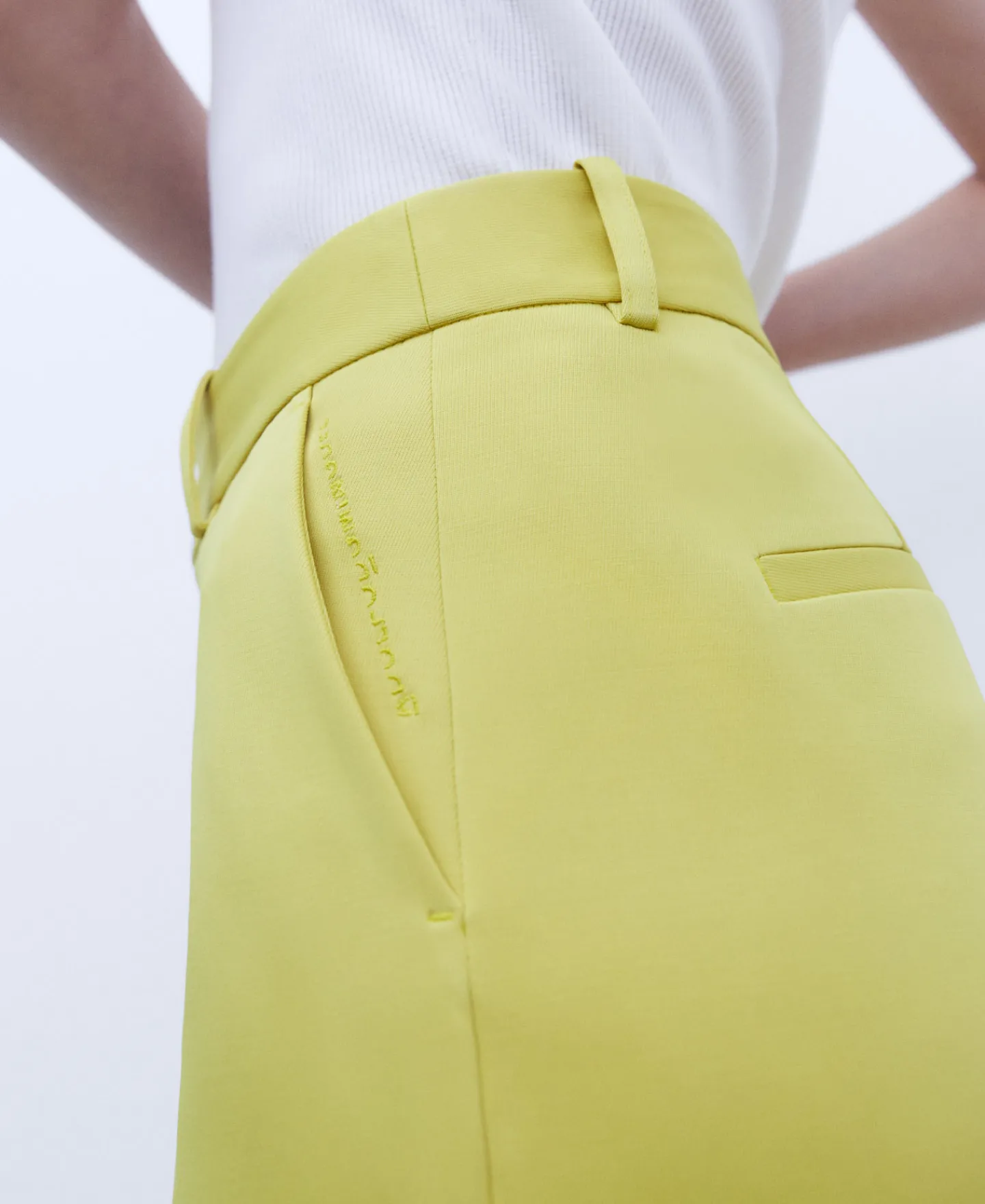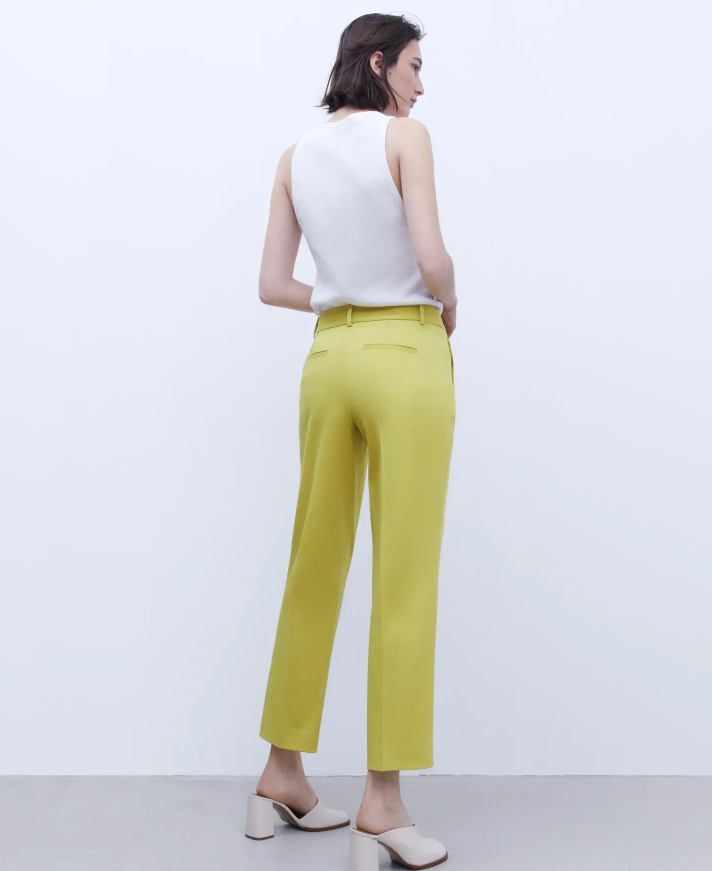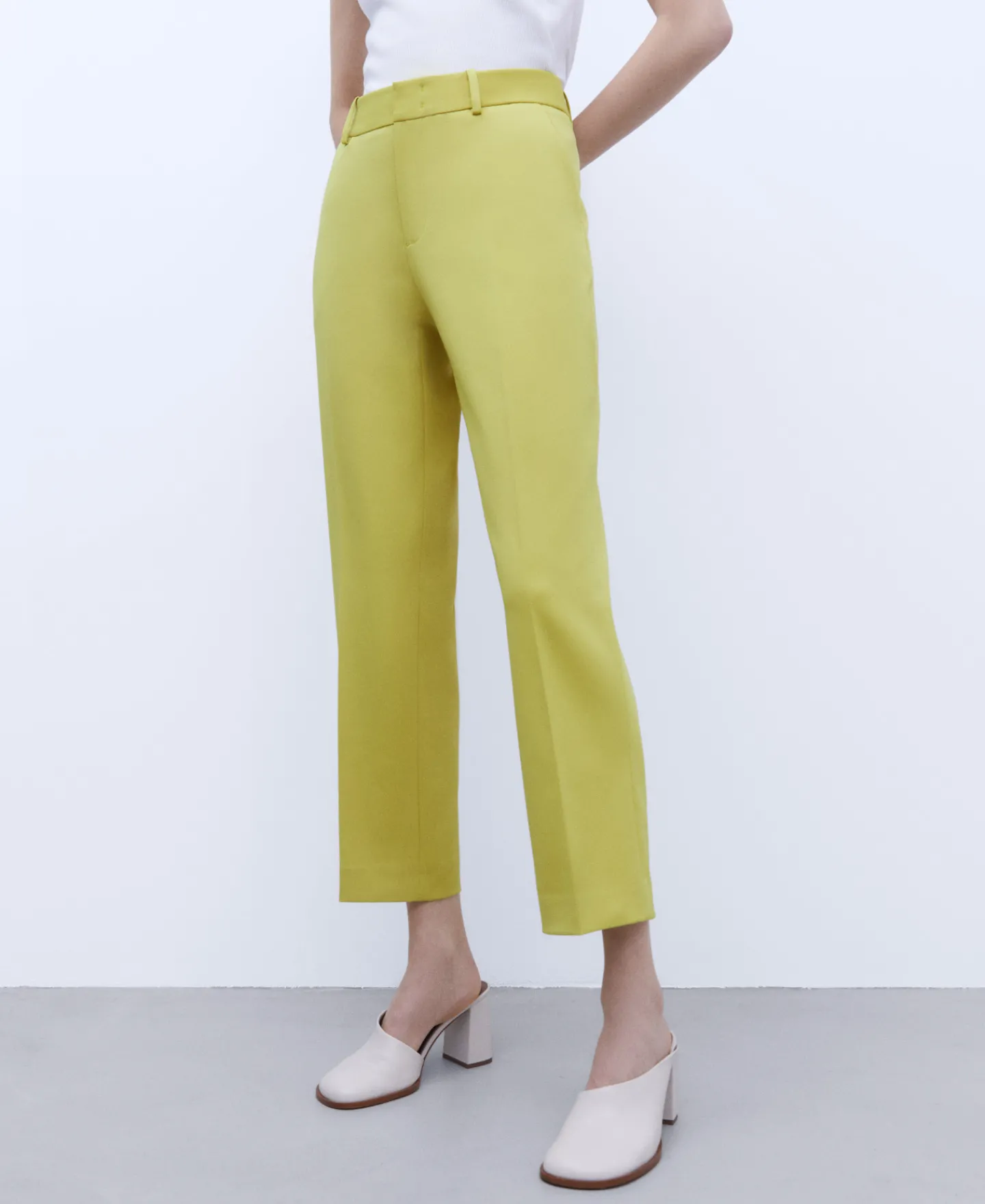 Calças Com Corte Reto. Presilhas. Fecho De Colchete E Fecho De Correr. Bolso Lateral. Pinca Posterior. Bolso Posterior De Alfaiataria. Pelo Tornozelo. Bainha Reta.