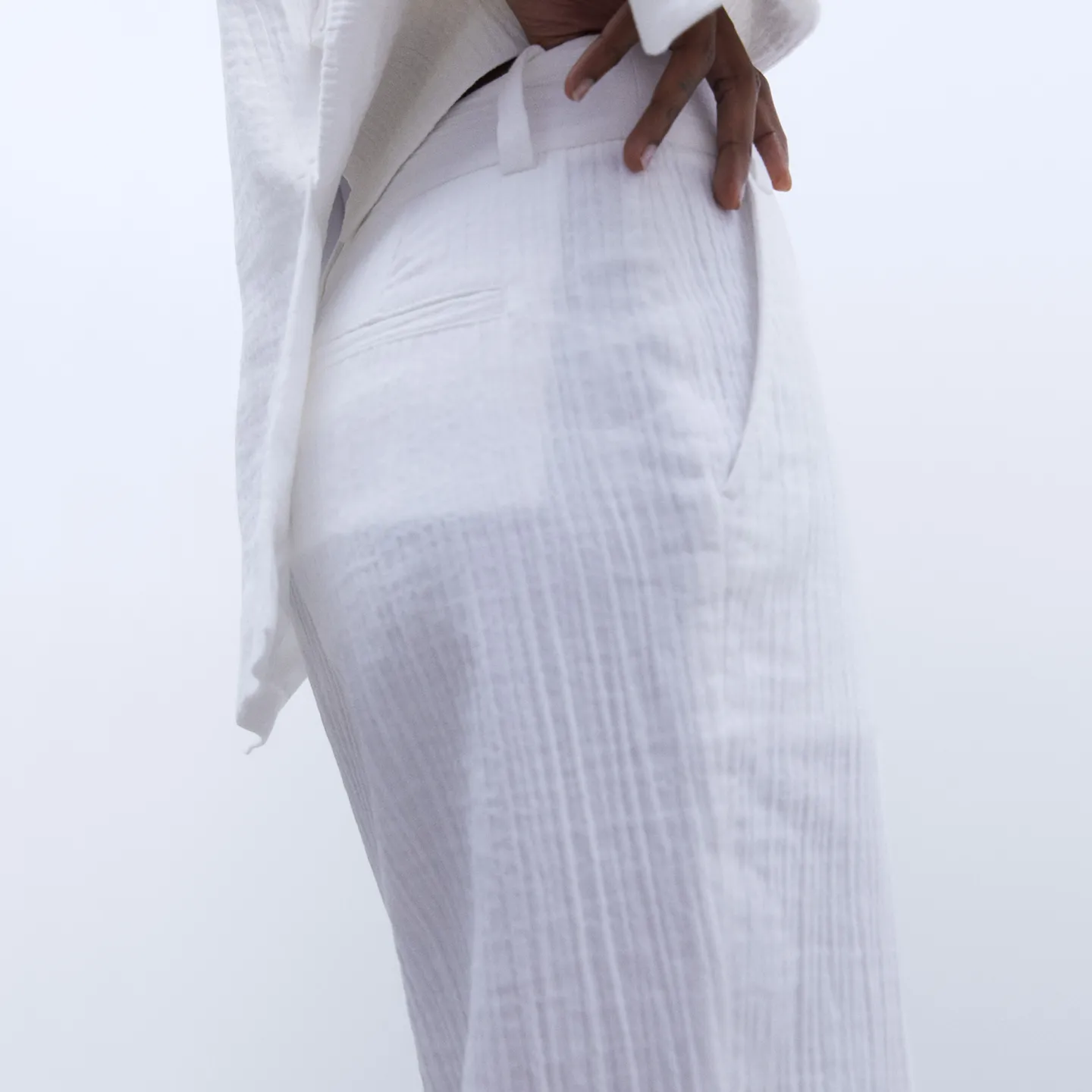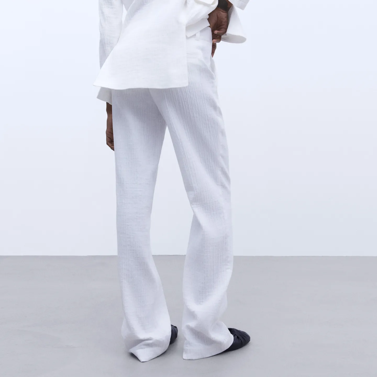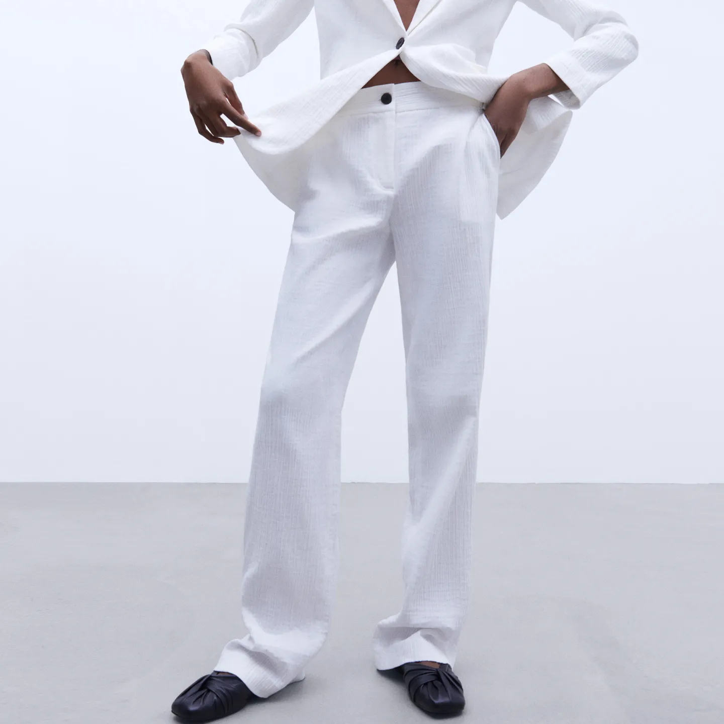 Calças De Alfaiataria. Corte Reto. Cos. Presilhas. Fecho Com Botao E Fecho De Correr. Bolso Lateral. Bolso Posterior De Alfaiataria. Comprido. Bainha Reta.