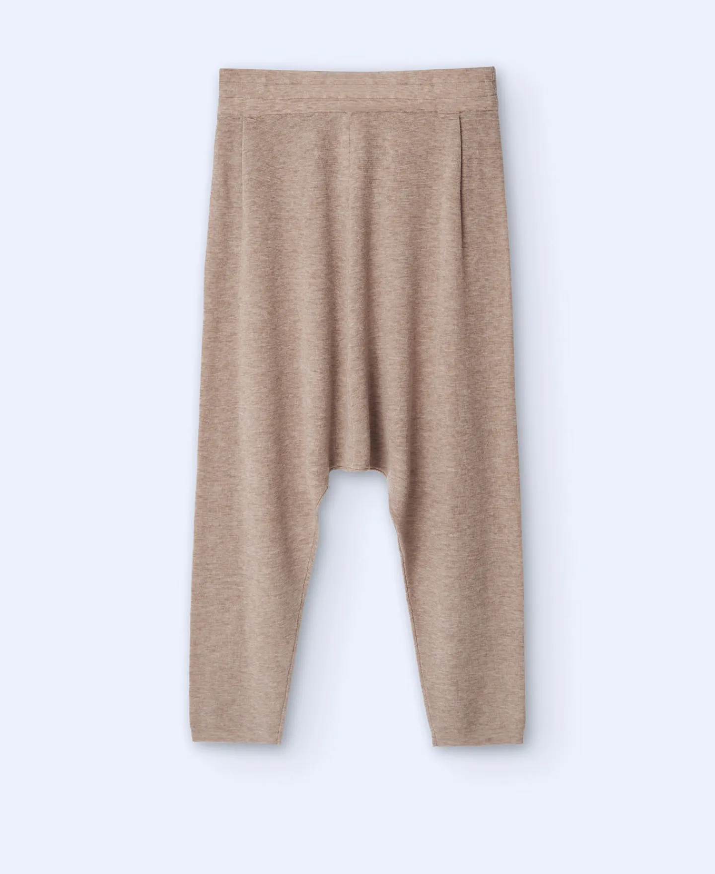 Calças Em La Merino. Cintura Caida. Cos Elastico. Pinca A Frente. Bolso Plastrao Traseiro. Bainha Reta.