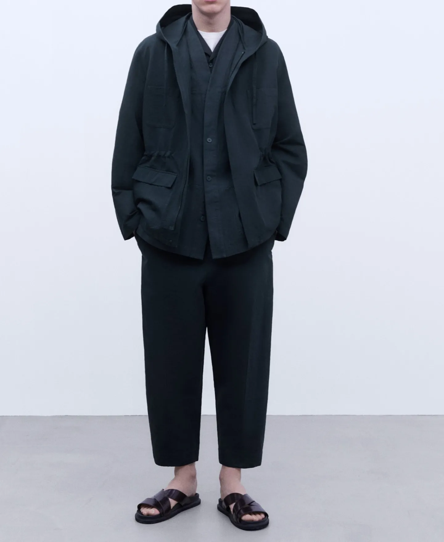 Cos Elastico. Abertura Frontal Com Botoes. Bolsos Laterais Embutidos.65% Linho Europeu35% AlgodaoCos ElasticoBolsos Embu…