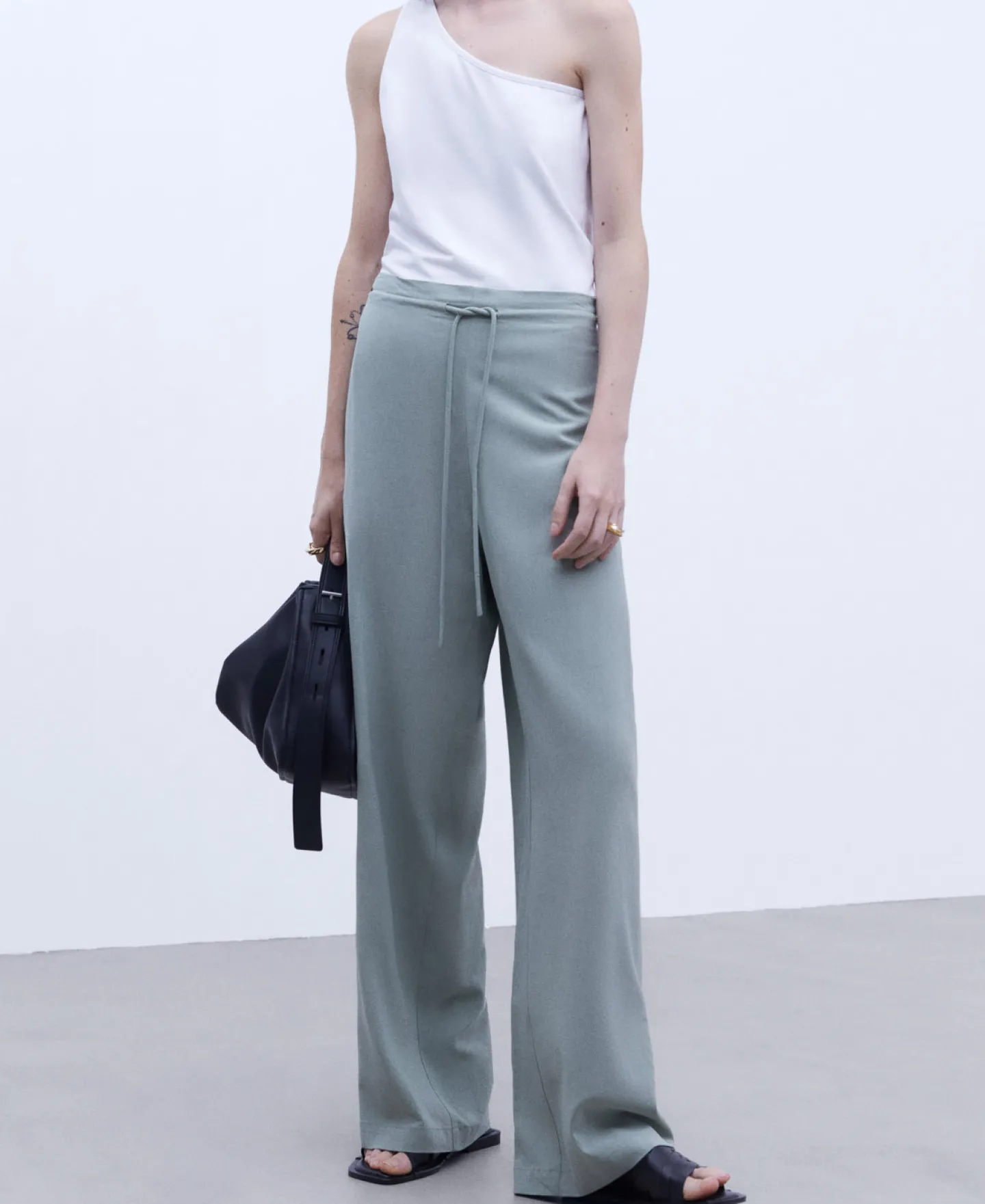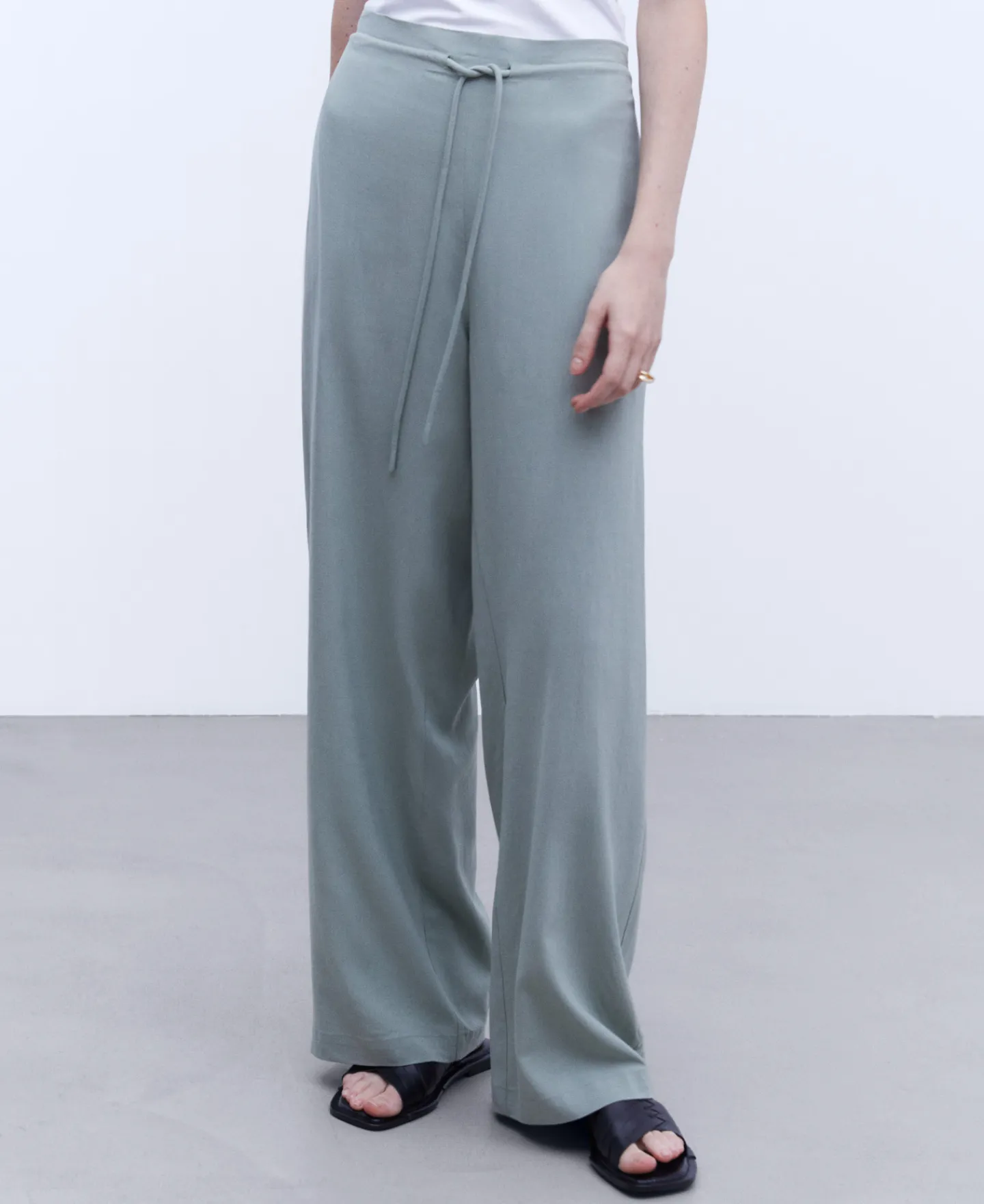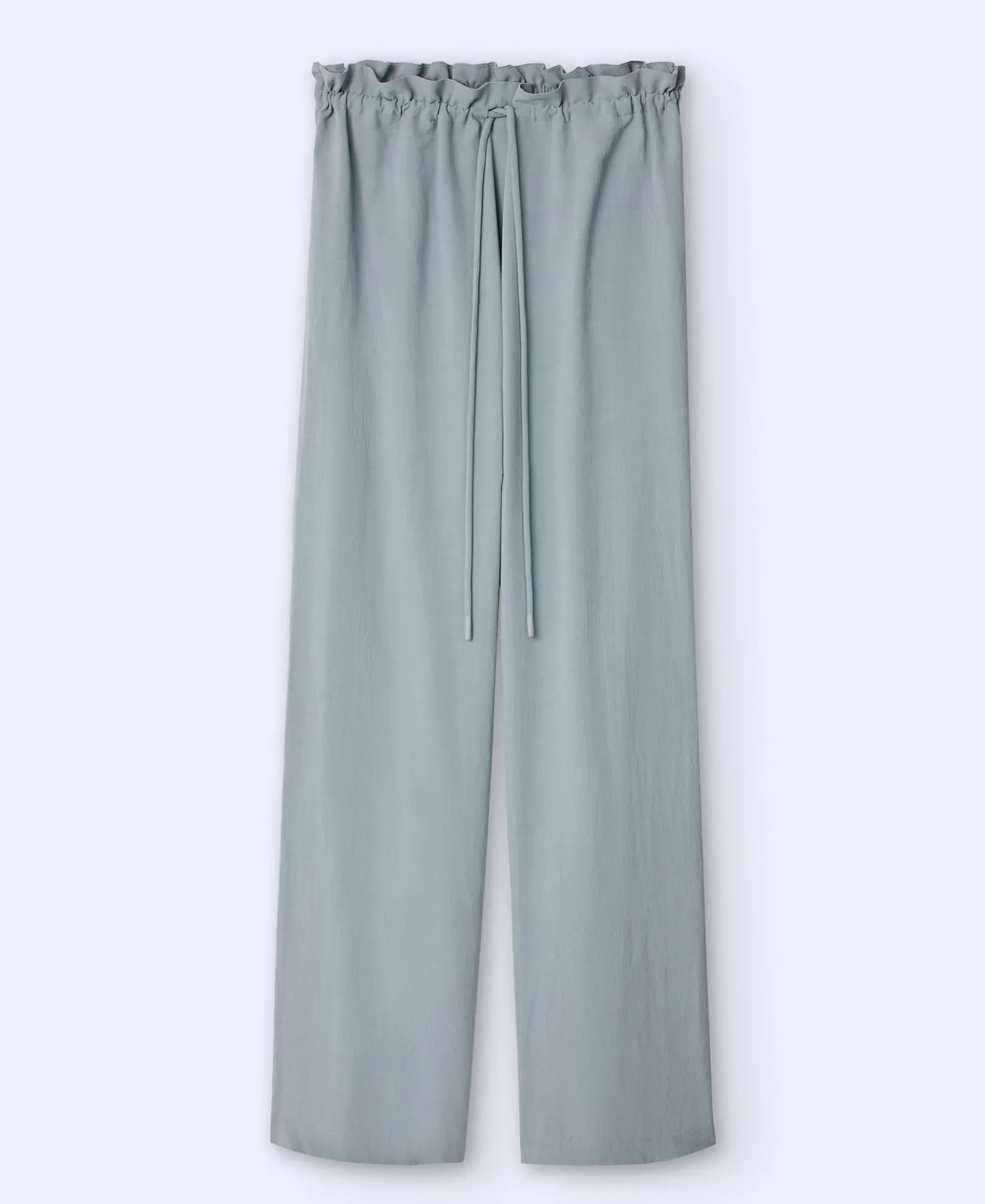 Calças Jogger Fluidas De Corte Reto. Elastico. Bolso Lateral. Cordao De Ajuste. Bainha Reta.