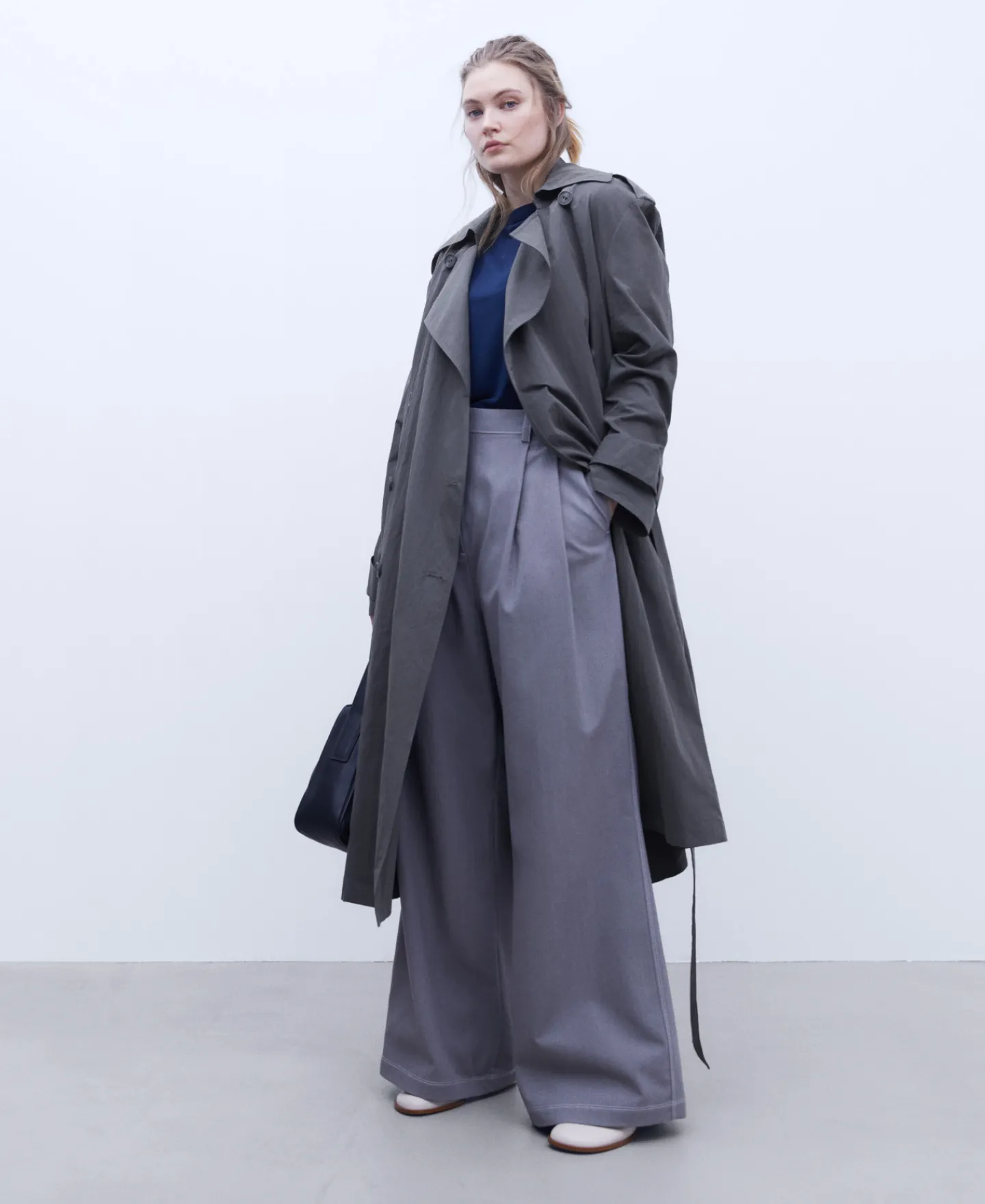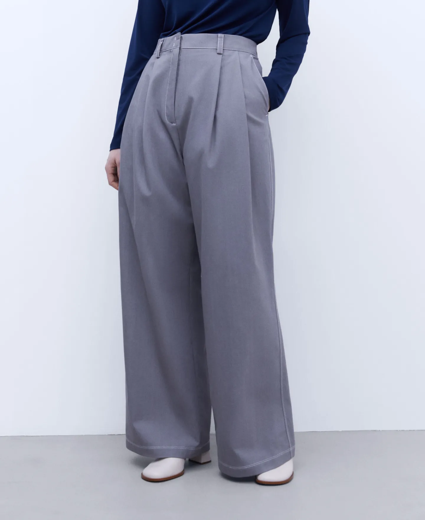 Calças Em Tecido De Algodao. Corte Largo. Pincas. Presilhas. Bolso Lateral. Costuras Em Contraste. Bolsos Posteriores De Alfaiataria. Bainha Reta.