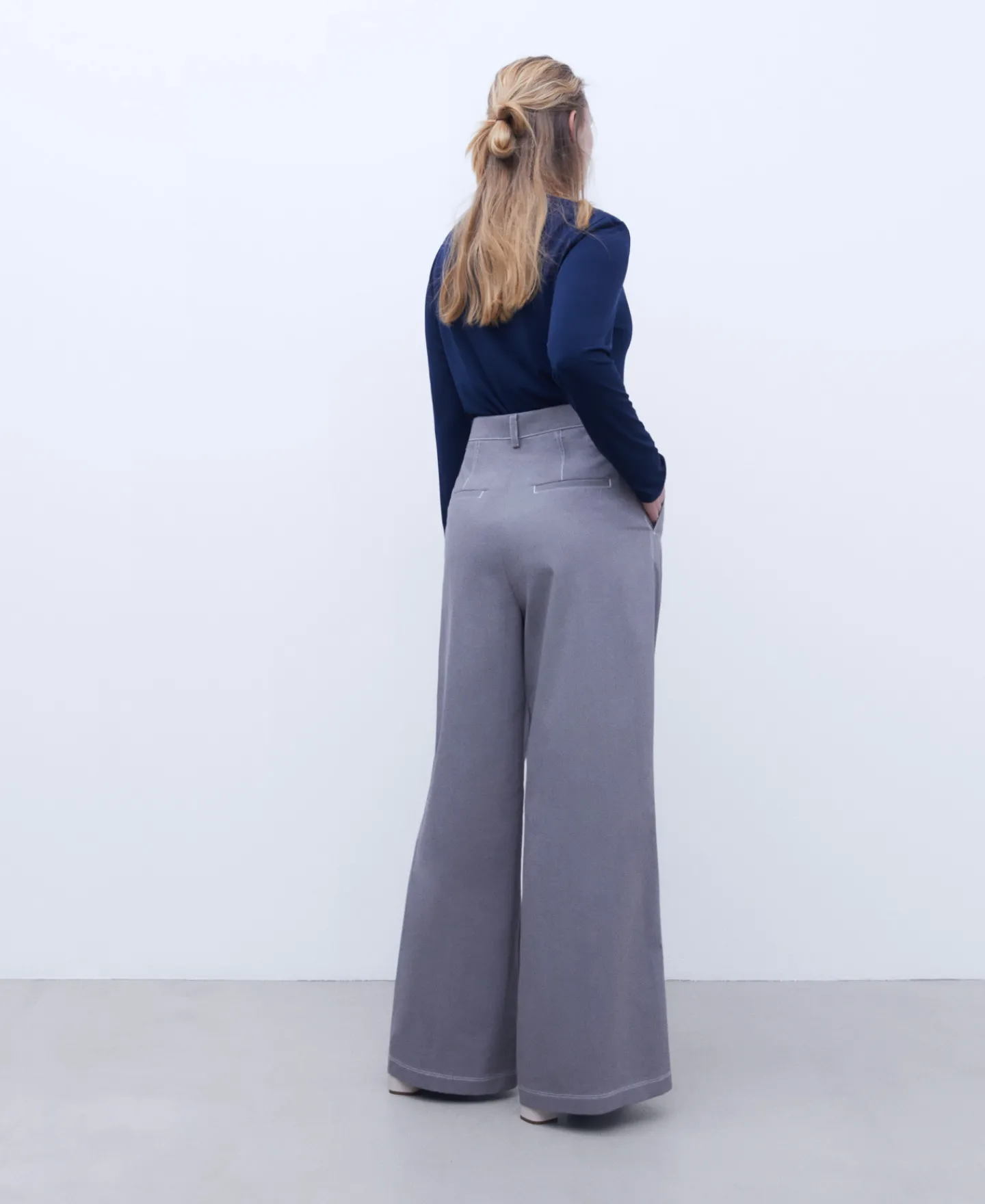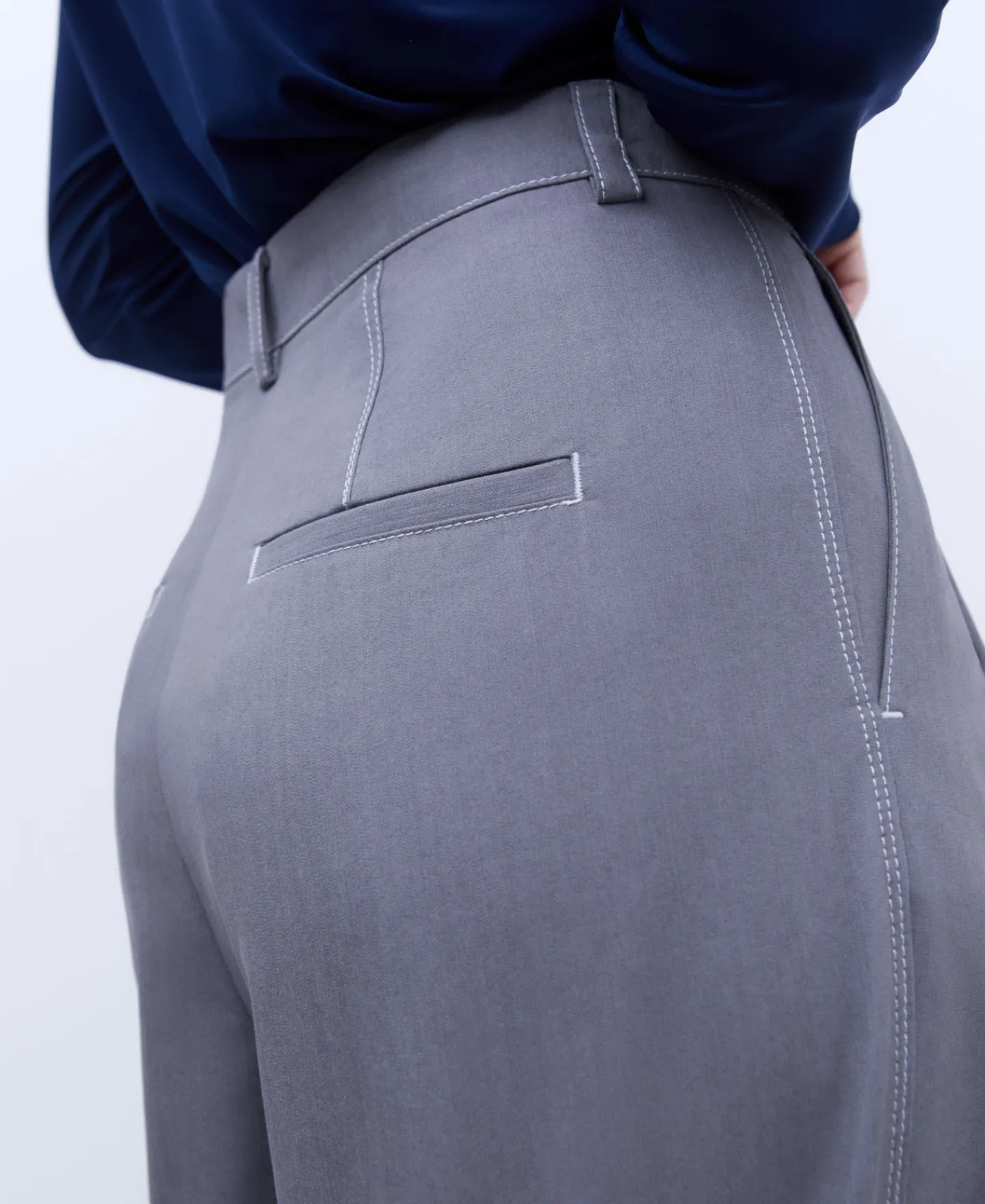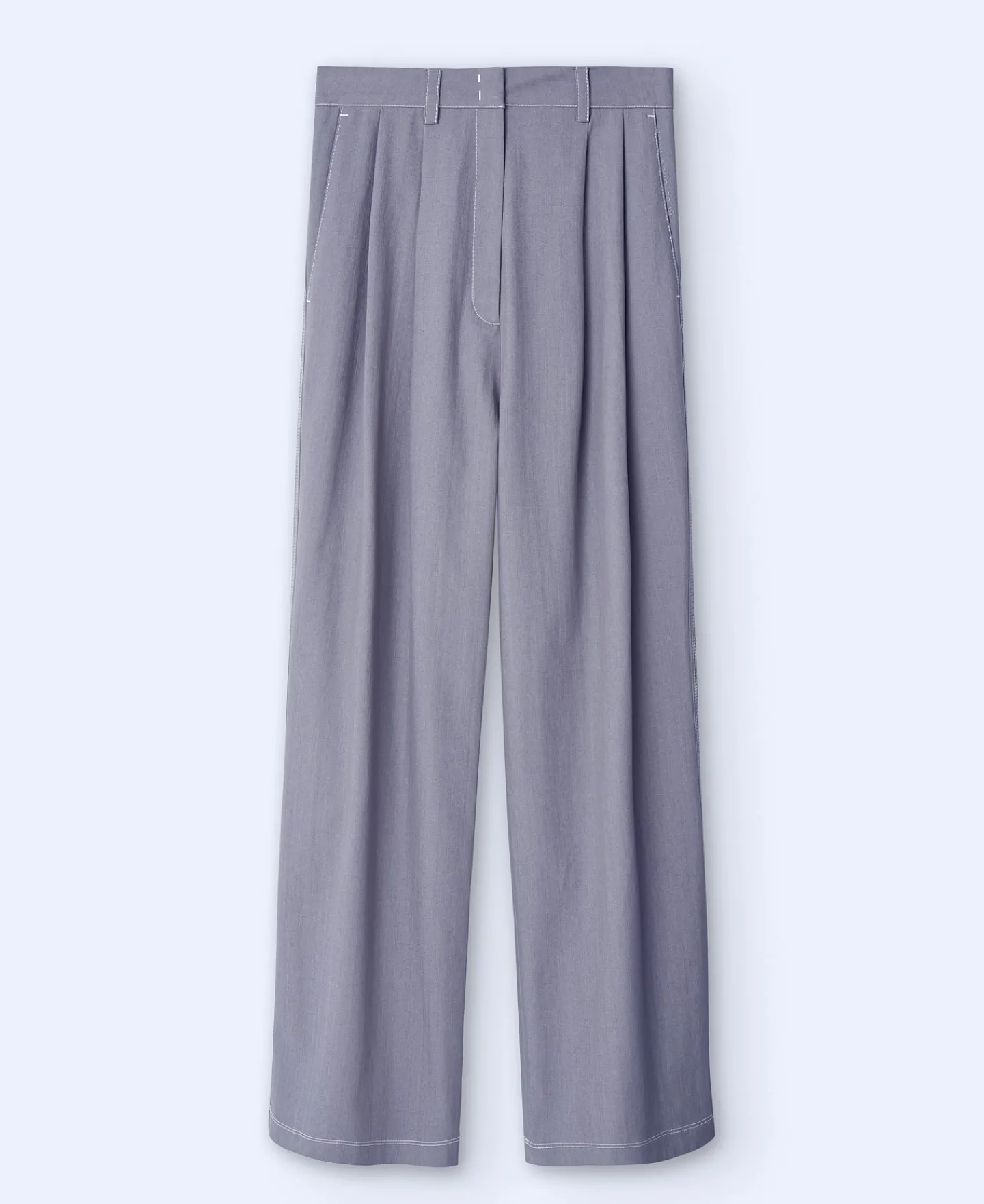 Calças Em Tecido De Algodao. Corte Largo. Pincas. Presilhas. Bolso Lateral. Costuras Em Contraste. Bolsos Posteriores D…