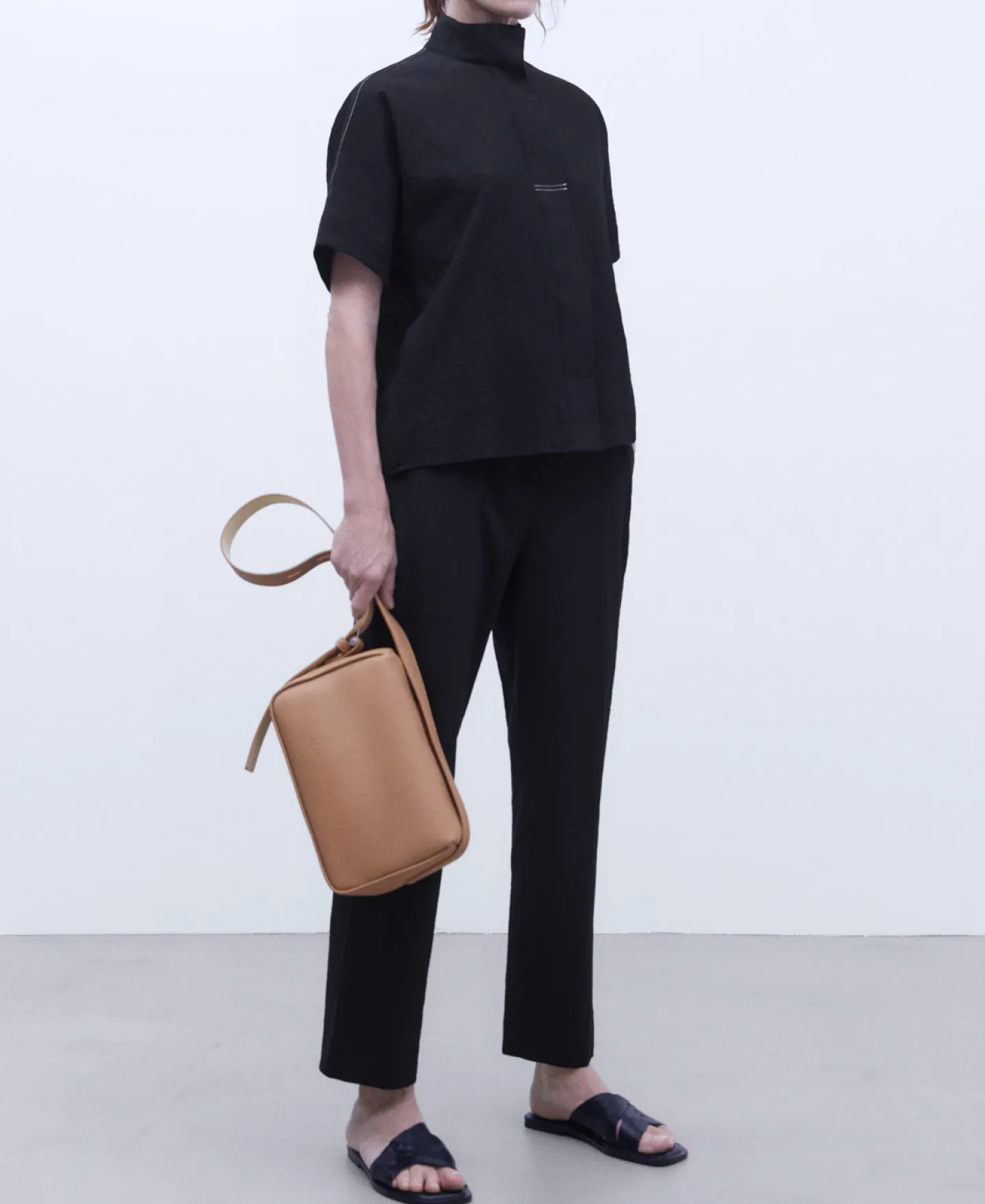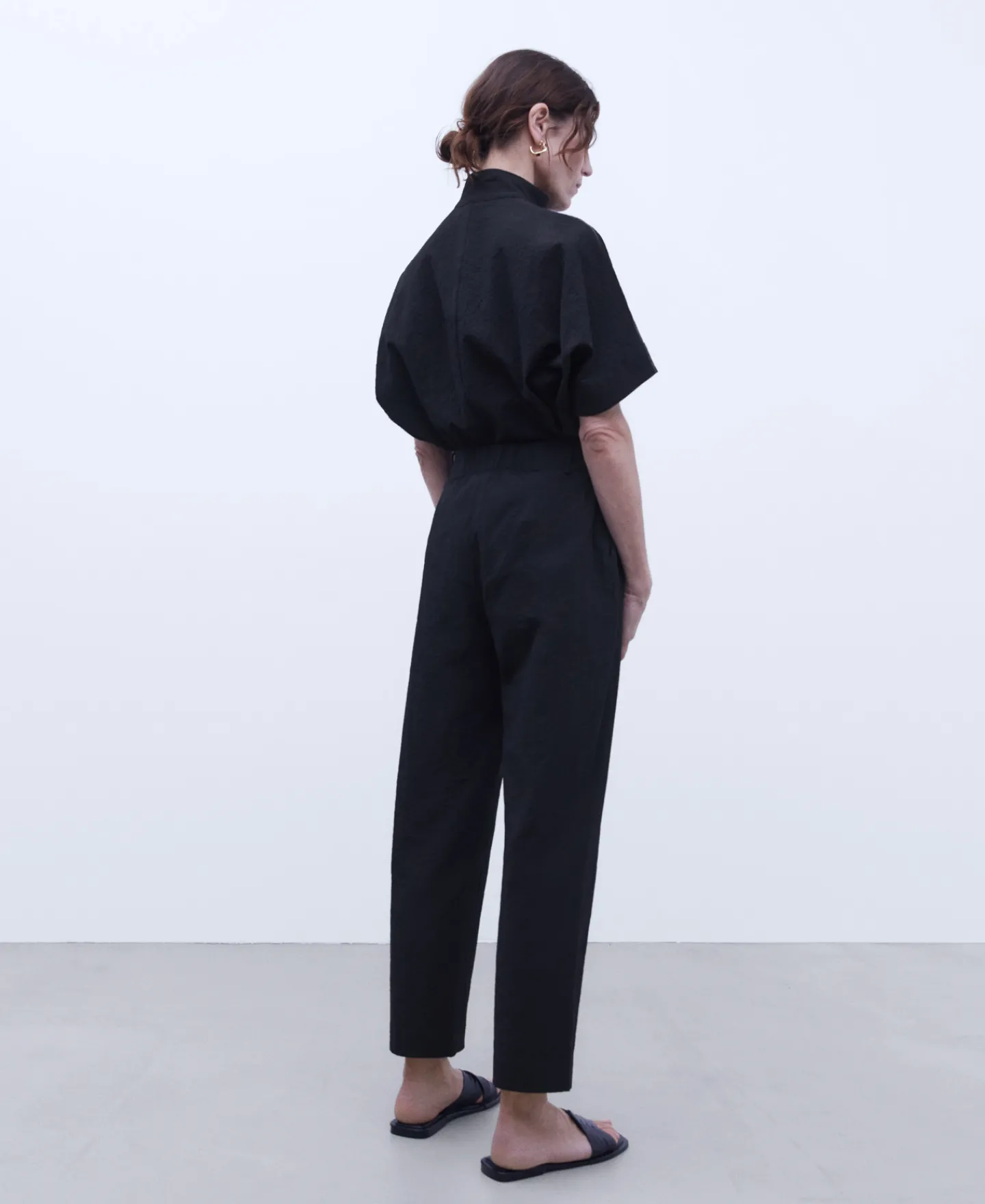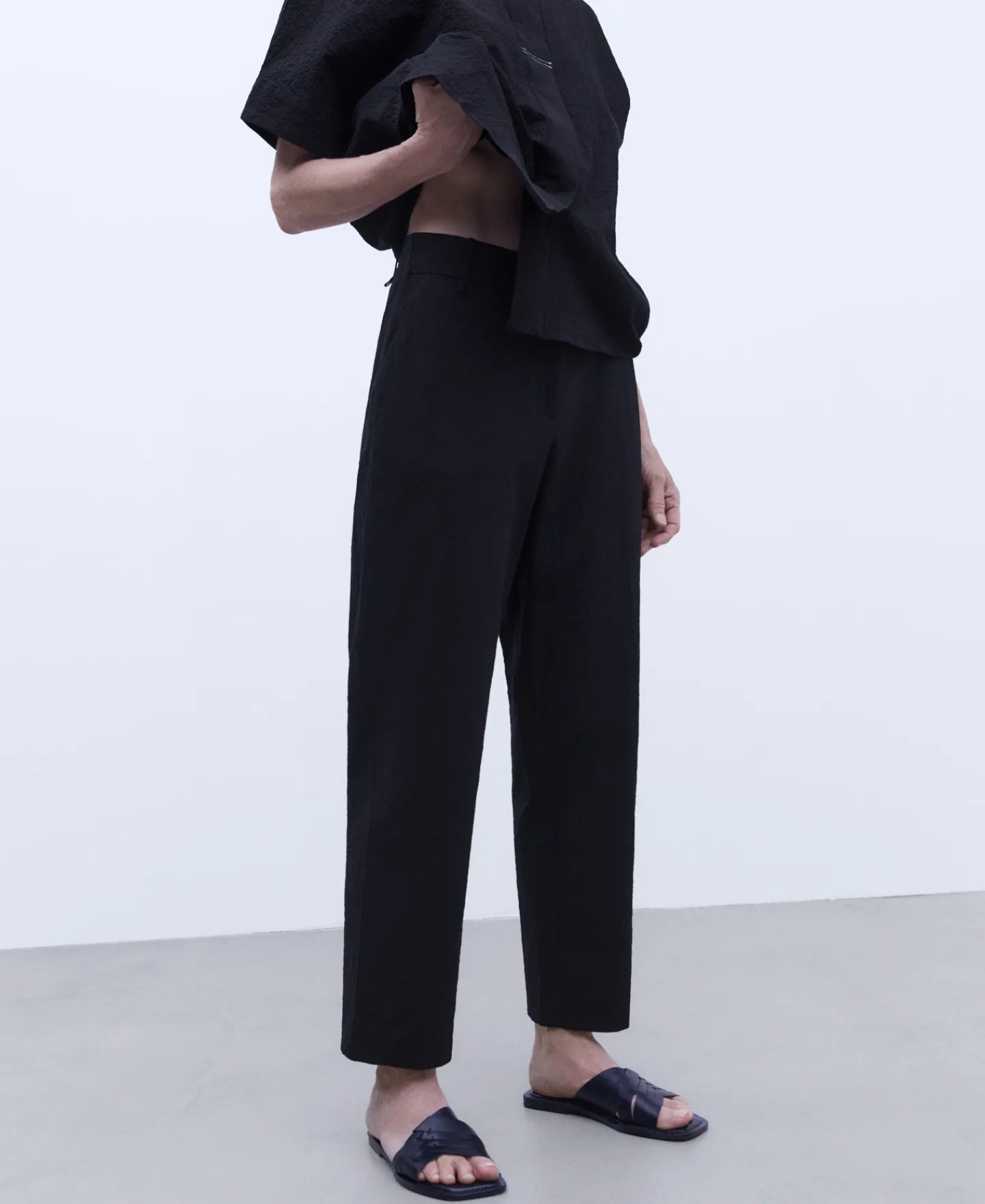 Perna Reta E Ampla. Ajuste Com Presilha Traseira. Bolsos Laterais Embutidos. Anarruga Em Algodao De Cultivo Etico.