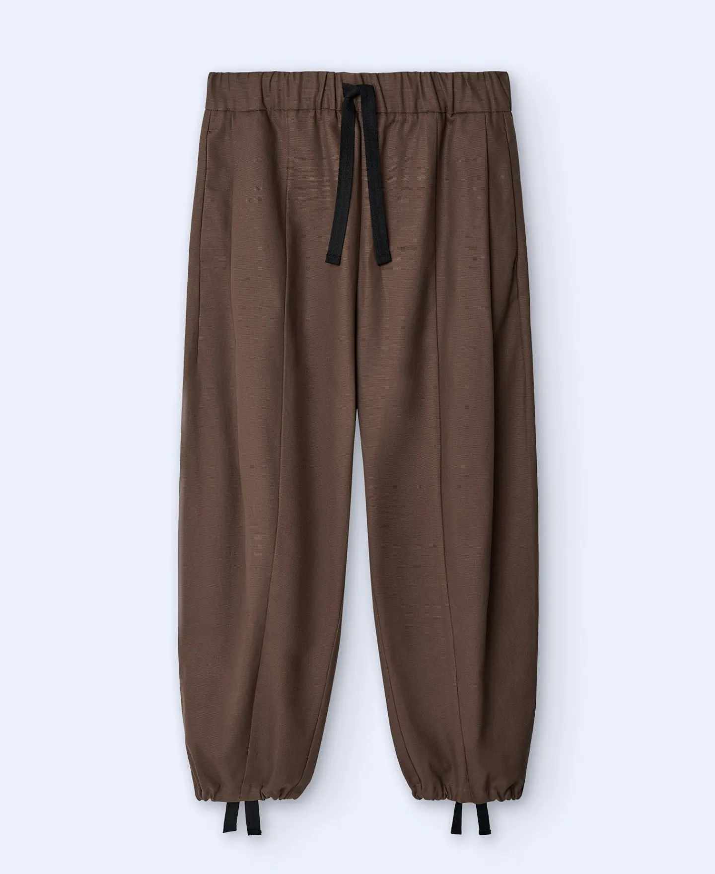 Calças Oversize Em Algodao Encerado. Cos Elastico Com Cordao. Costuras Verticais. Bainha Elastica.