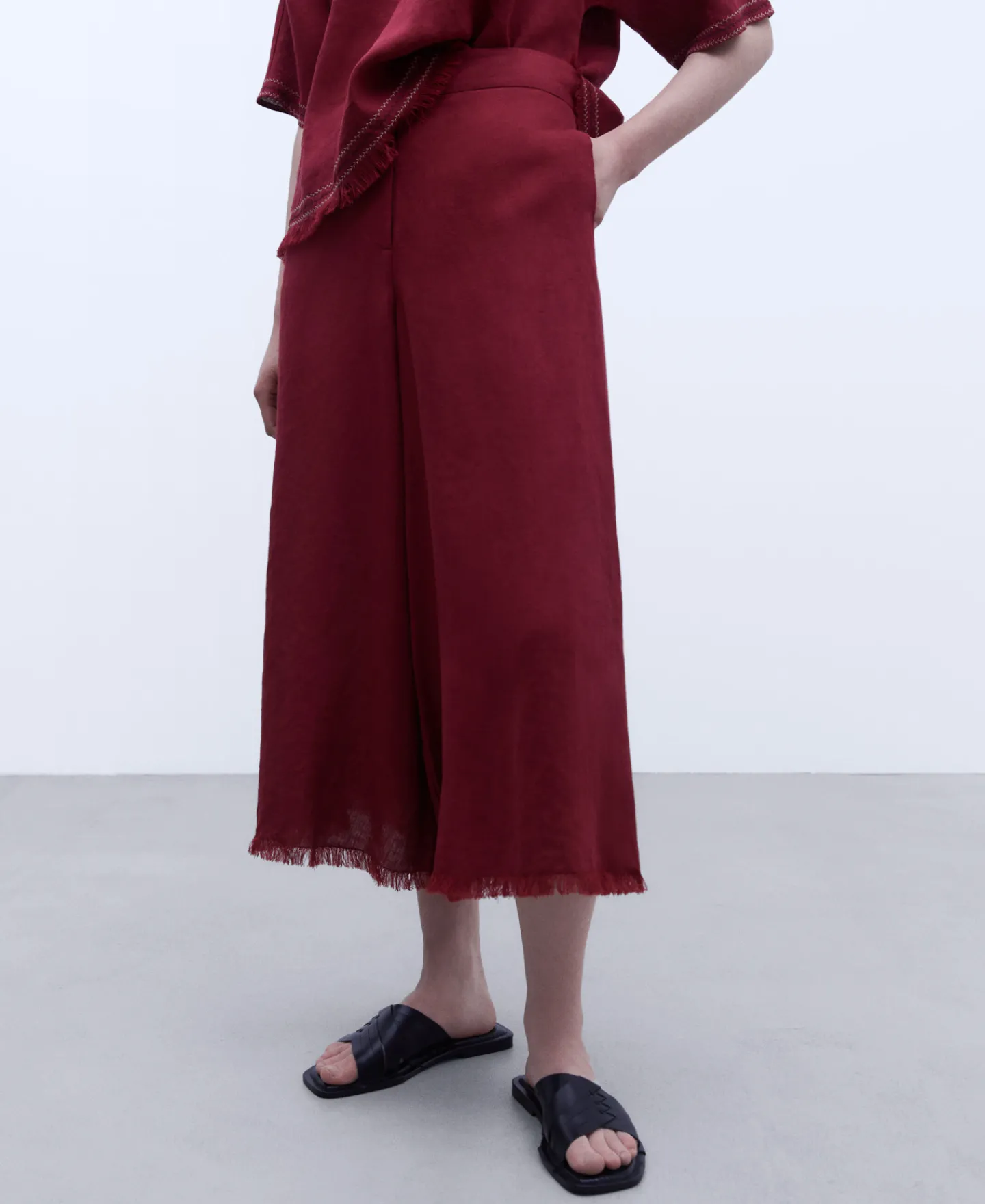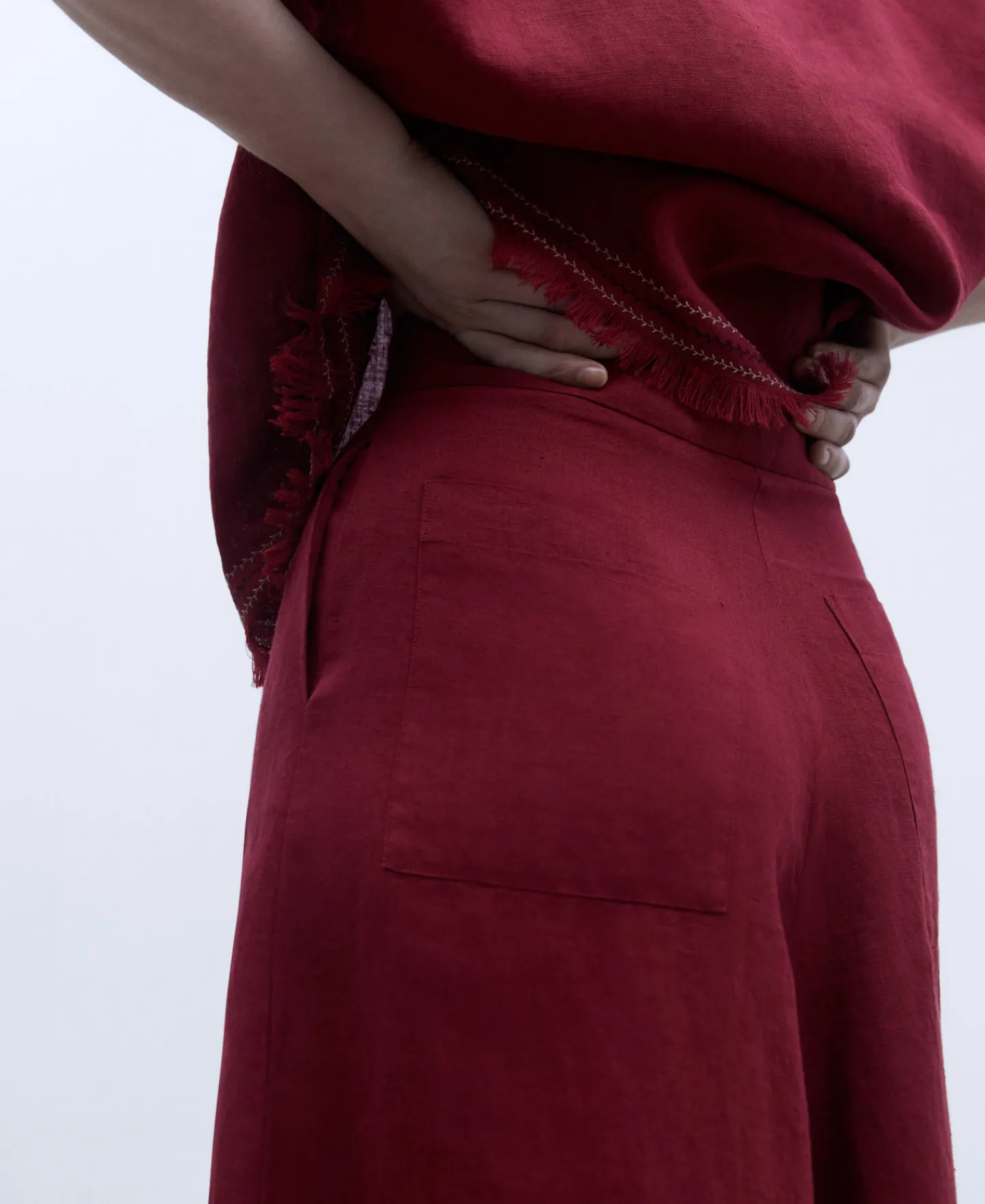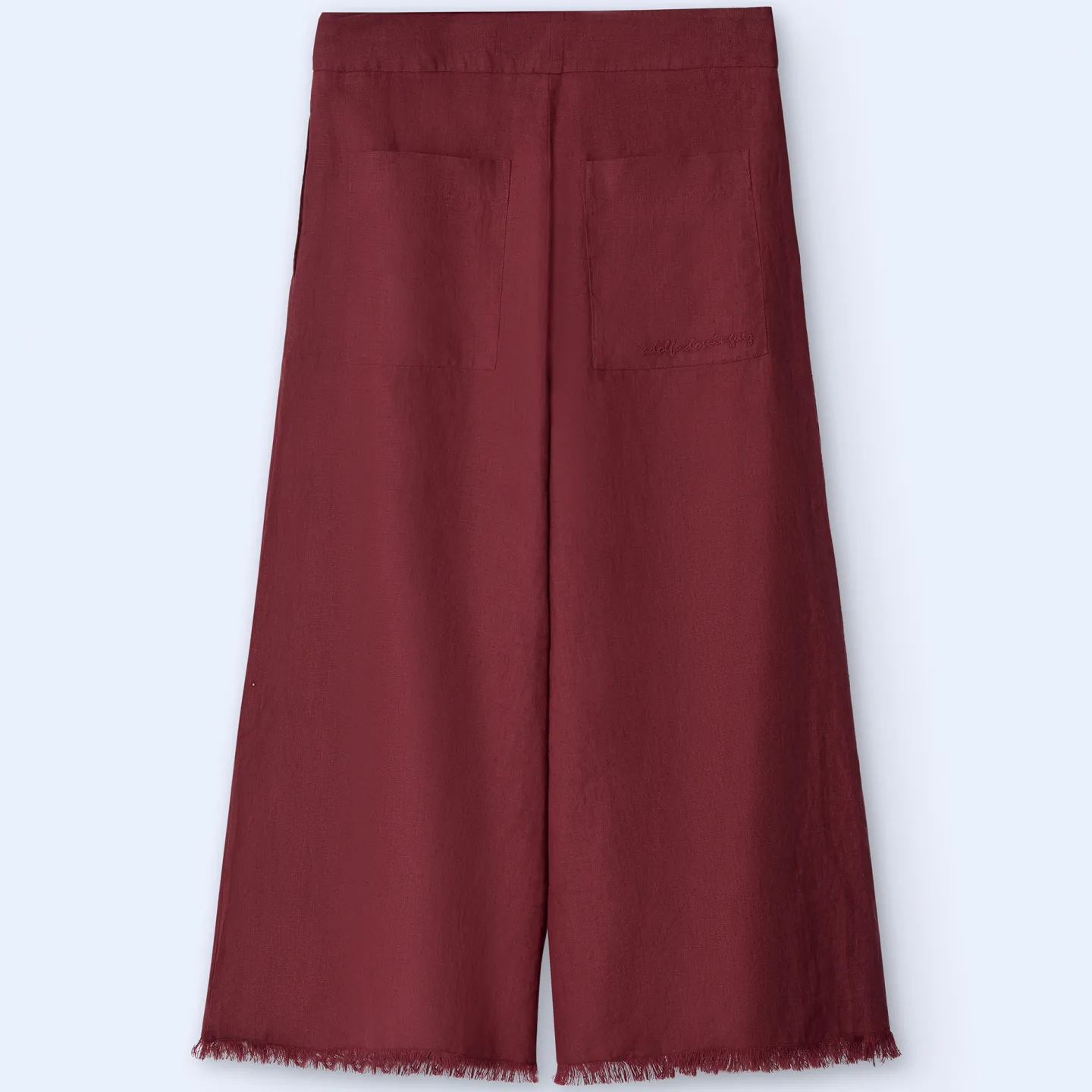 Cintura Alta E Perna Ampla. Ilhos Em Contraste. Logotipo Bordado No Bolso Traseiro Direito.100% Linho EuropeuCintura Alt…