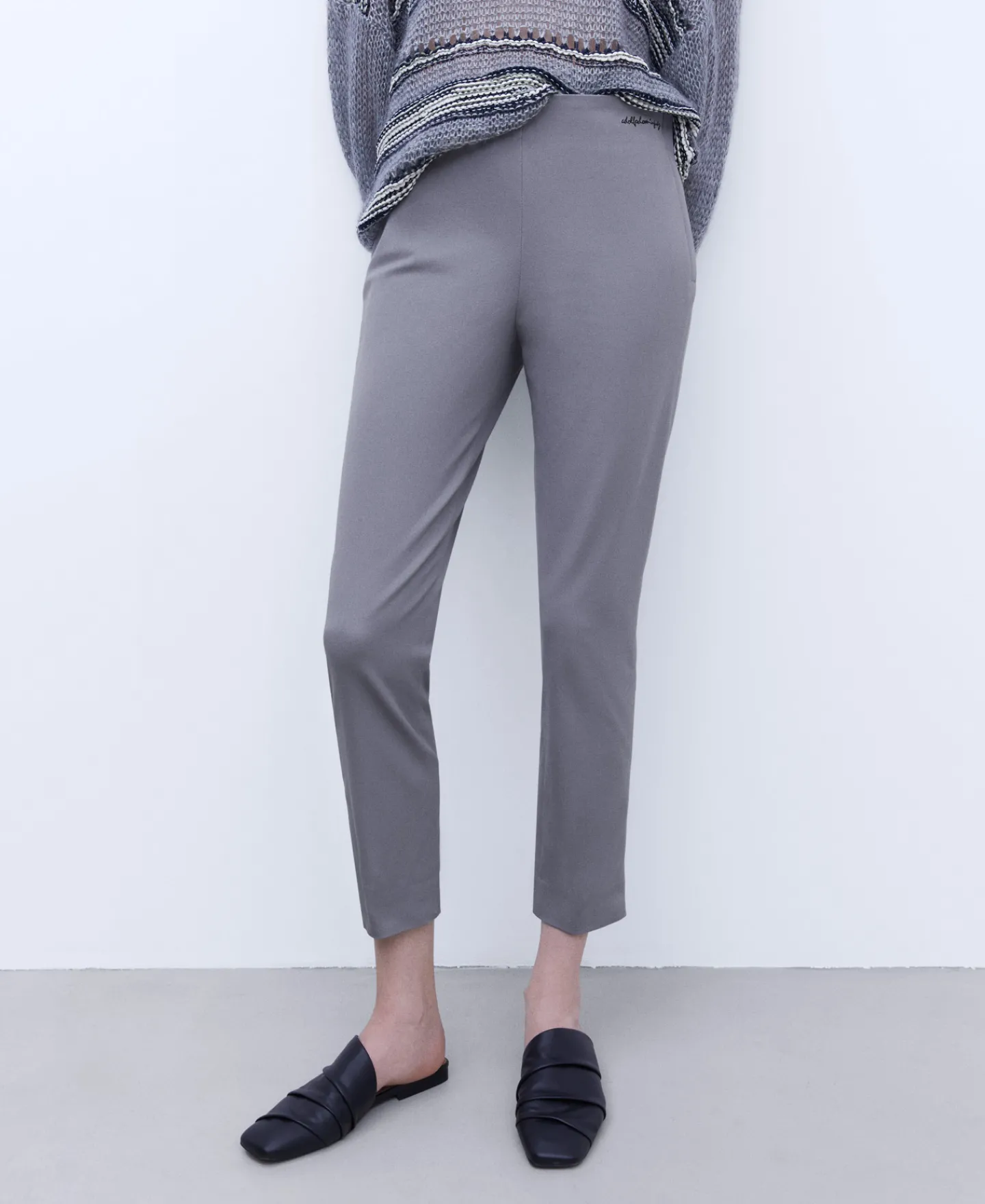 Calças Skinny Em Algodao. Fecho De Correr Lateral Oculto. Pinca Posterior. Bolso Posterior De Alfaiataria. Logotipo Bor…