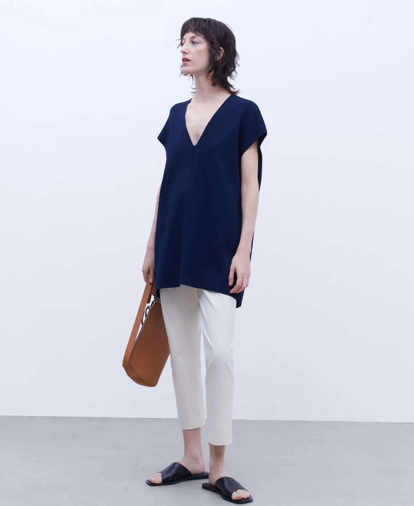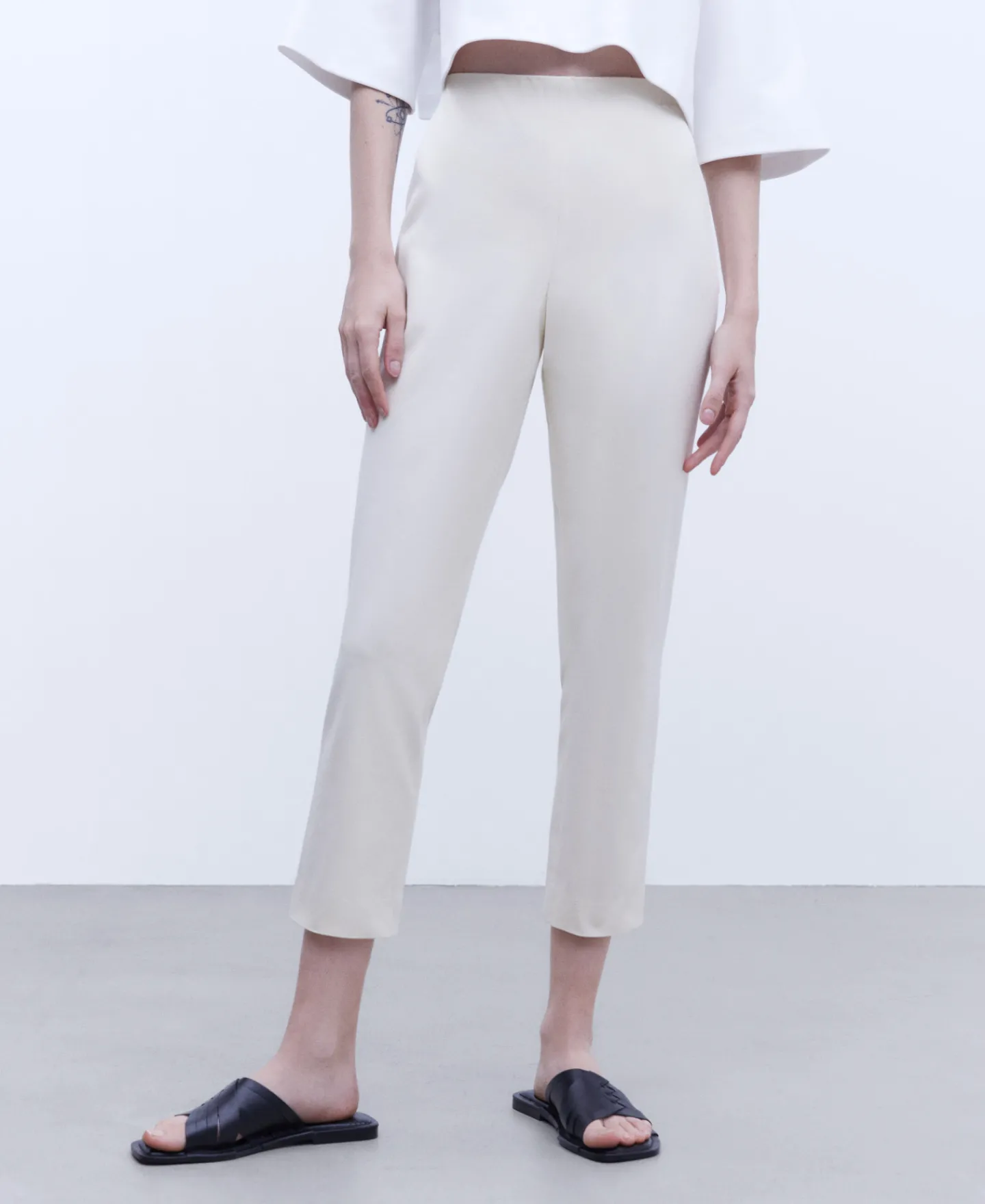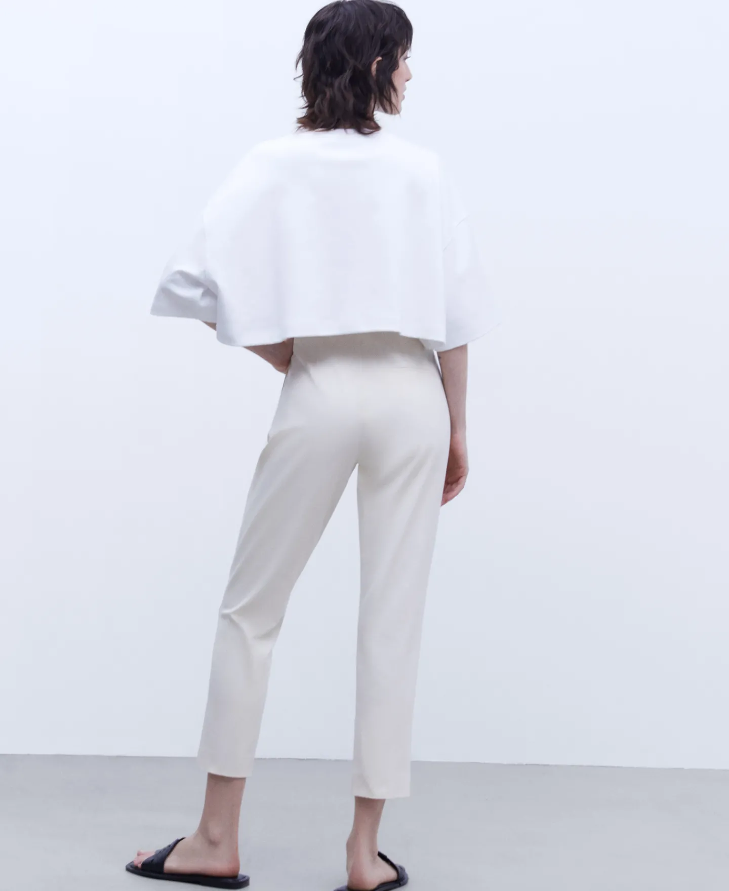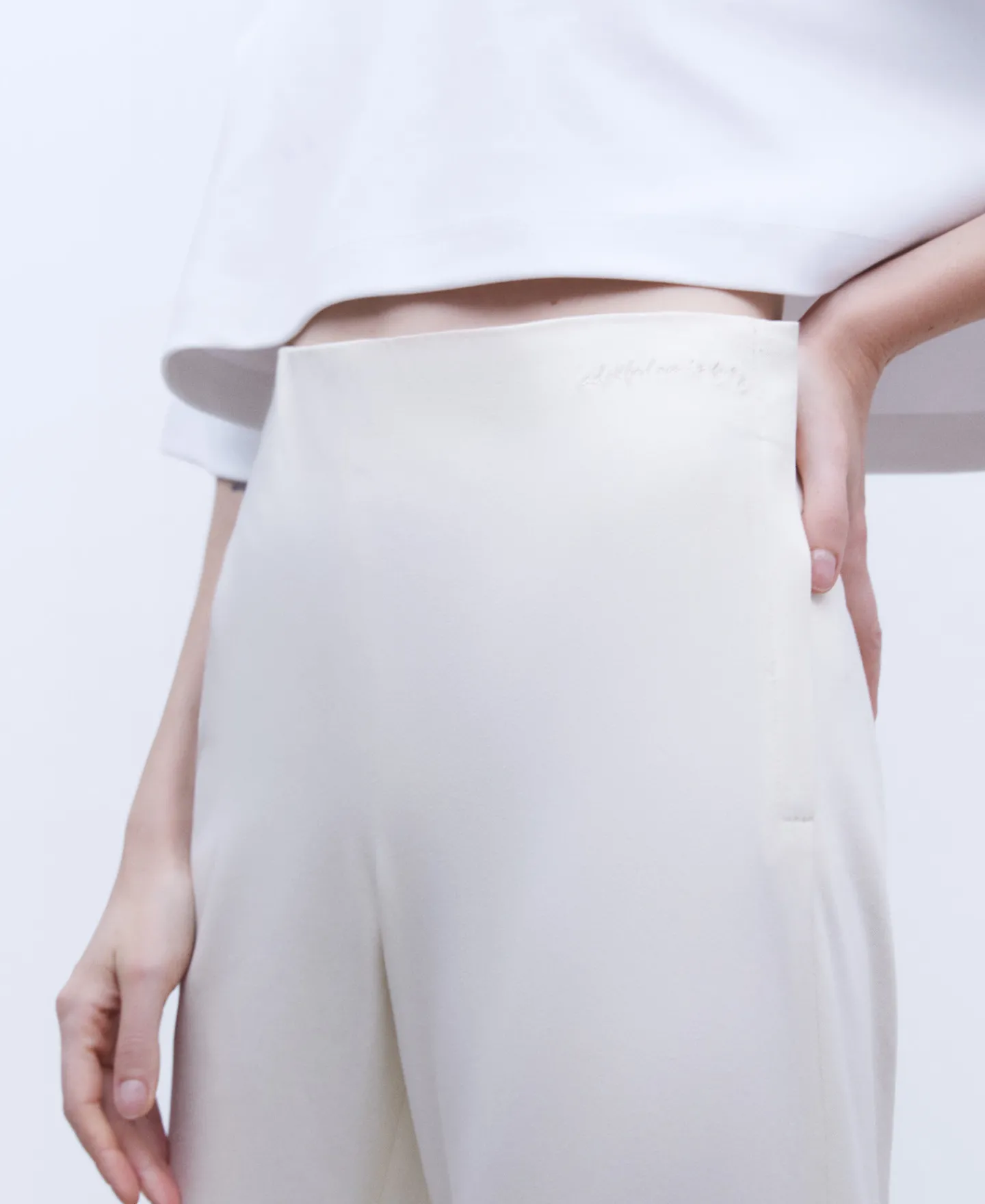 Calças Skinny Em Algodao. Fecho De Correr Lateral Oculto. Pinca Posterior. Bolso Posterior De Alfaiataria. Logotipo Bor…