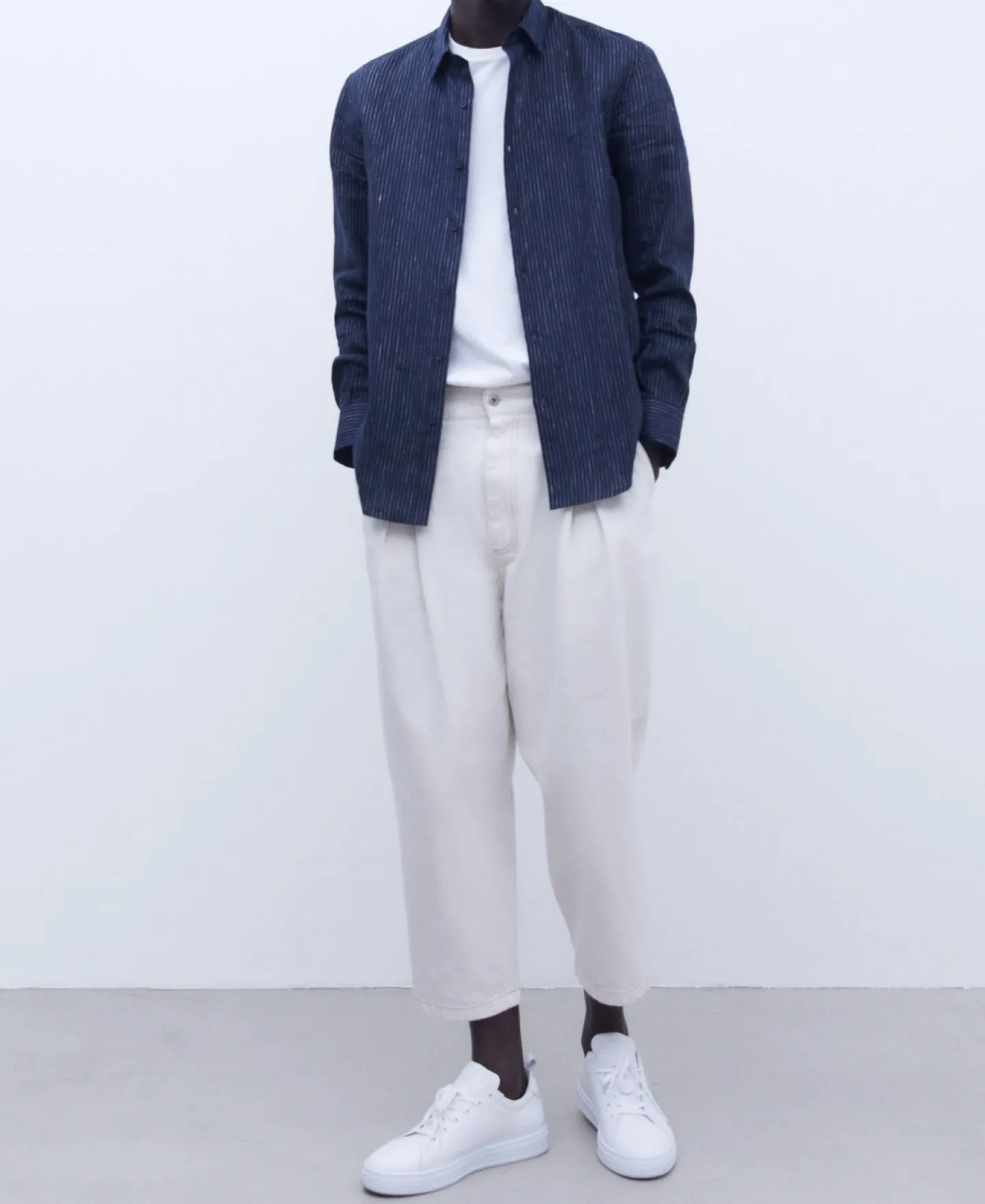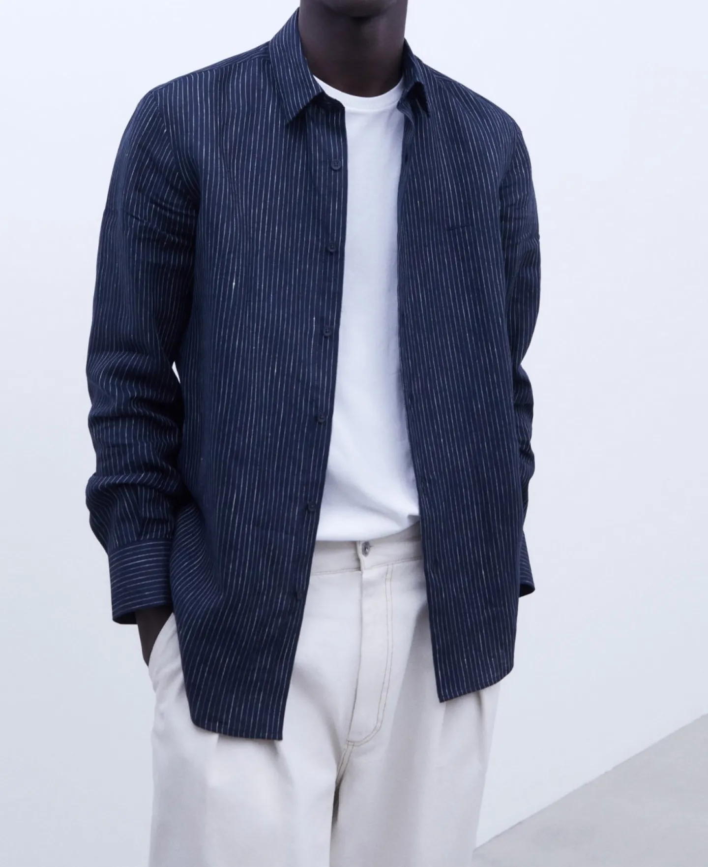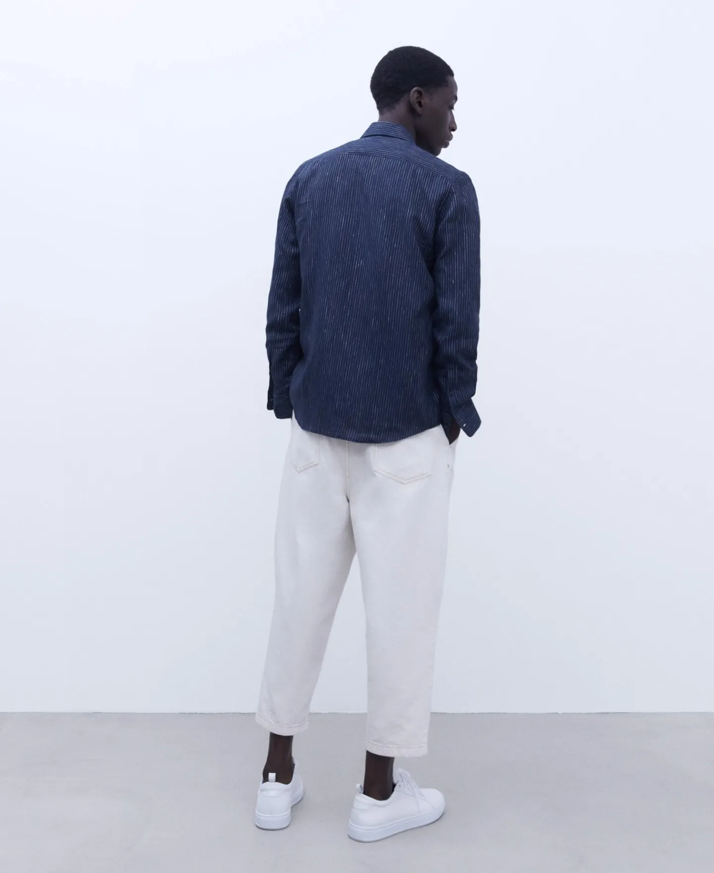 Manga Comprida. Gola De Lapela Com Botao. Logotipo Bordado No Peito. Carcelas Em V.Linho Europeu ResponsavelGola De Lape…