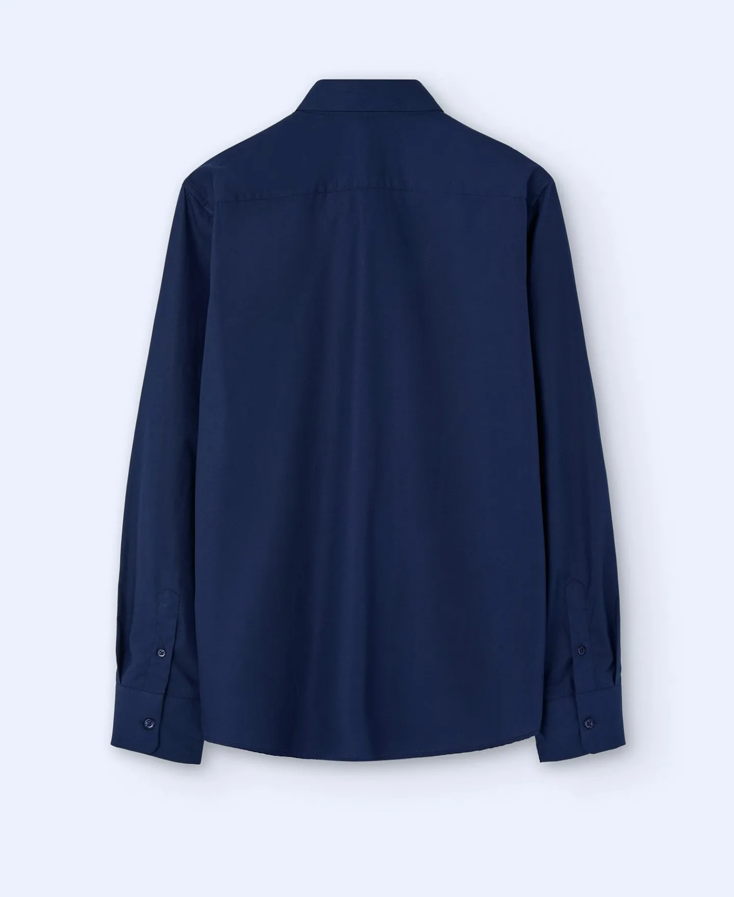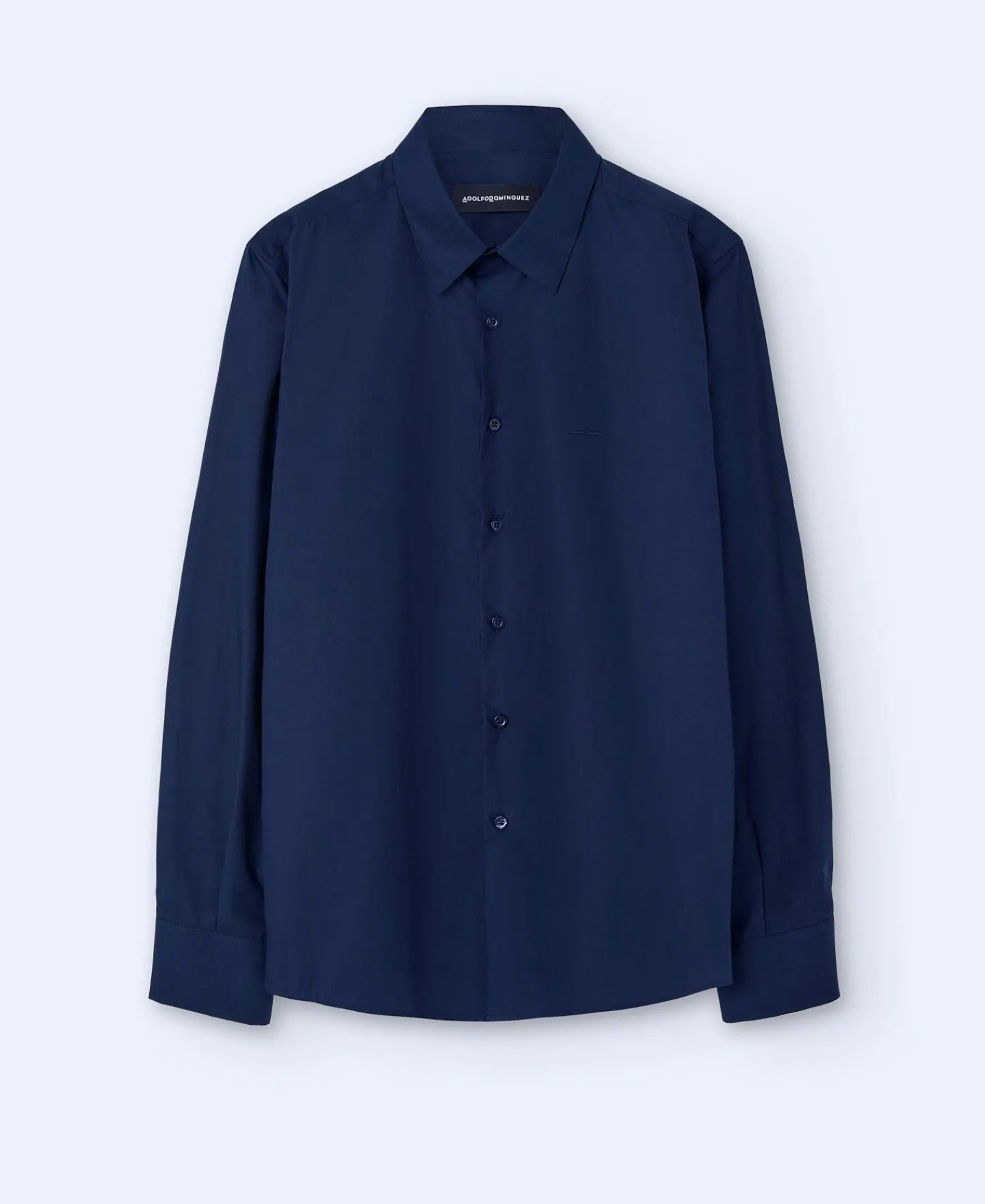 Camisa Em Algodao Organico Com Gola Camiseiro. Gola Abotoada Com Pespontos. Abotoadura Central. Logotipo Bordado. Bainha Arredondada.