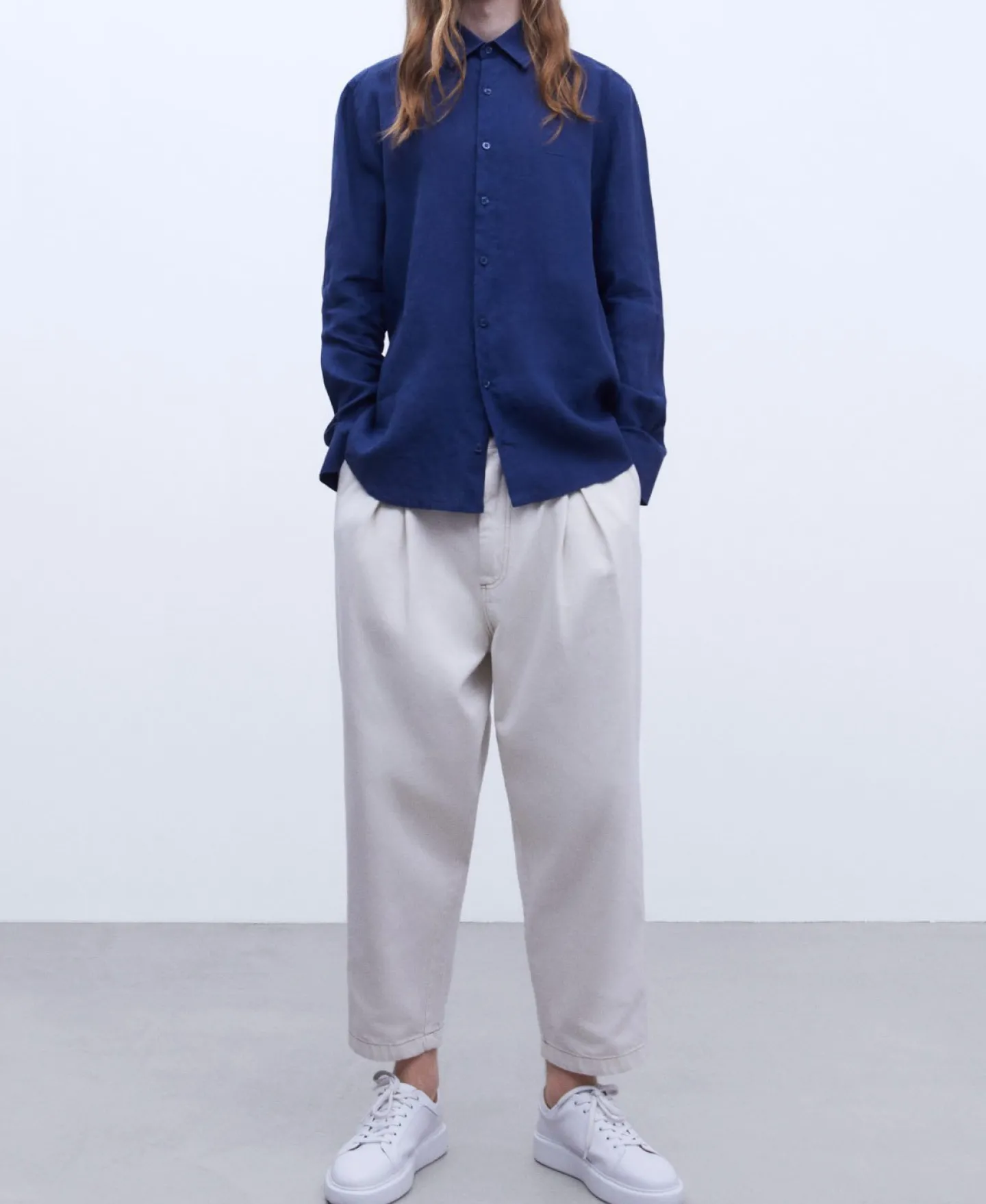 Manga Comprida. Gola Abotoada. Logotipo Bordado No Peito. Carcelas Em V.100% Linho EuropeuGola De Lapela100% Linho Europ…