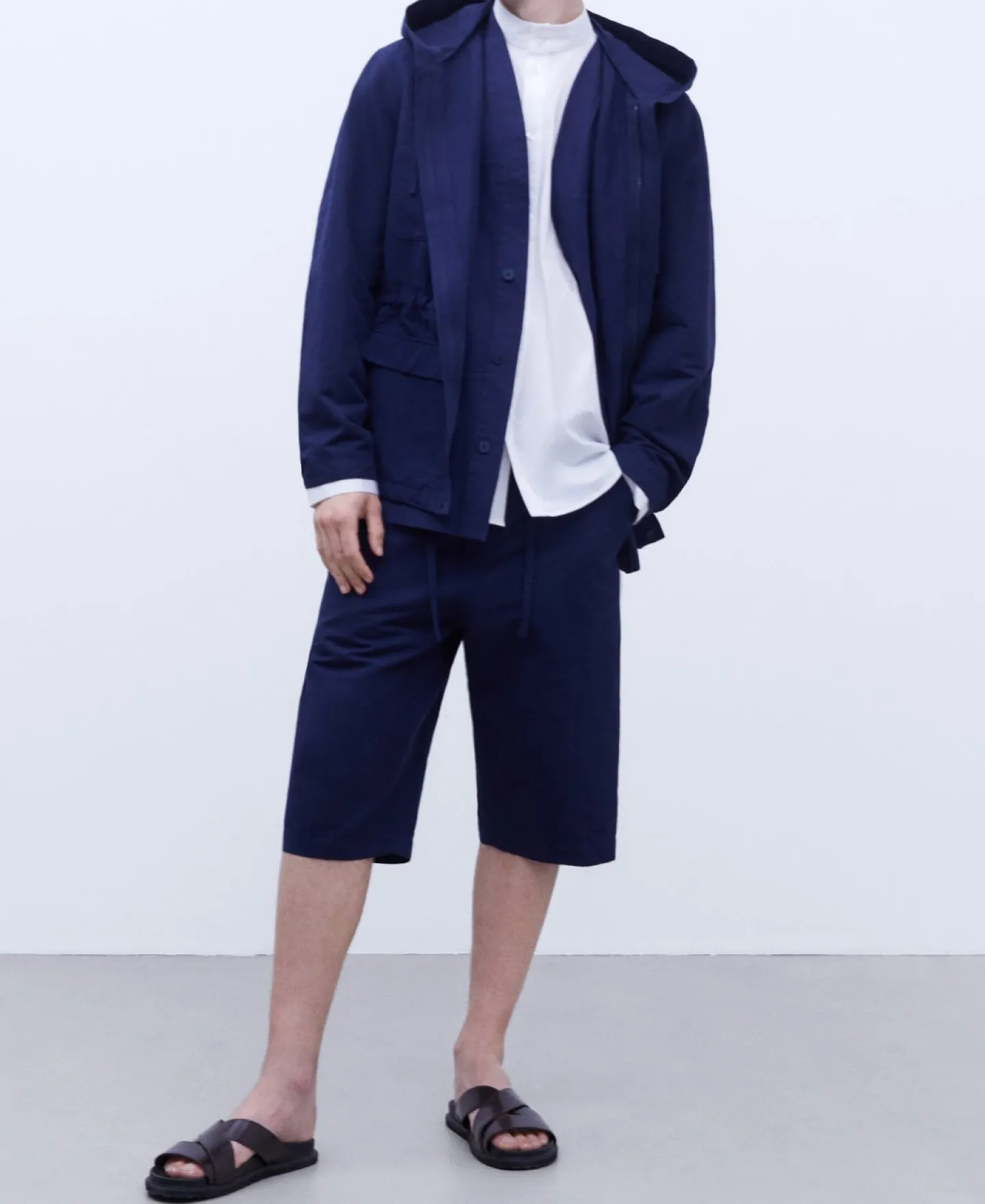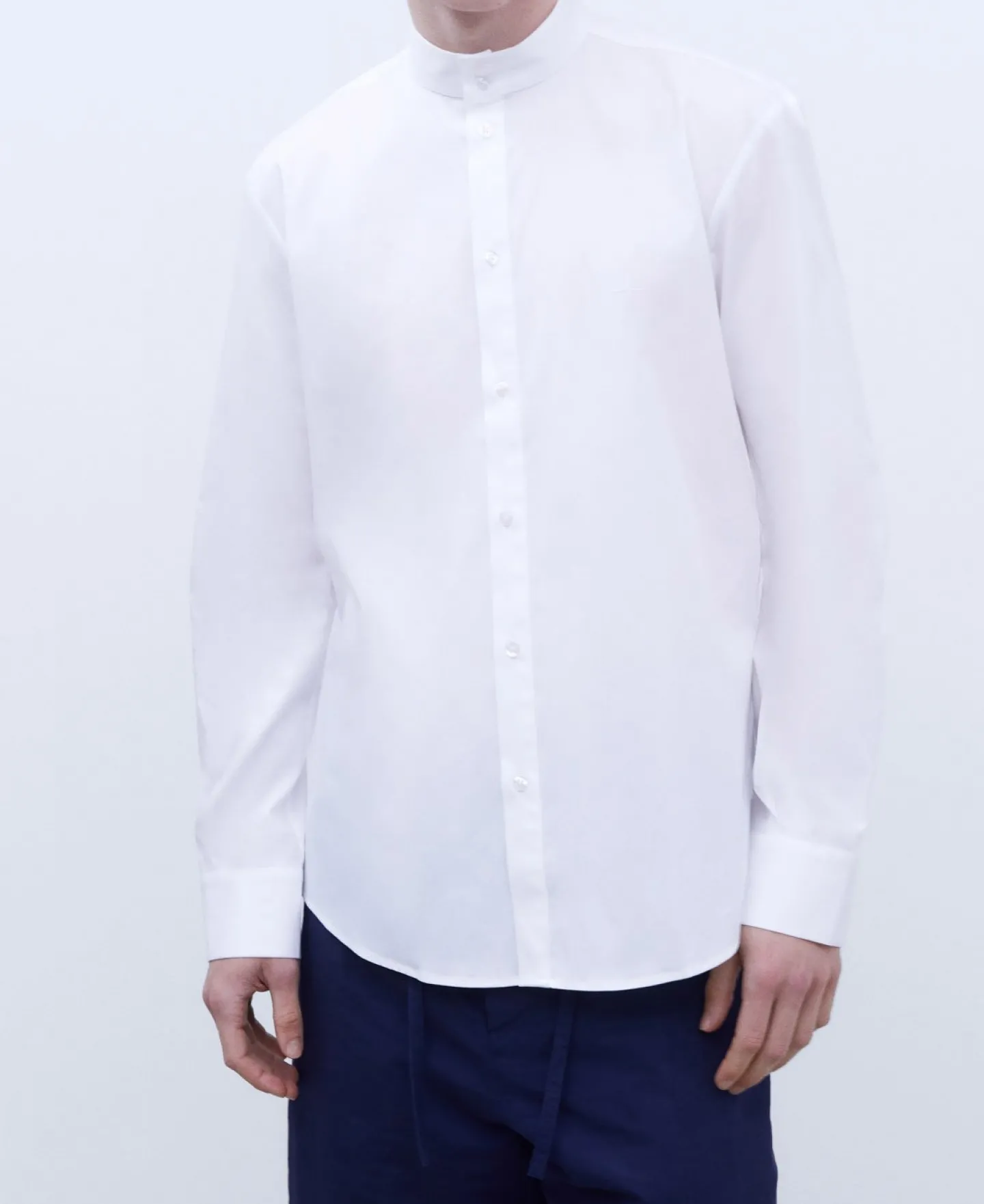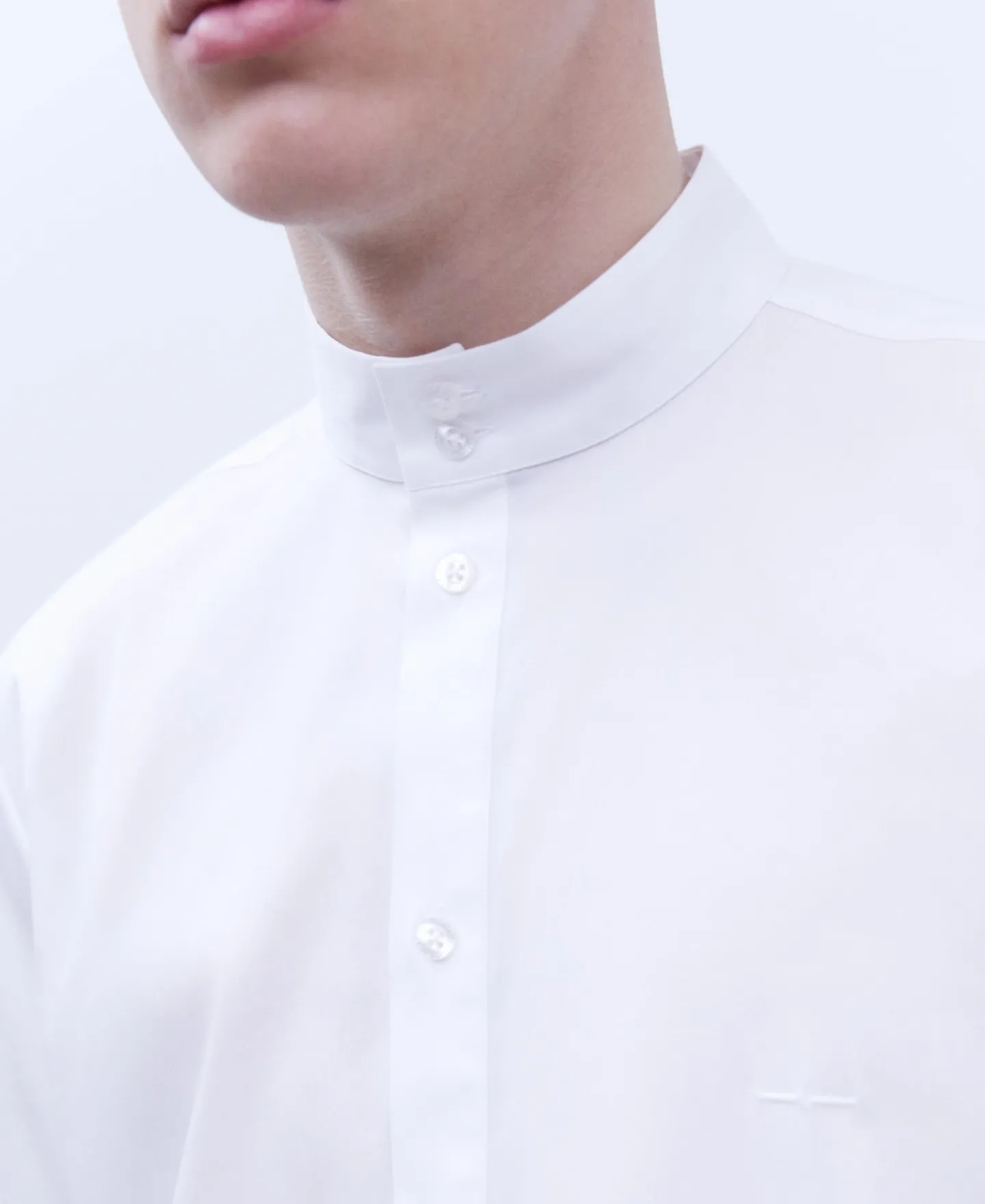 Camisa Com Gola Mao Em Algodao Elastico. Fecho De Dois Botoes. Aberturas Laterais. Punhos Com Carcelas Altas.