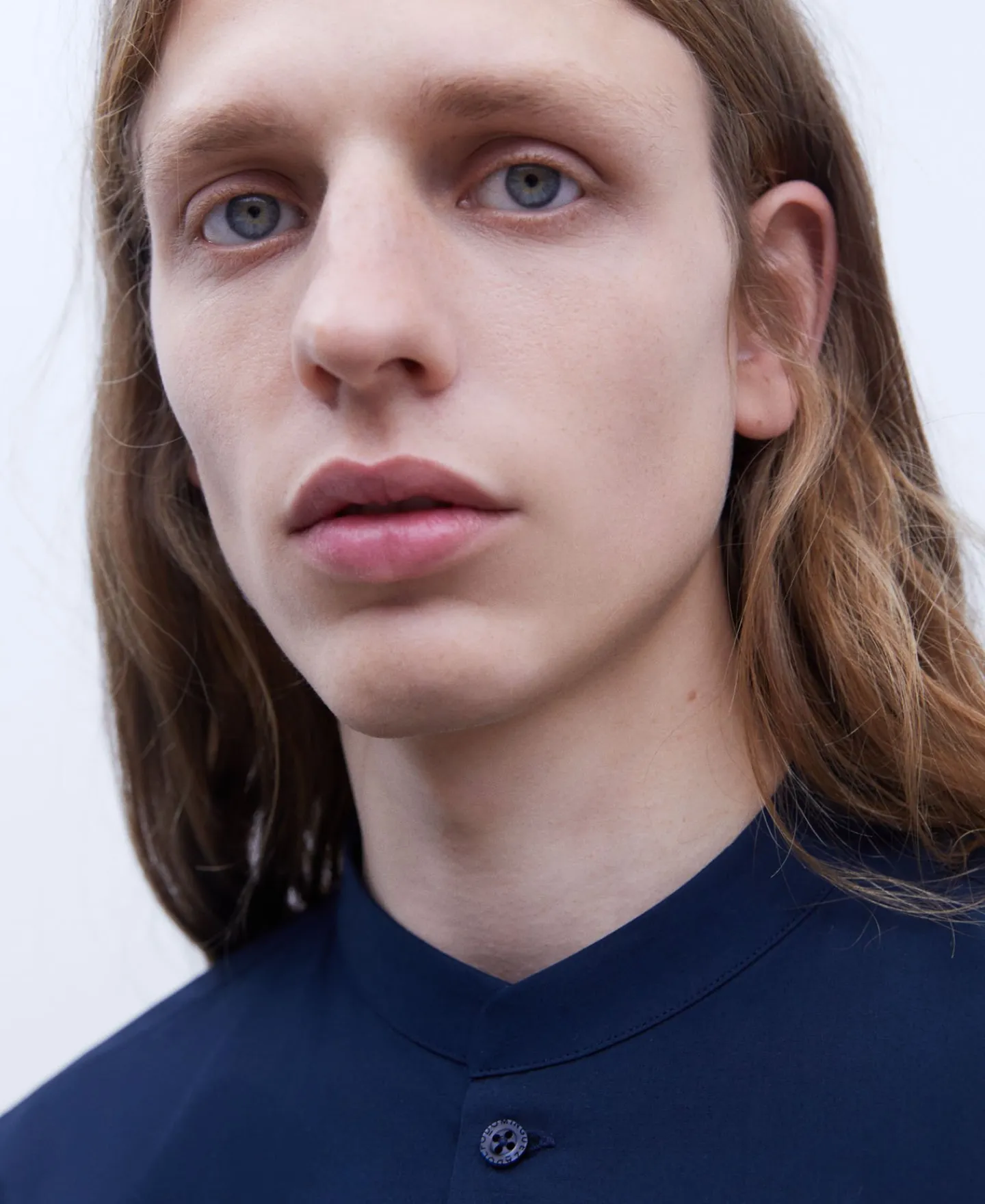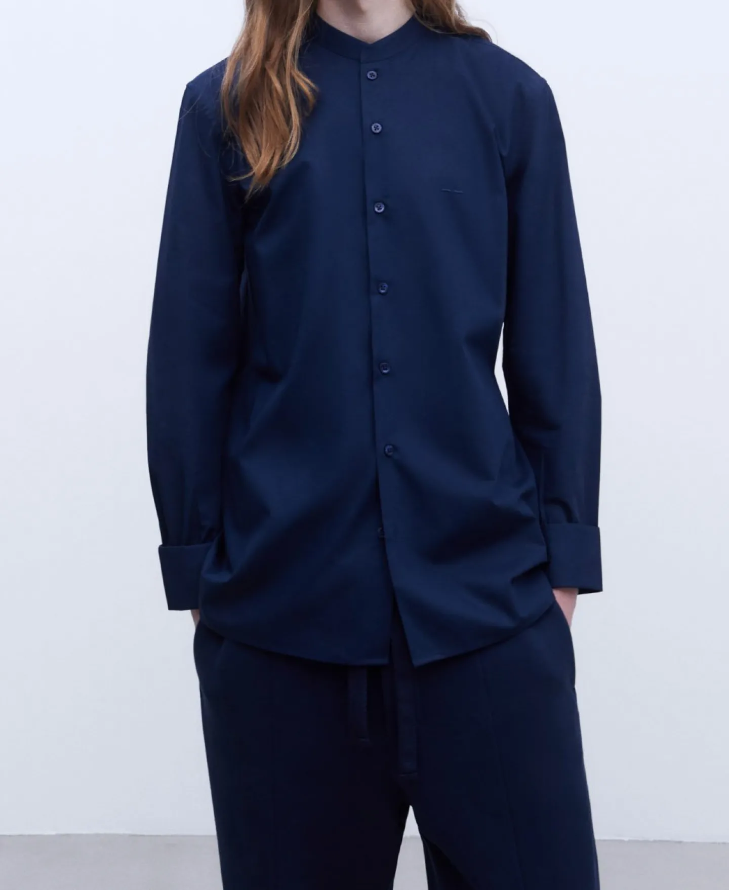 Adolfo Dominguez Camisas | Camisa Com Gola Mao Em Algodao Organico Azul-Marinho