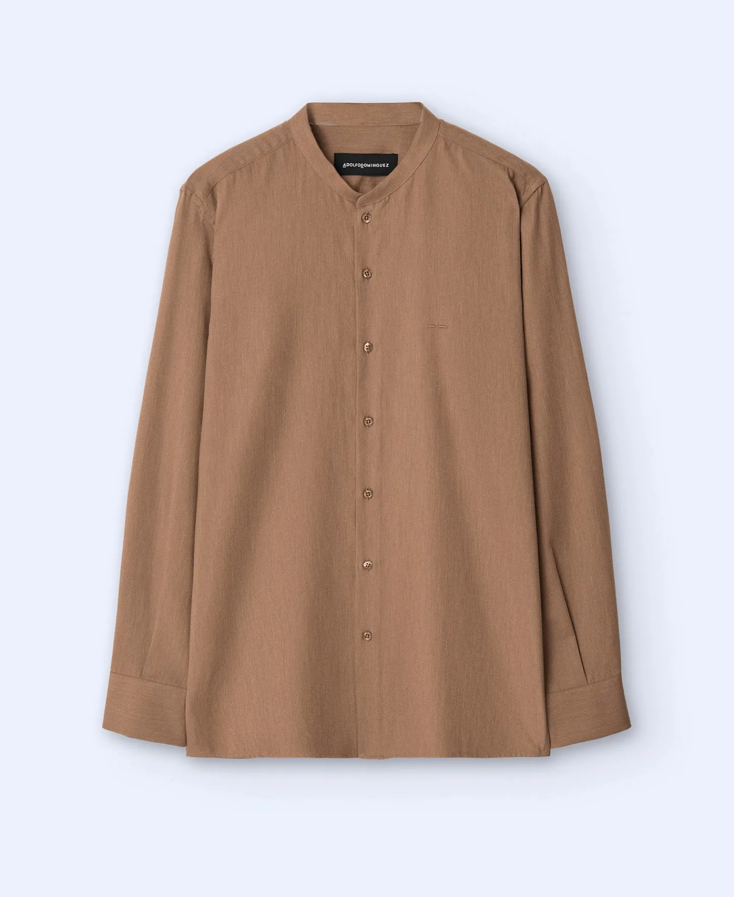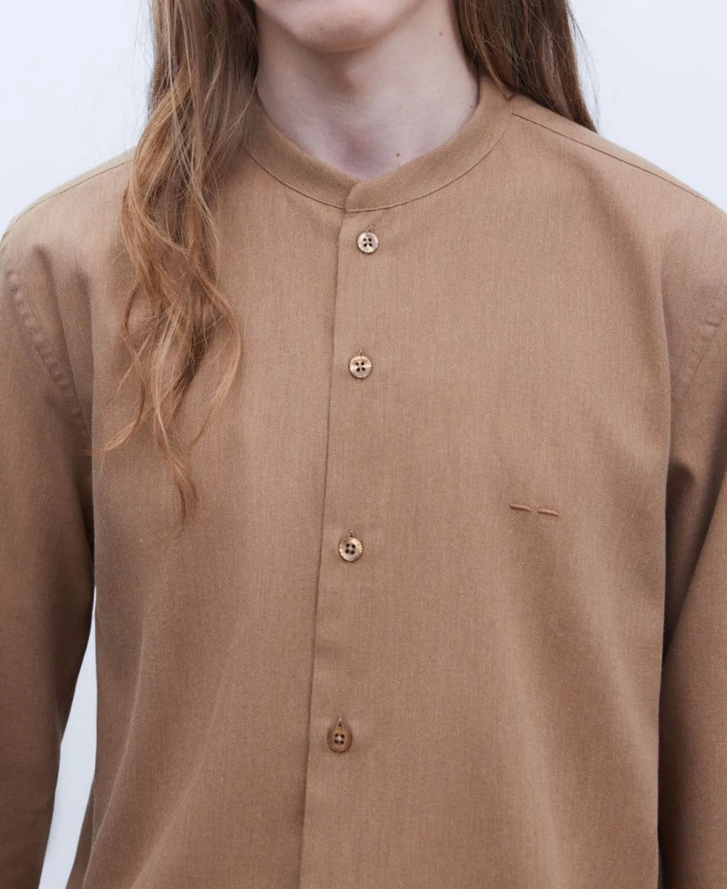 Camisa Em Algodao Com Gola Mao. Abotoadura Central. Logotipo Bordado. Bainha Arredondada.