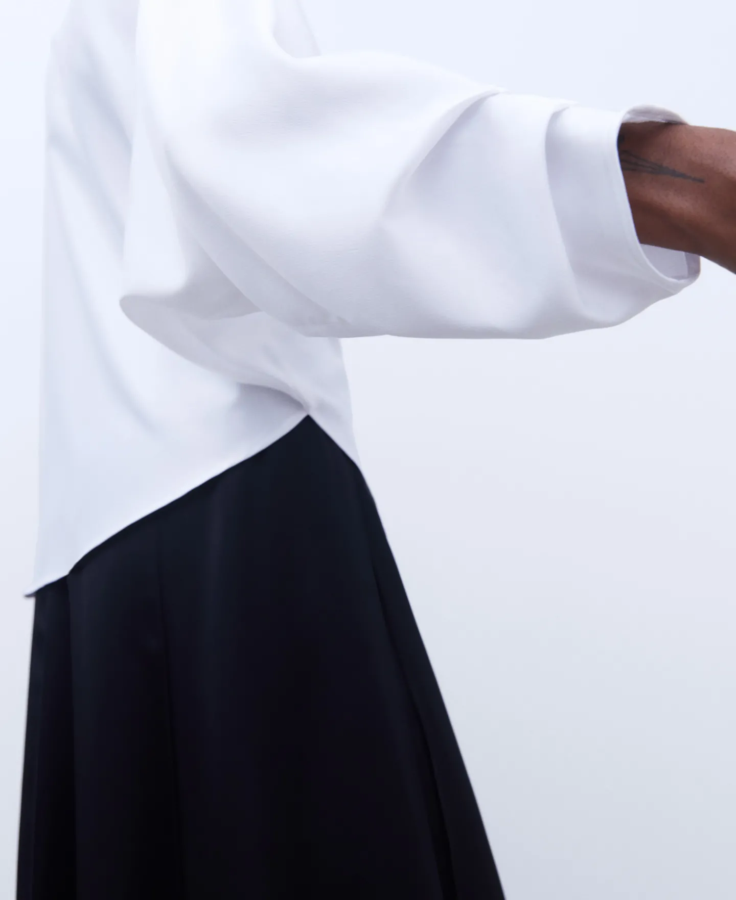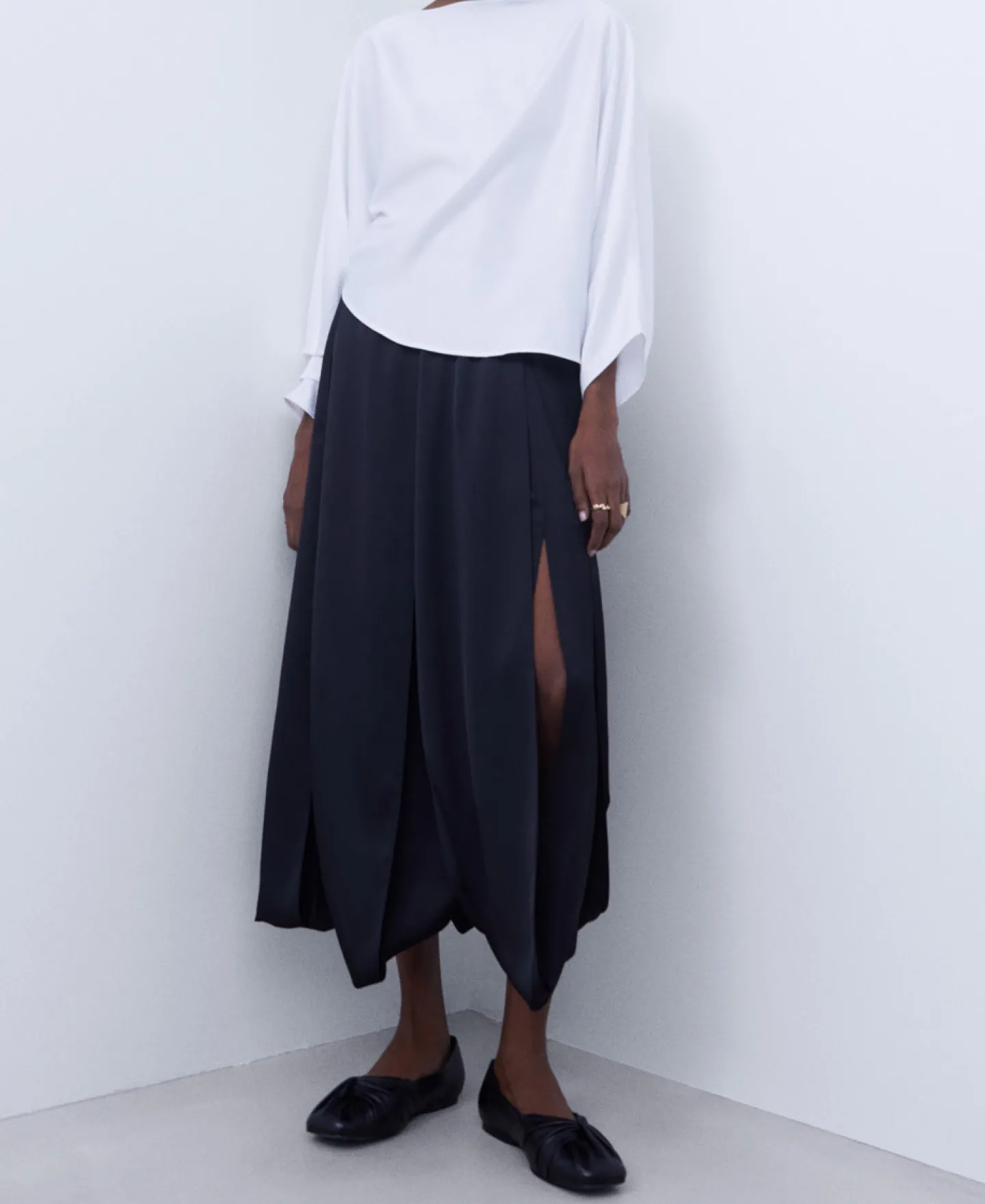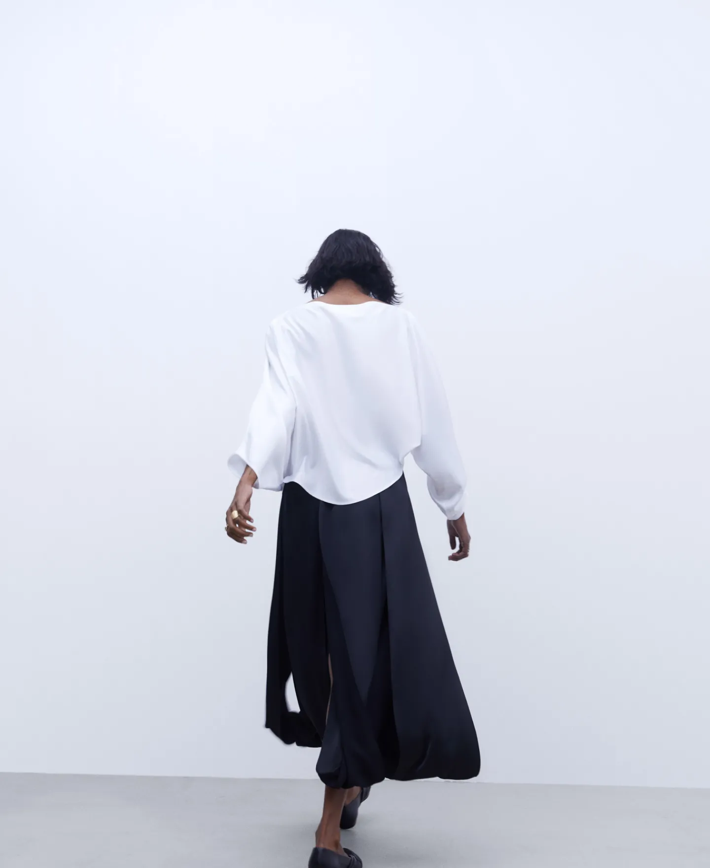 Blusa Com Decote Barco. Manga Japonesa Assimetrica. Um Punho Franzido. Bainha Assimetrica.