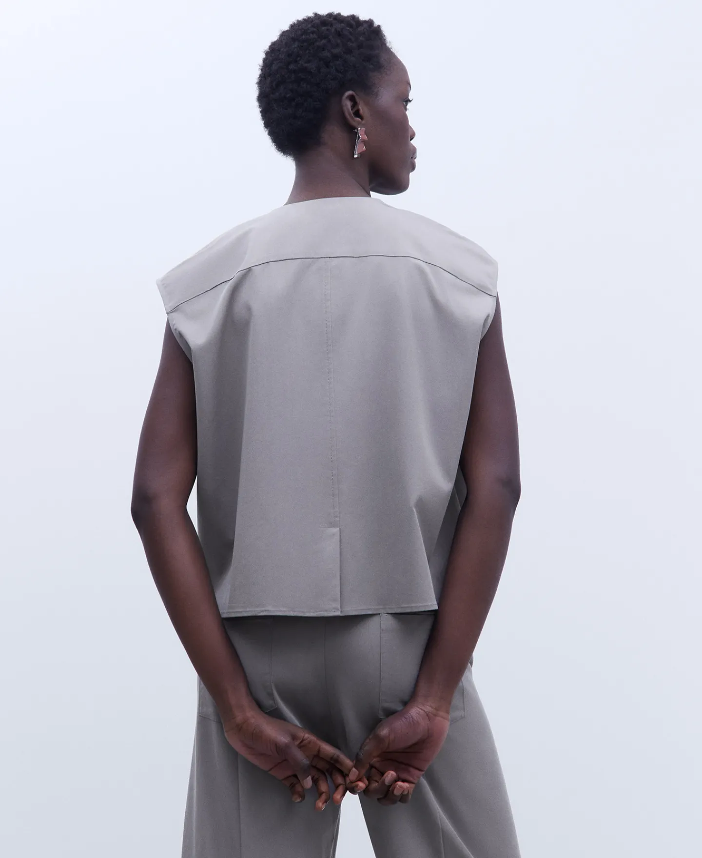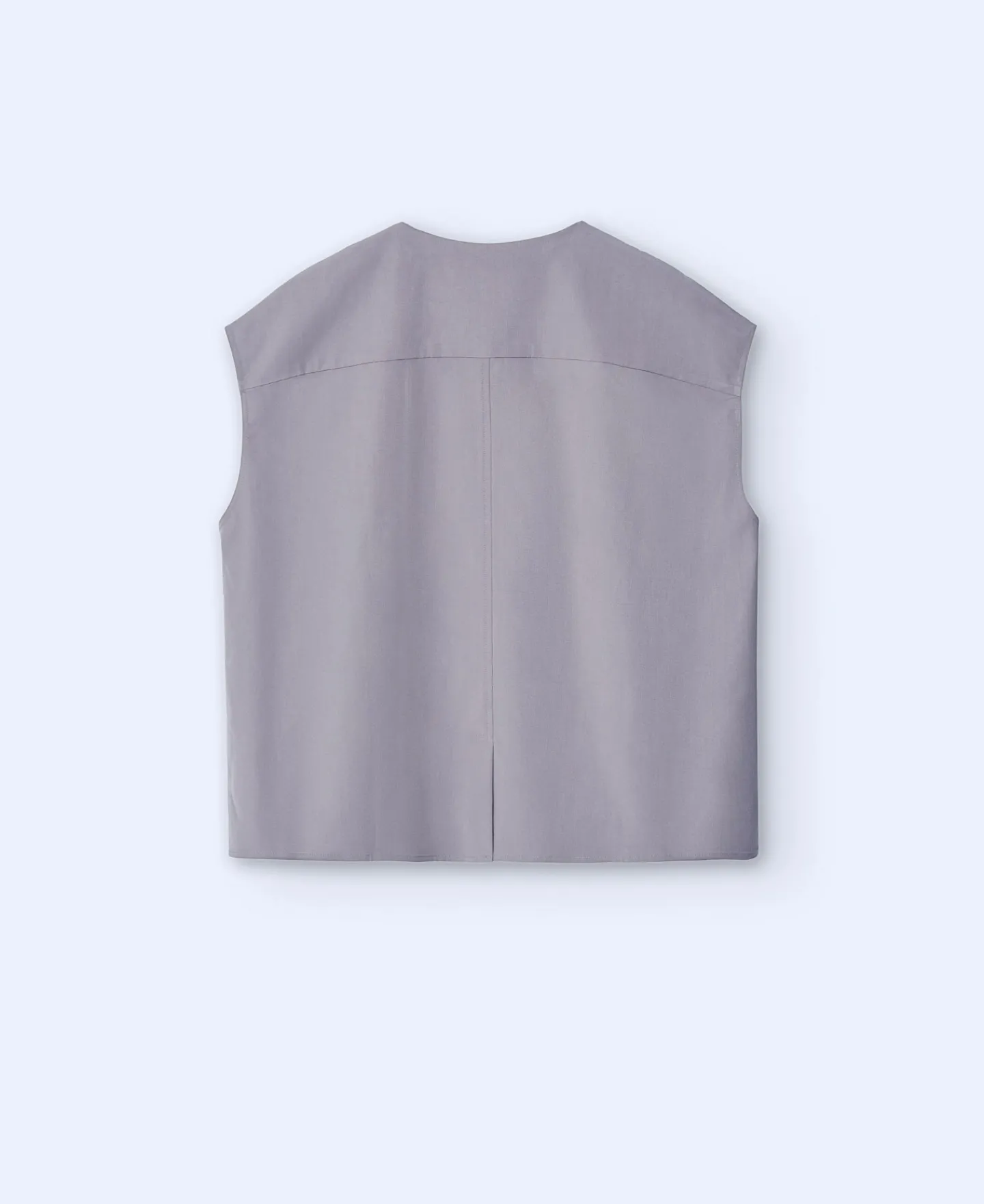 Blusa Sem Mangas De Tres Botoes. Gola Redonda. Bolso Plastrao Frontal. Fecho De Botoes E De Correr Com Carcela. Escapulario Nas Costas. Abertura Central Posterior. Bainha Reta.