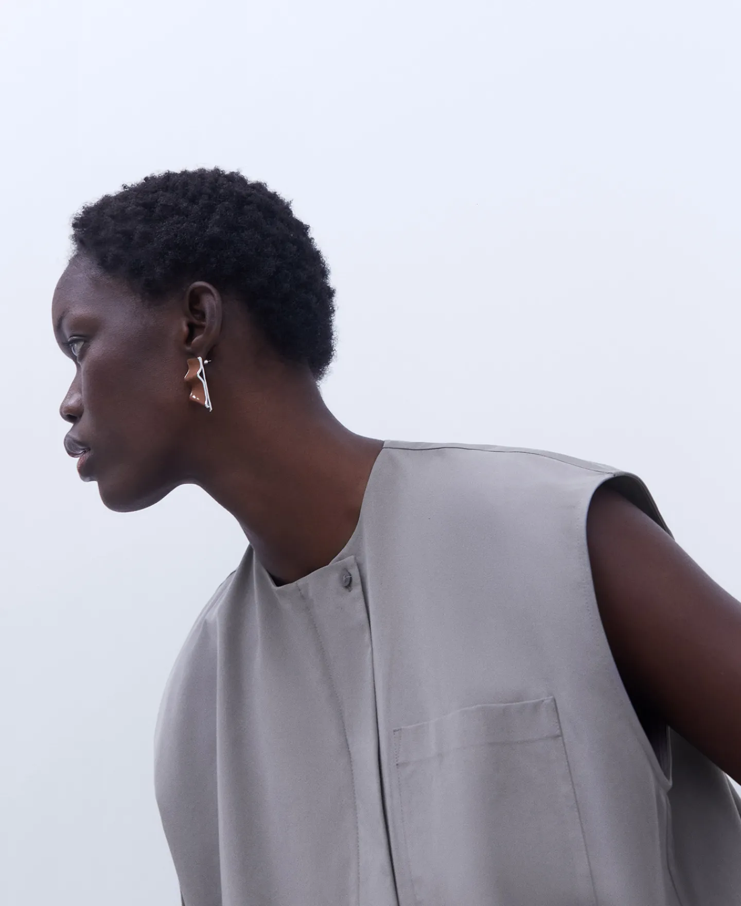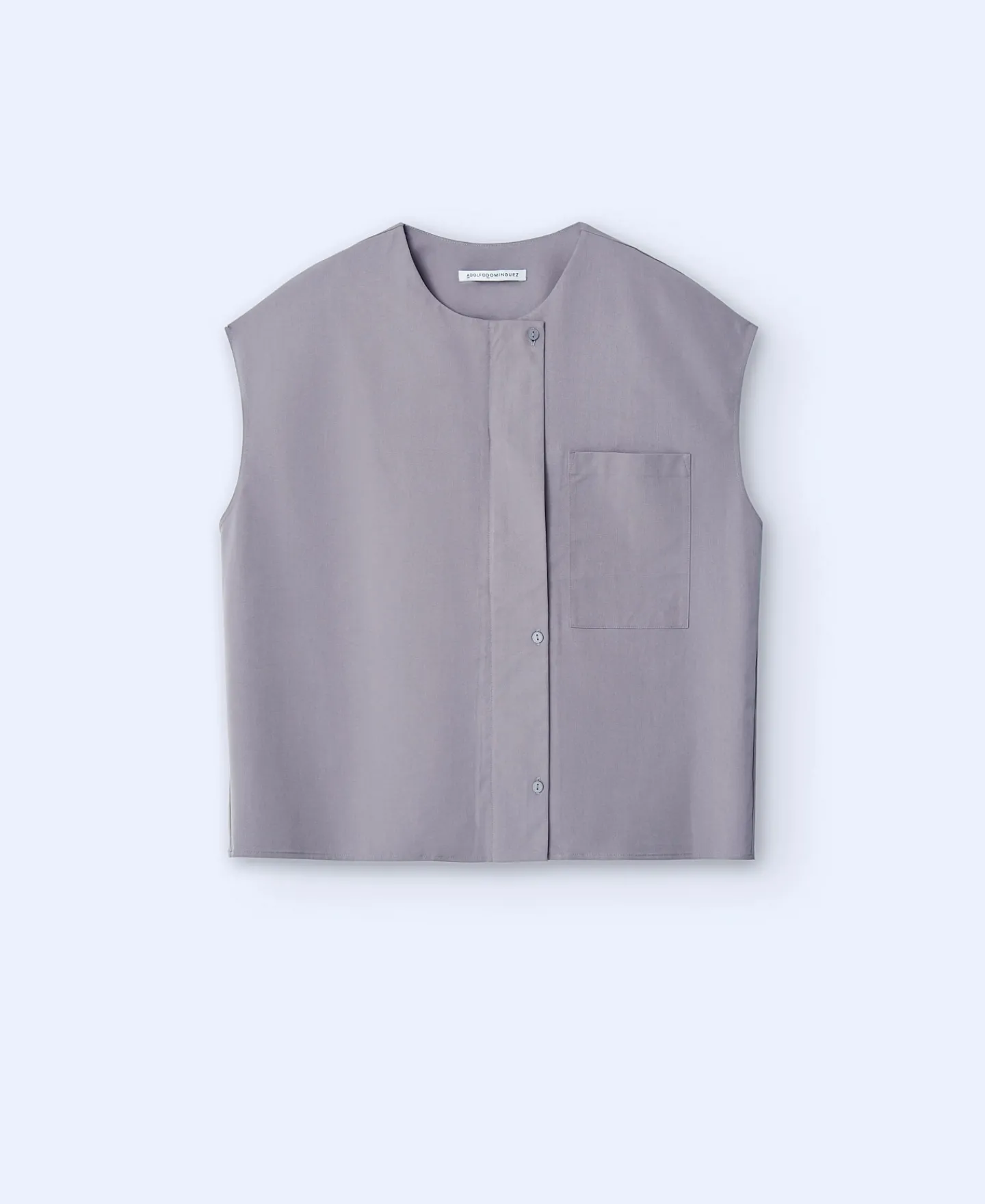 Blusa Sem Mangas De Tres Botoes. Gola Redonda. Bolso Plastrao Frontal. Fecho De Botoes E De Correr Com Carcela. Escapula…