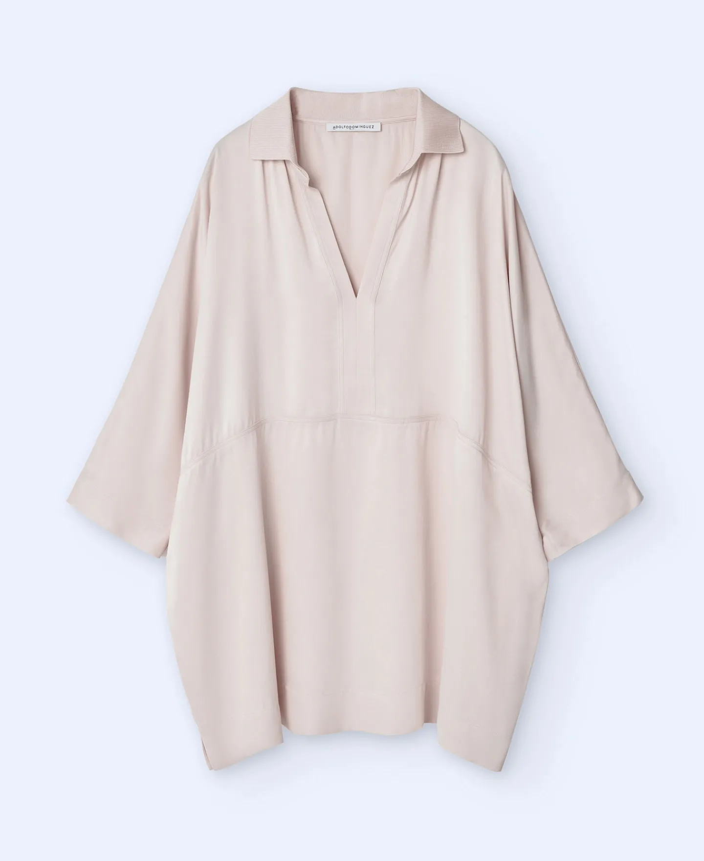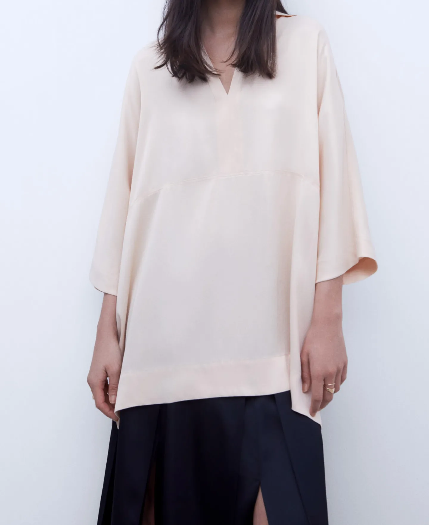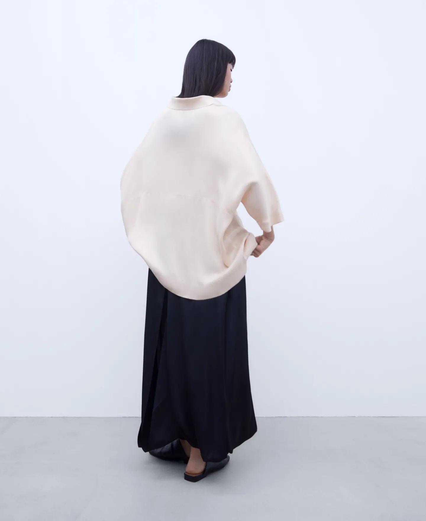 Camisa Em Viscose. Gola De Malha Com Lapela. Manga Japonesa Tres Quartos. Fluida. Aberturas Laterais.