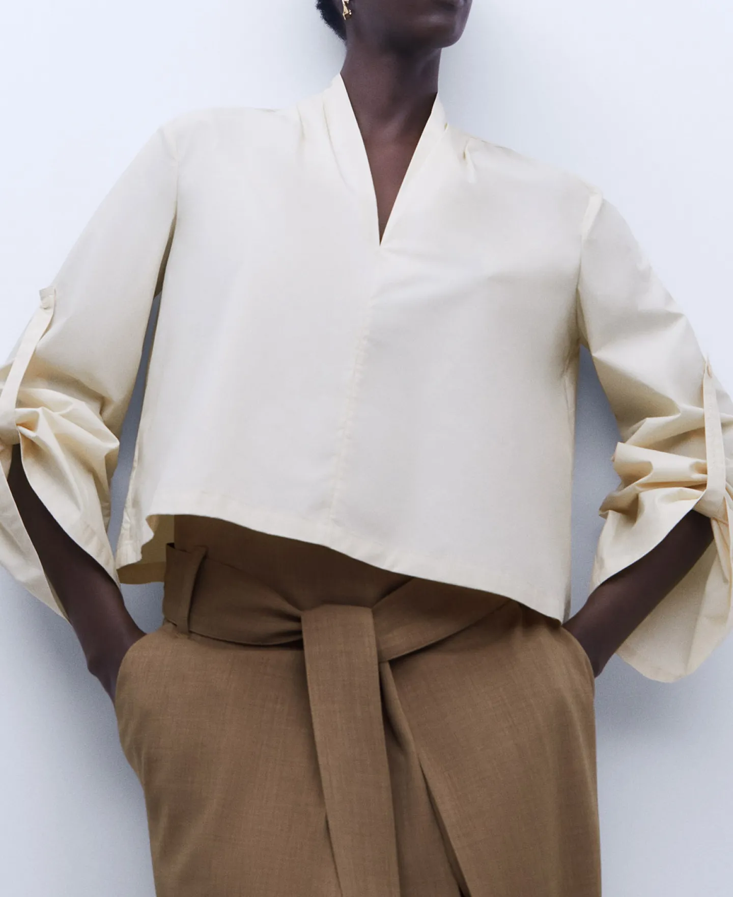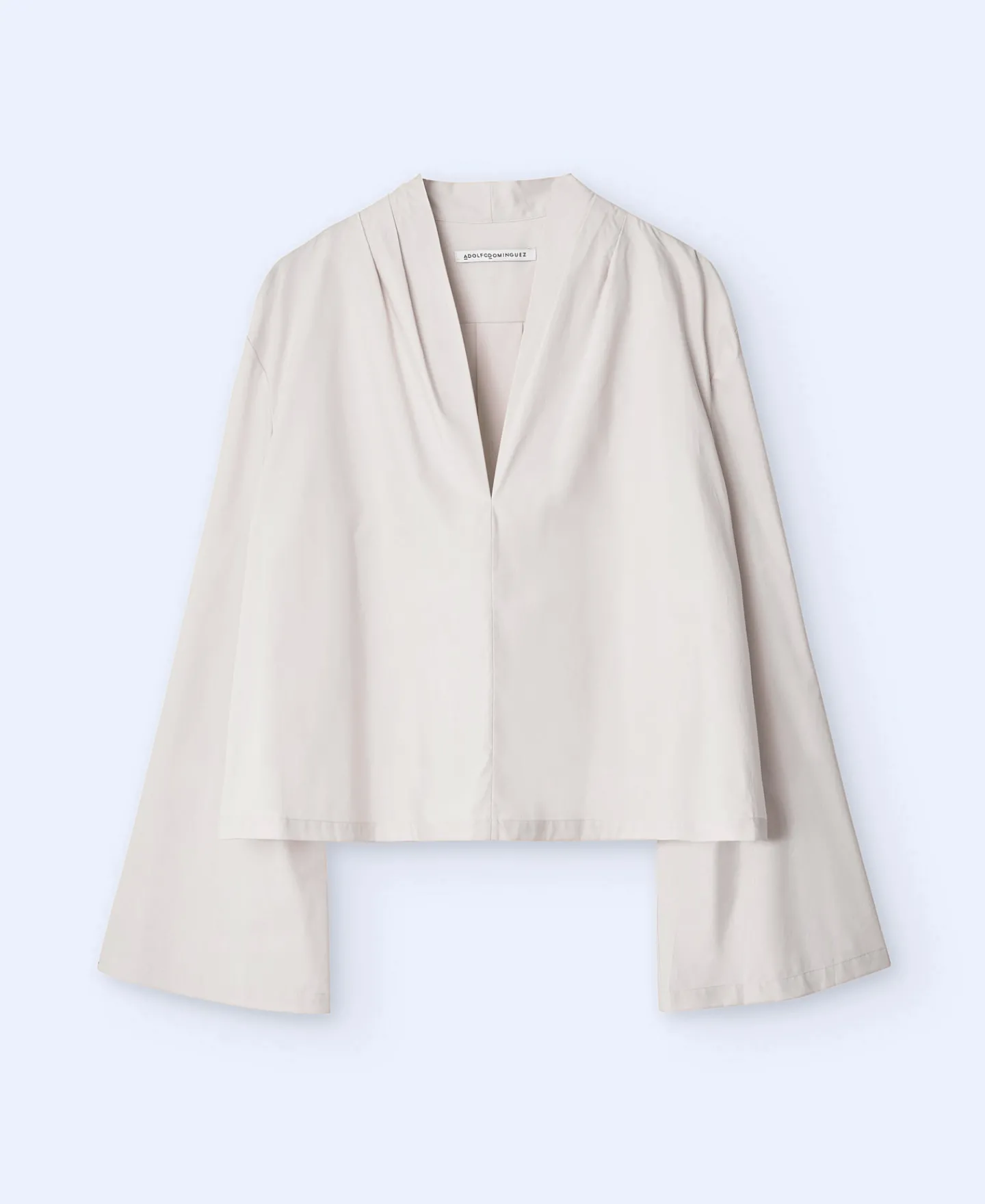 Camisa Ampla. 100% Algodao Organico. Decote Em V. Pincas No Ombro. Manga Comprida E Caida. Punho Evase. Escapulario Nas …