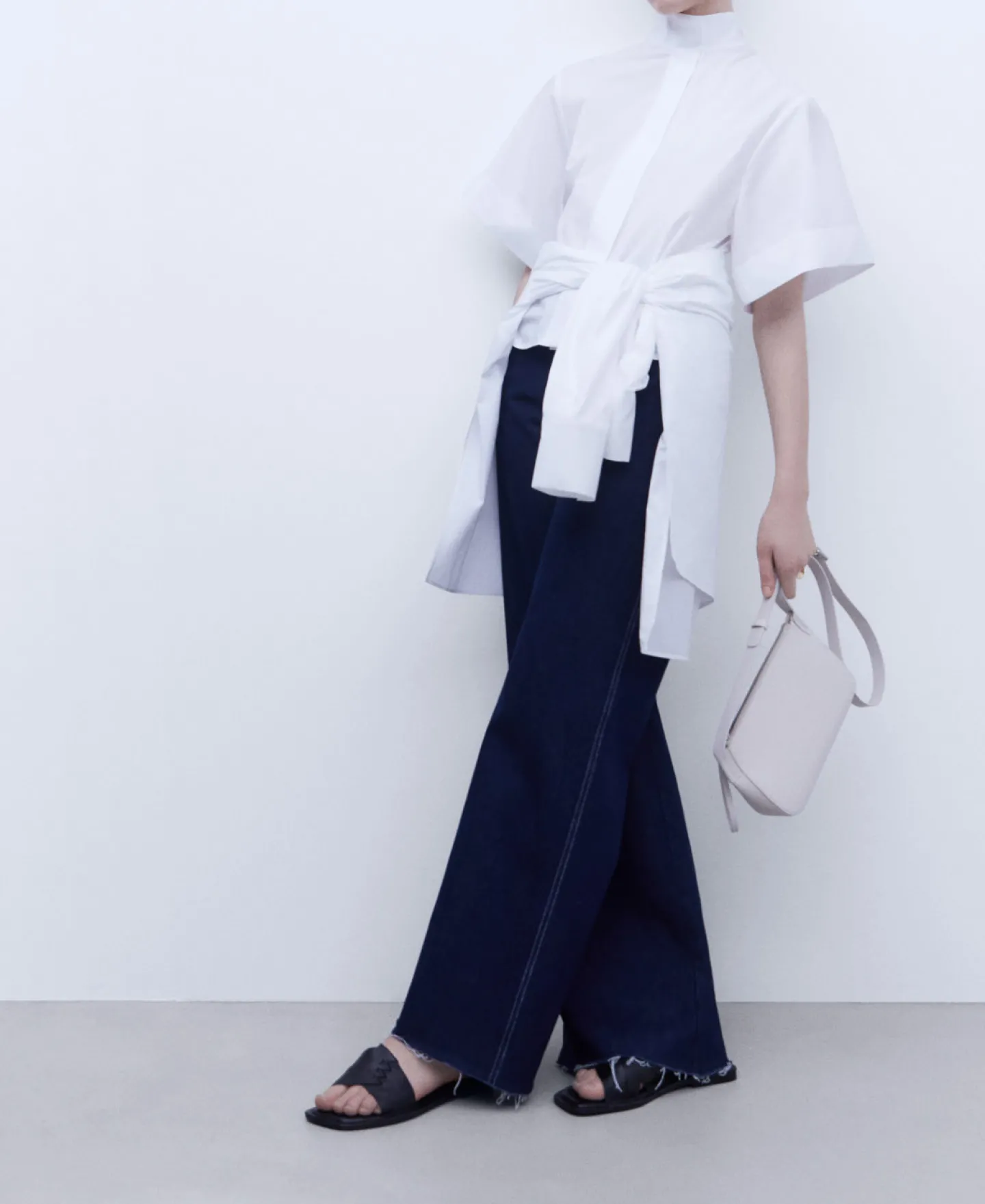 Gola De Lapela. Abotoadura Oculta Com Botoes De Pressao. Mangas Amplas.