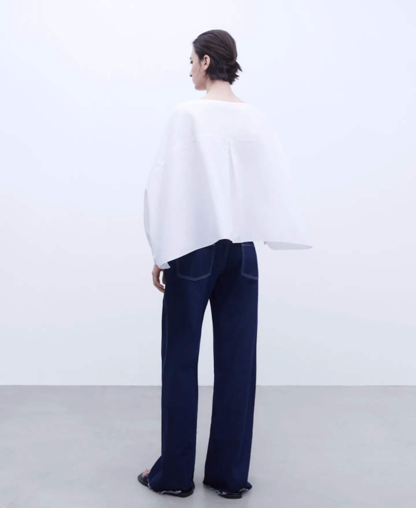 Linha Reta. Pela Cintura. Mangas Amplas Retangulares. Elemento Nos Punhos E Costas.