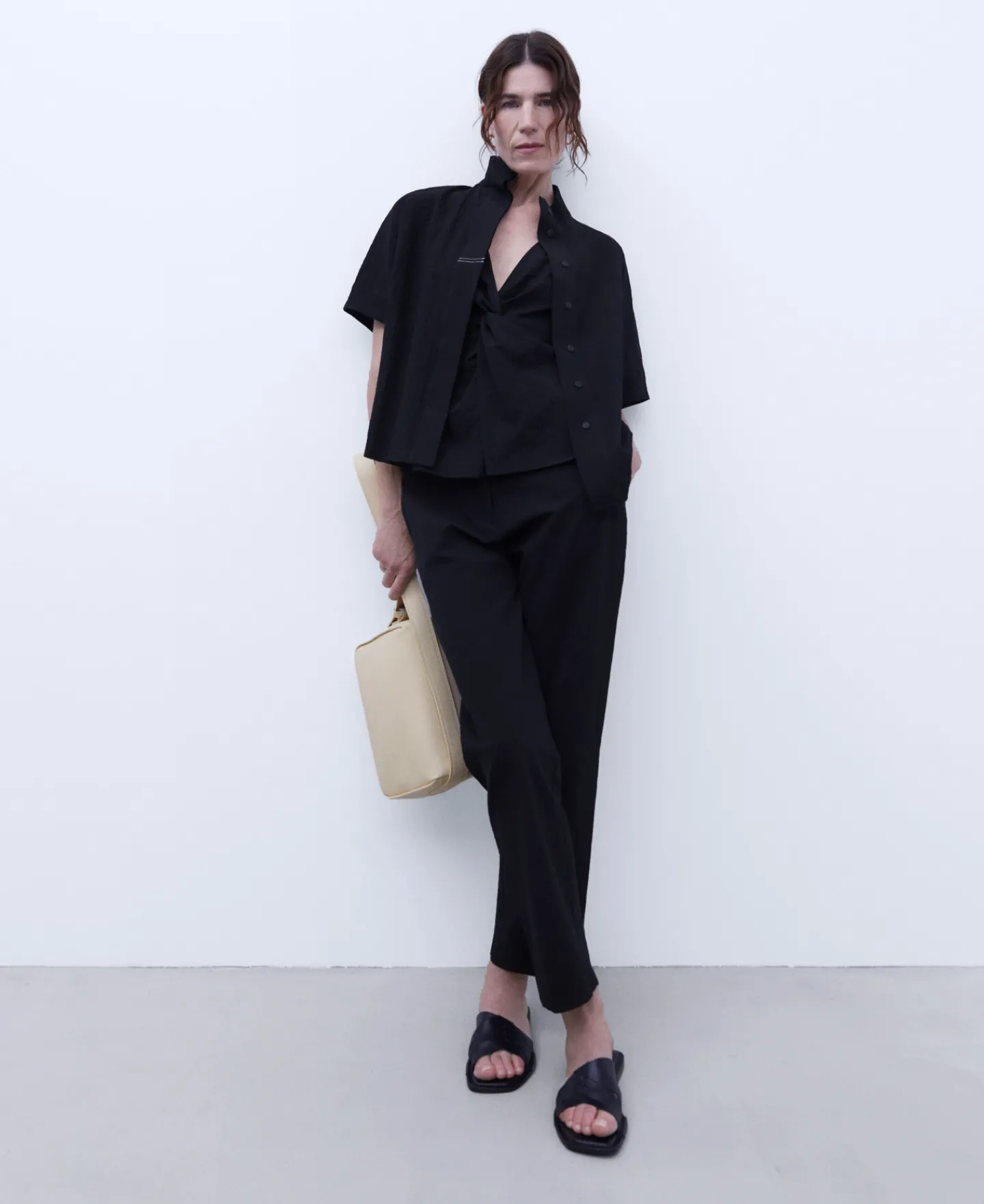 Decote Em V Duplo. Apanhado Com No. Comprimento Pela Anca.Algodao ElasticoDecote Em V DuploComprimento Anca