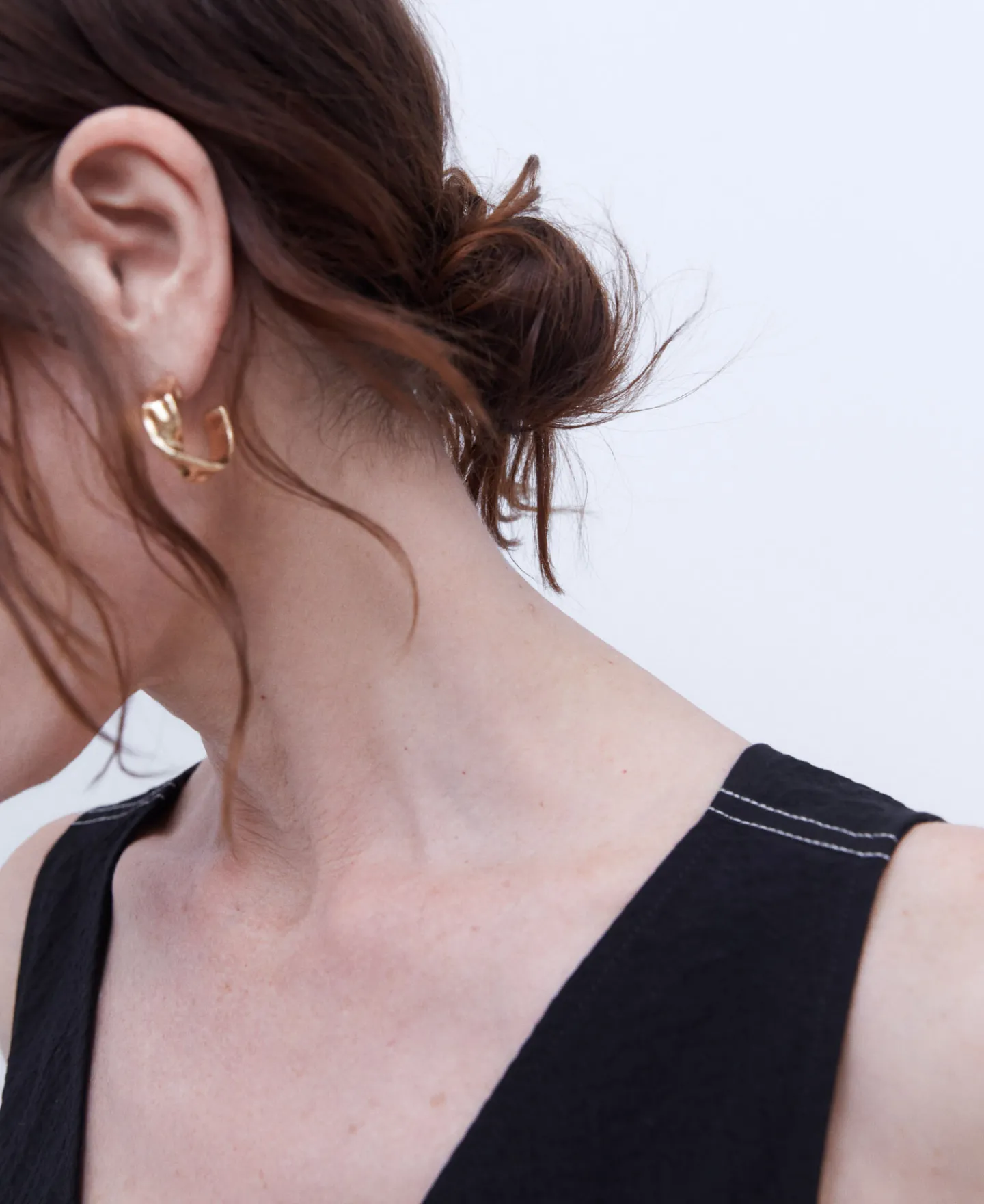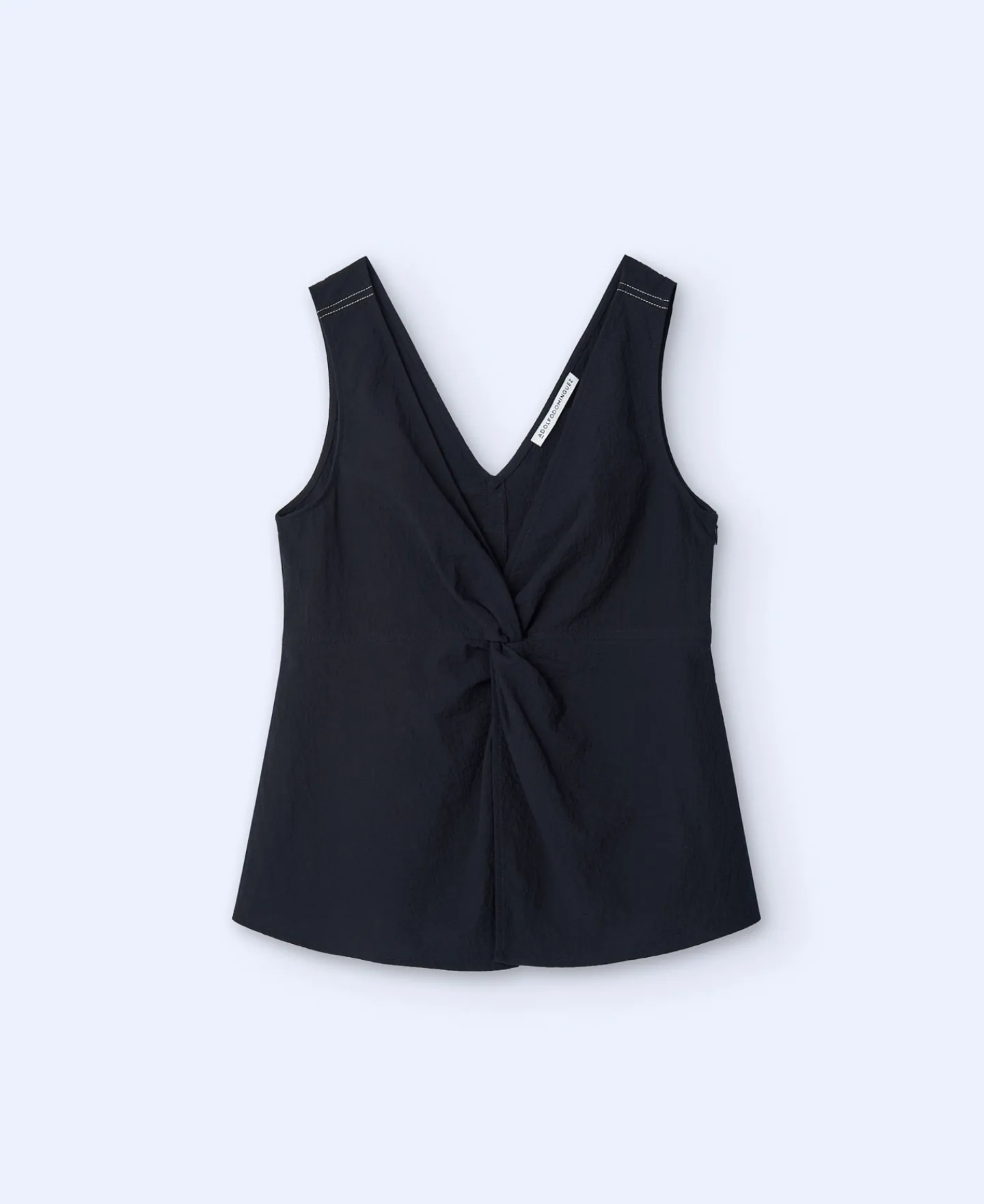 Decote Em V Duplo. Apanhado Com No. Comprimento Pela Anca.