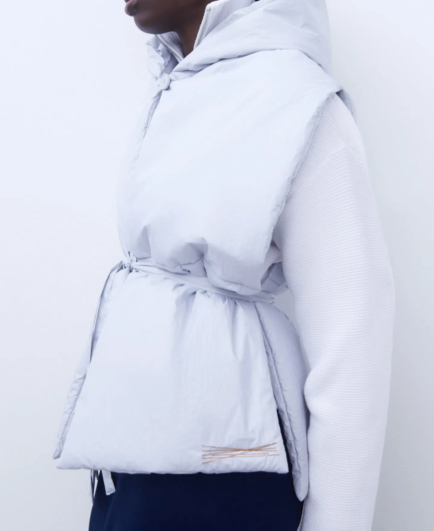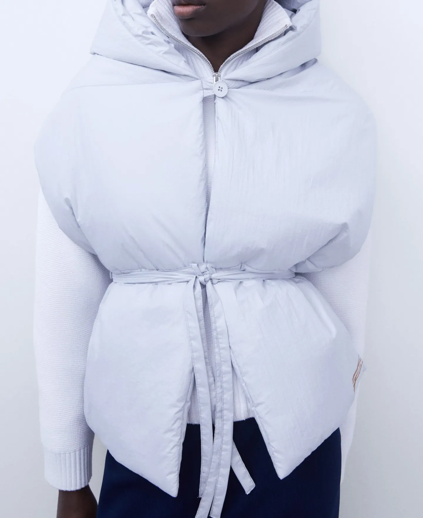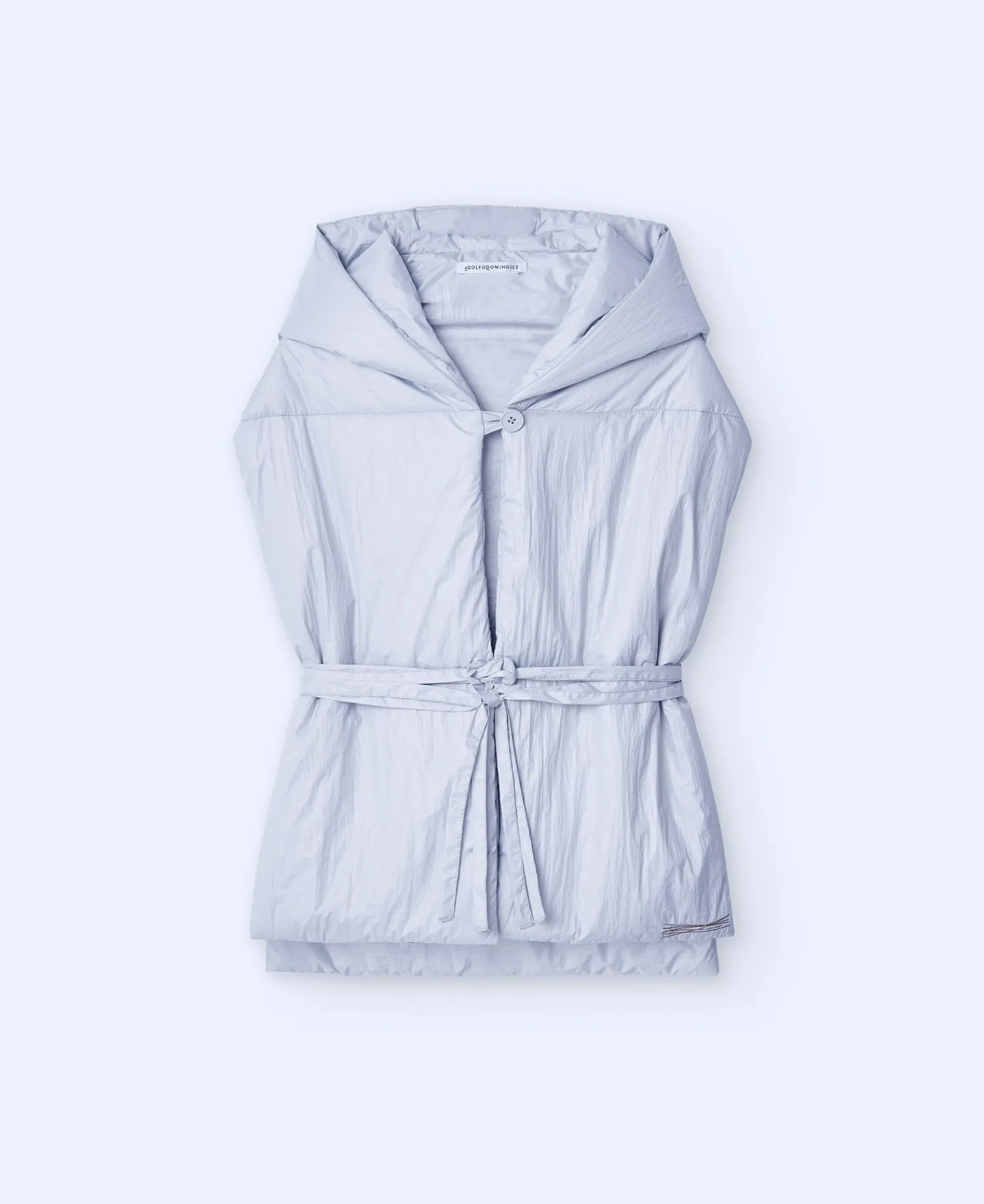Colete Com Capuz. Acolchoado. Logotipo. Fecho De Botao. Cinto.