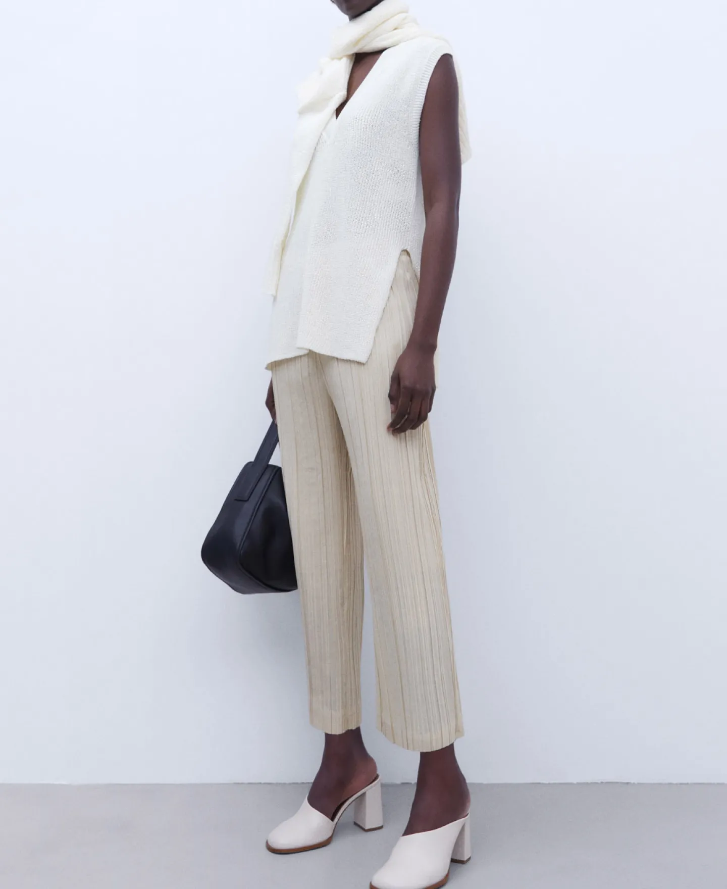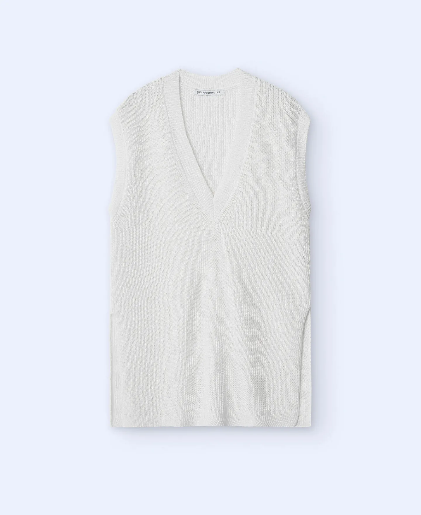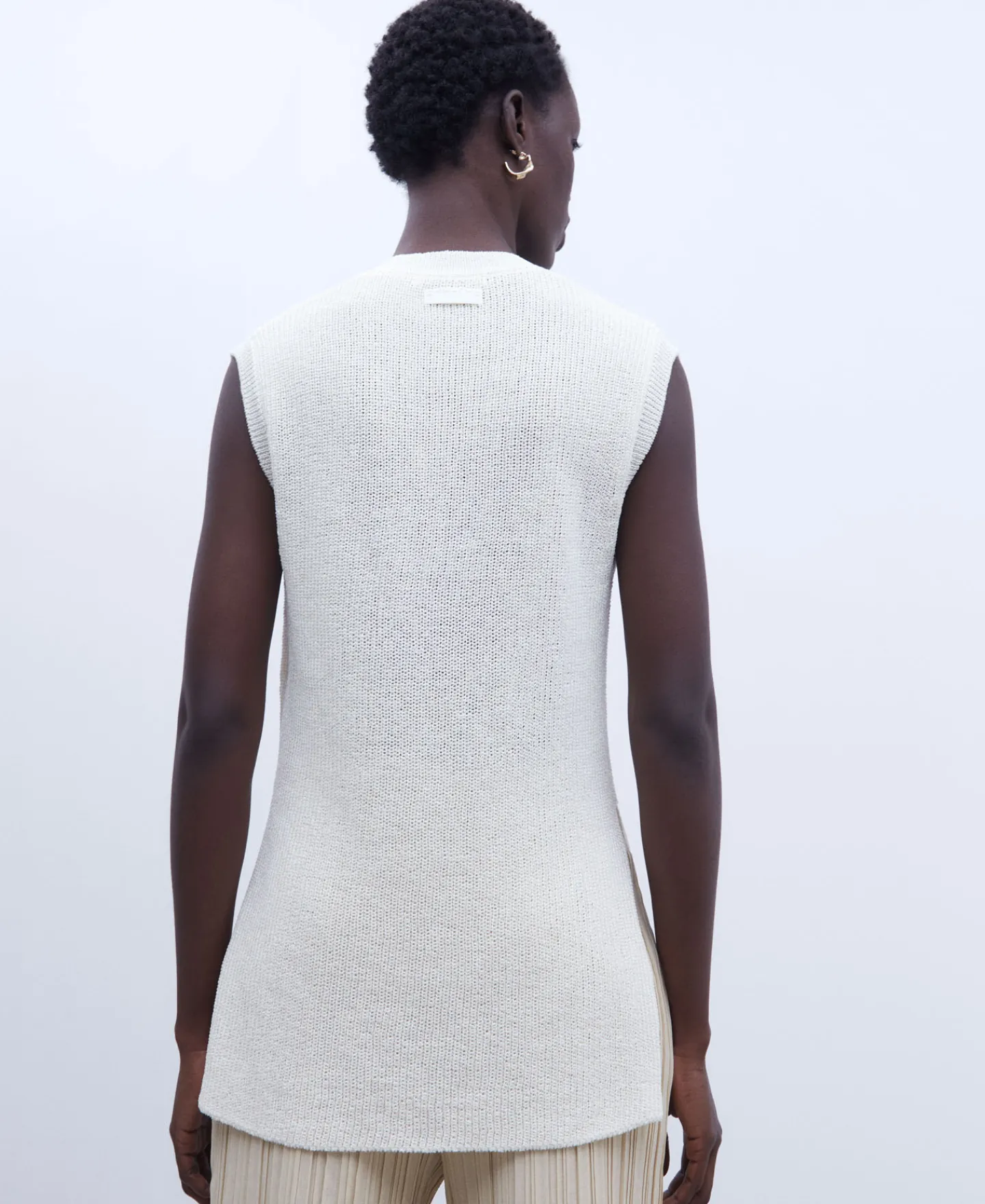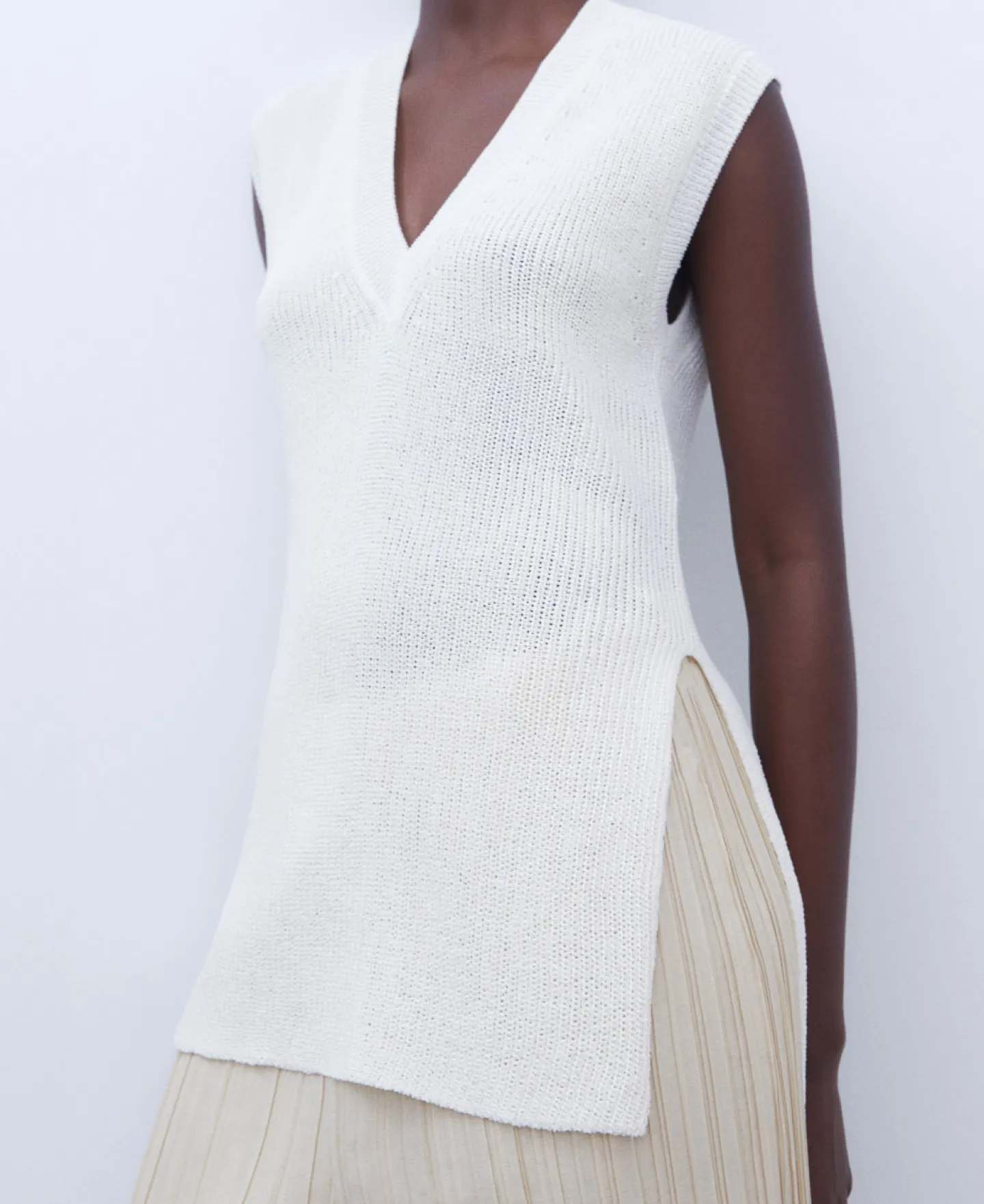 Colete Comprido. Decote Em V. Aberturas Laterais. Remates Canelados.