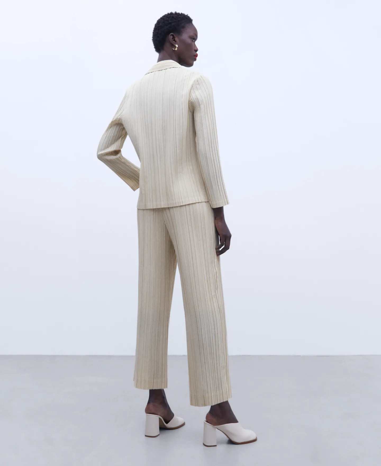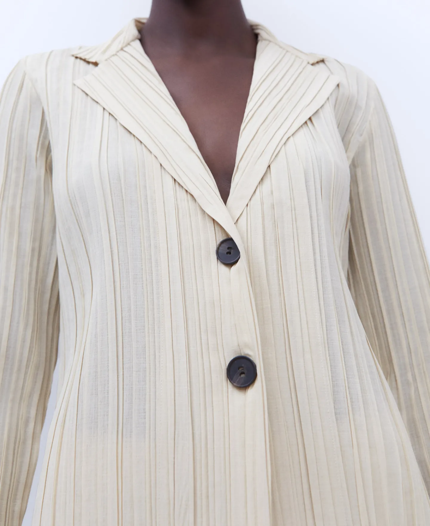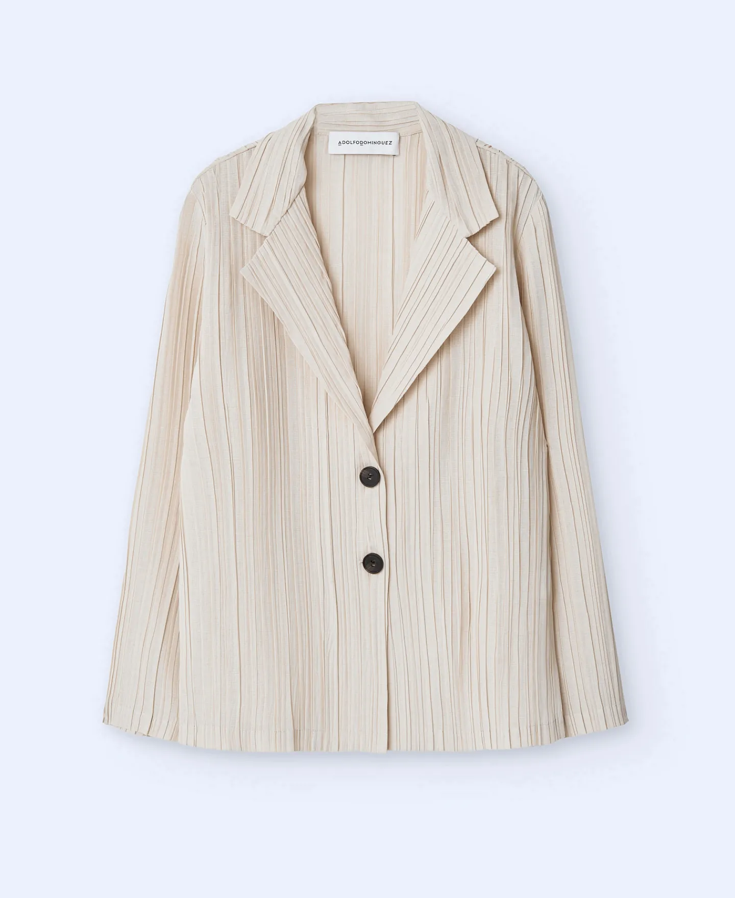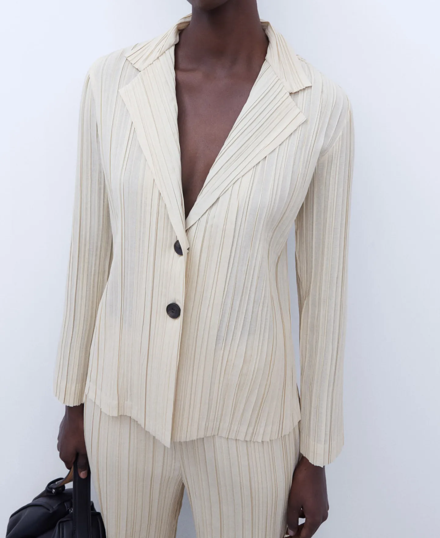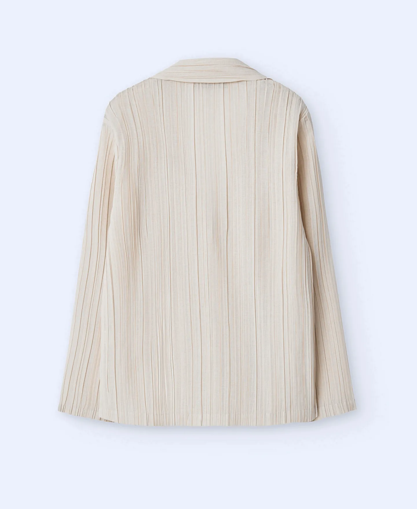 Blazer De Dois Botoes Em Crinkle. Gola De Lapela. Sem Bolsos.