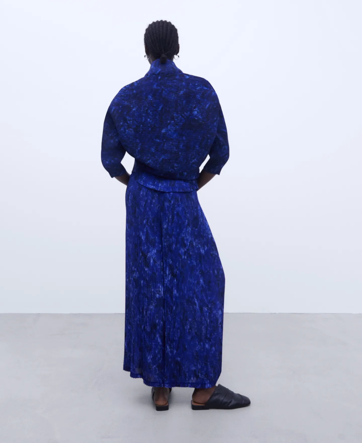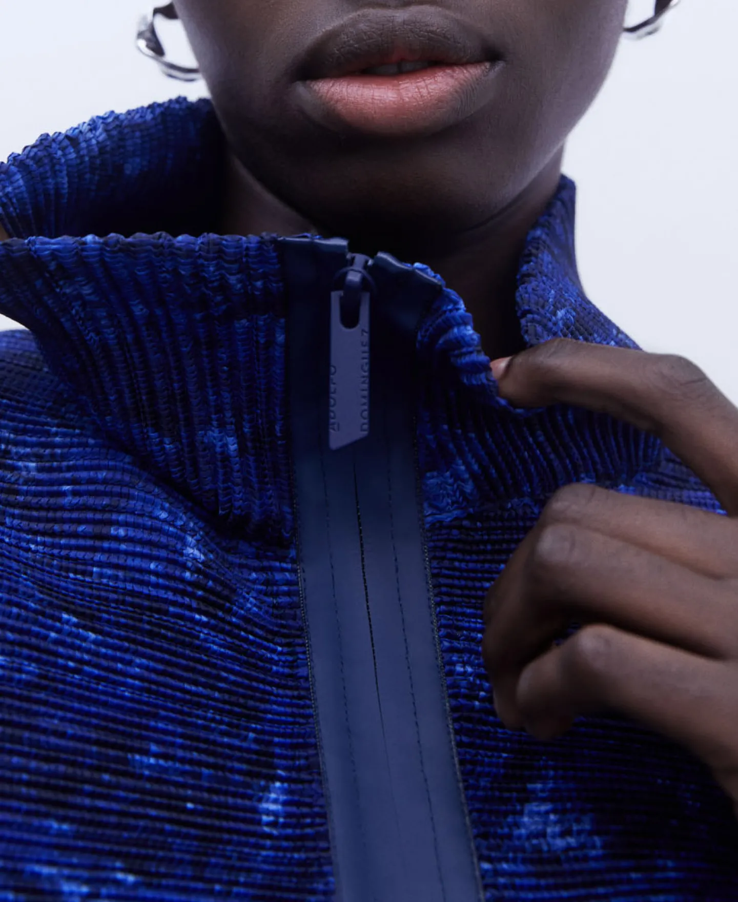 Camisola Desportiva Em Crinkle Estampado. Gola Chamine. Fecho De Correr Central Impermeavel. Manga Tres Quartos.