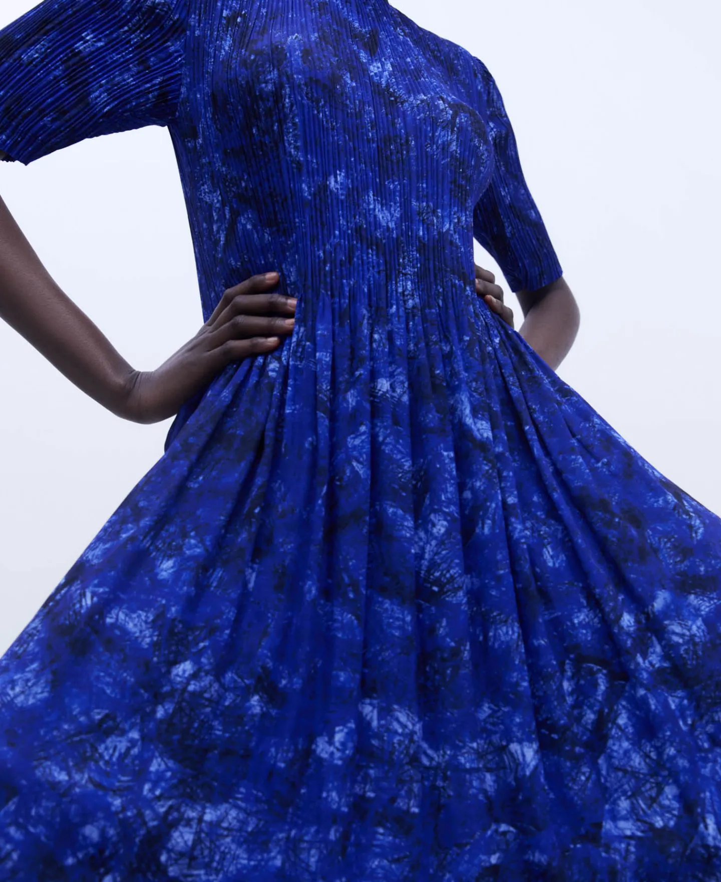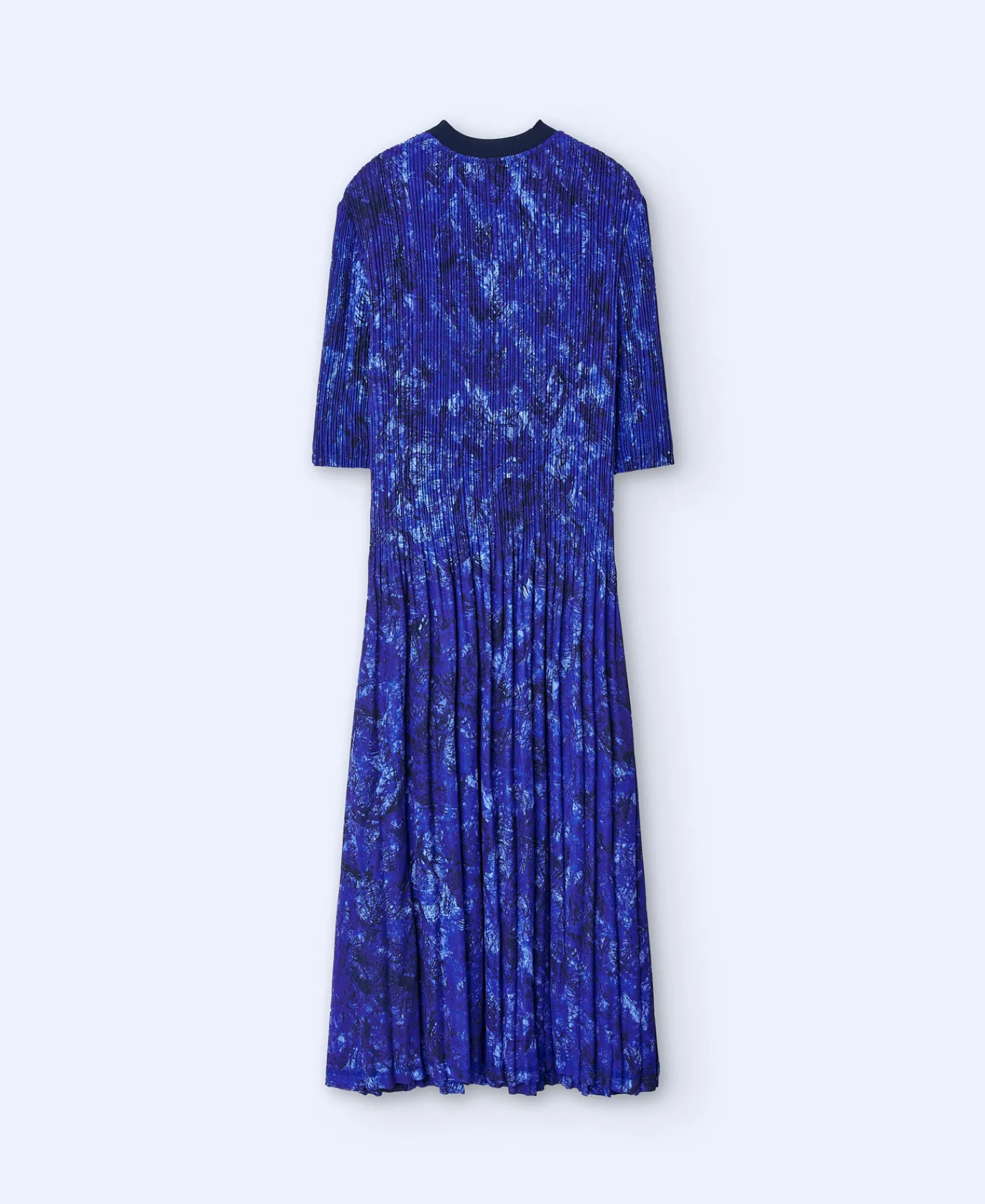 Vestido De Crinkle Estampado. Gola Redonda Em Malha. Manga Curta. Comprimento Pelo Joelho. Costura Overlock Nas Mangas E Bainha. Forrado.