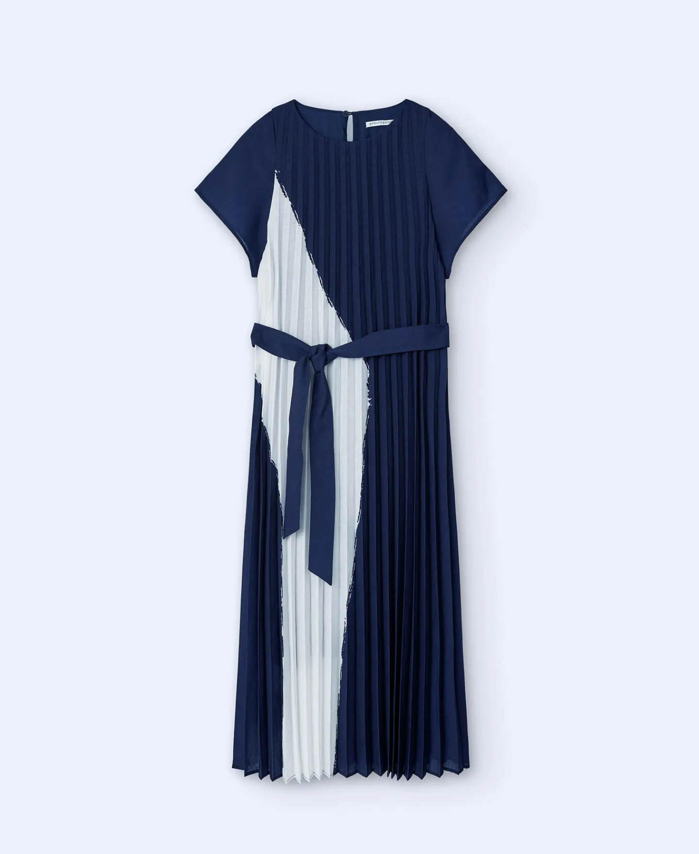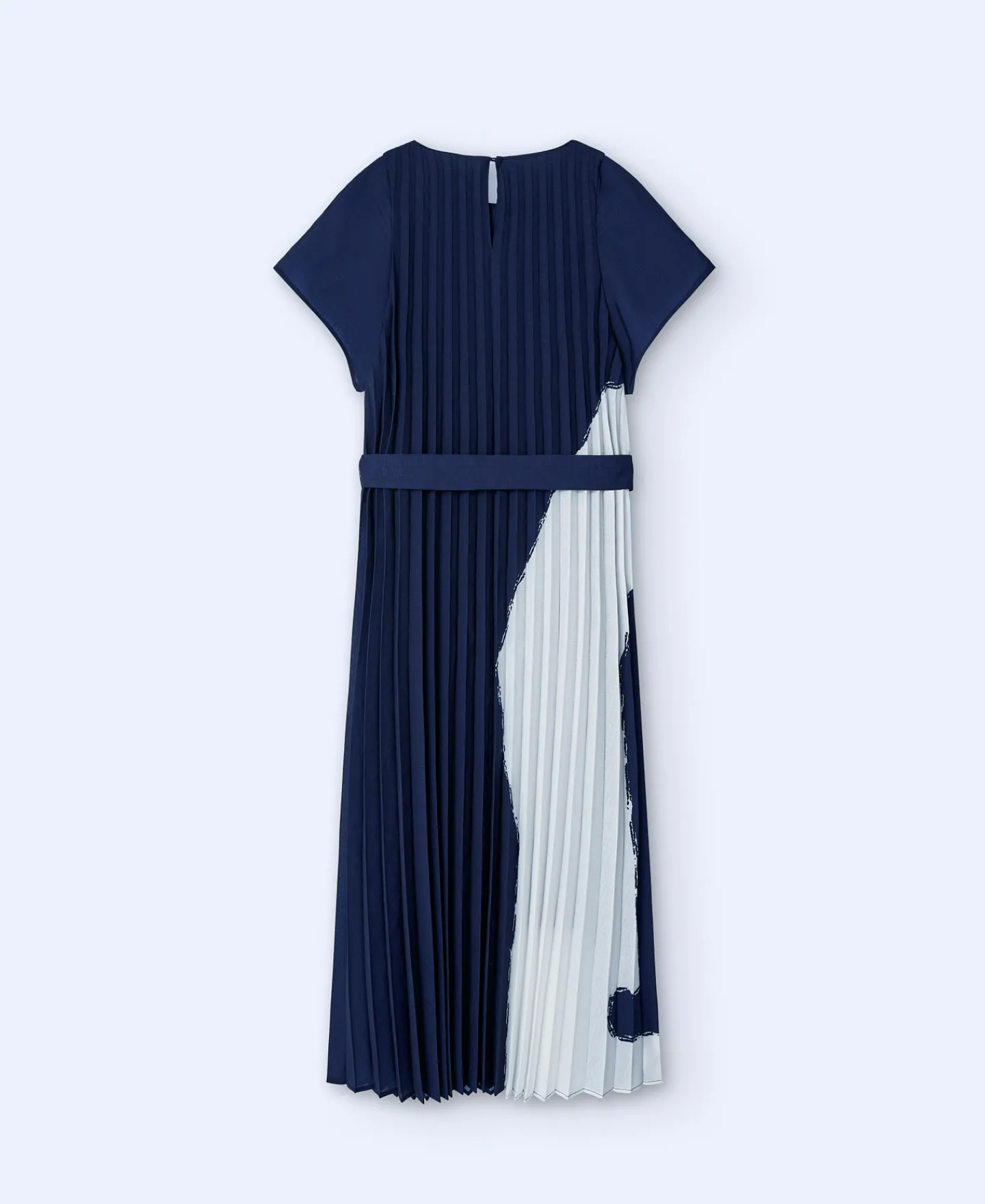 Vestido Em Crinkle Estampado. Gola Redonda. Fecho De Botao Traseiro. Manga Curta E Ampla. Cinto. Bainha Com Remates Em Contraste.