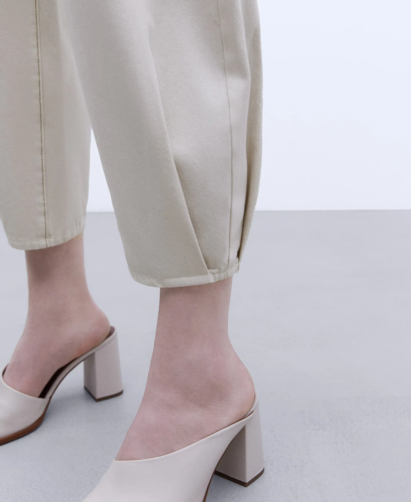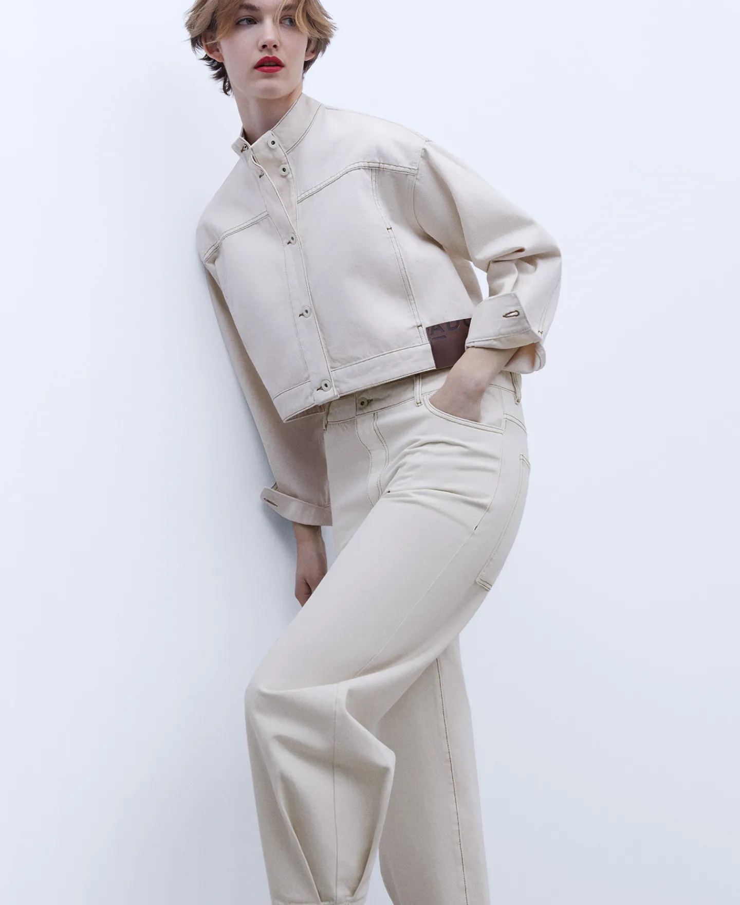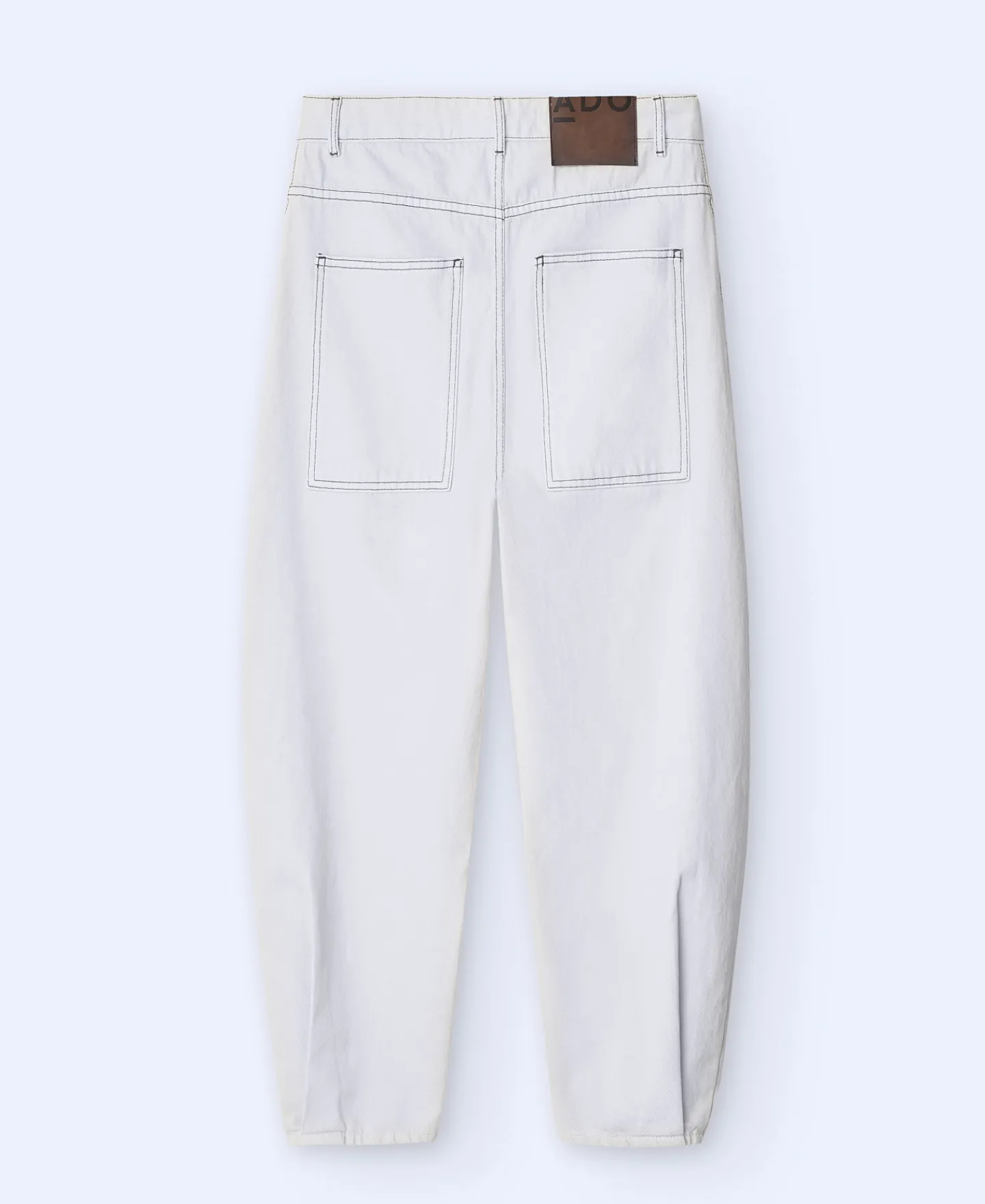 Cos Com Presilhas. Fecho Com Botao E Fecho De Correr. Cinco Bolsos. Costuras Em Contraste. Bainha Com Pincas.