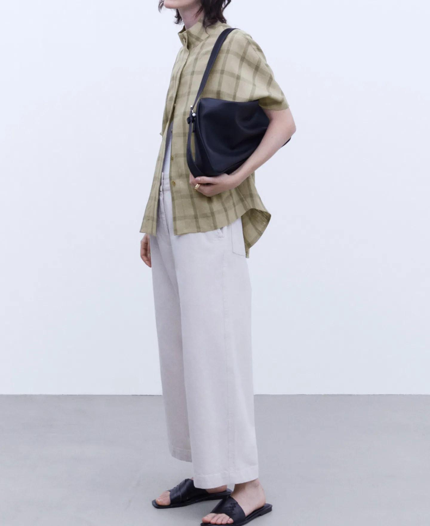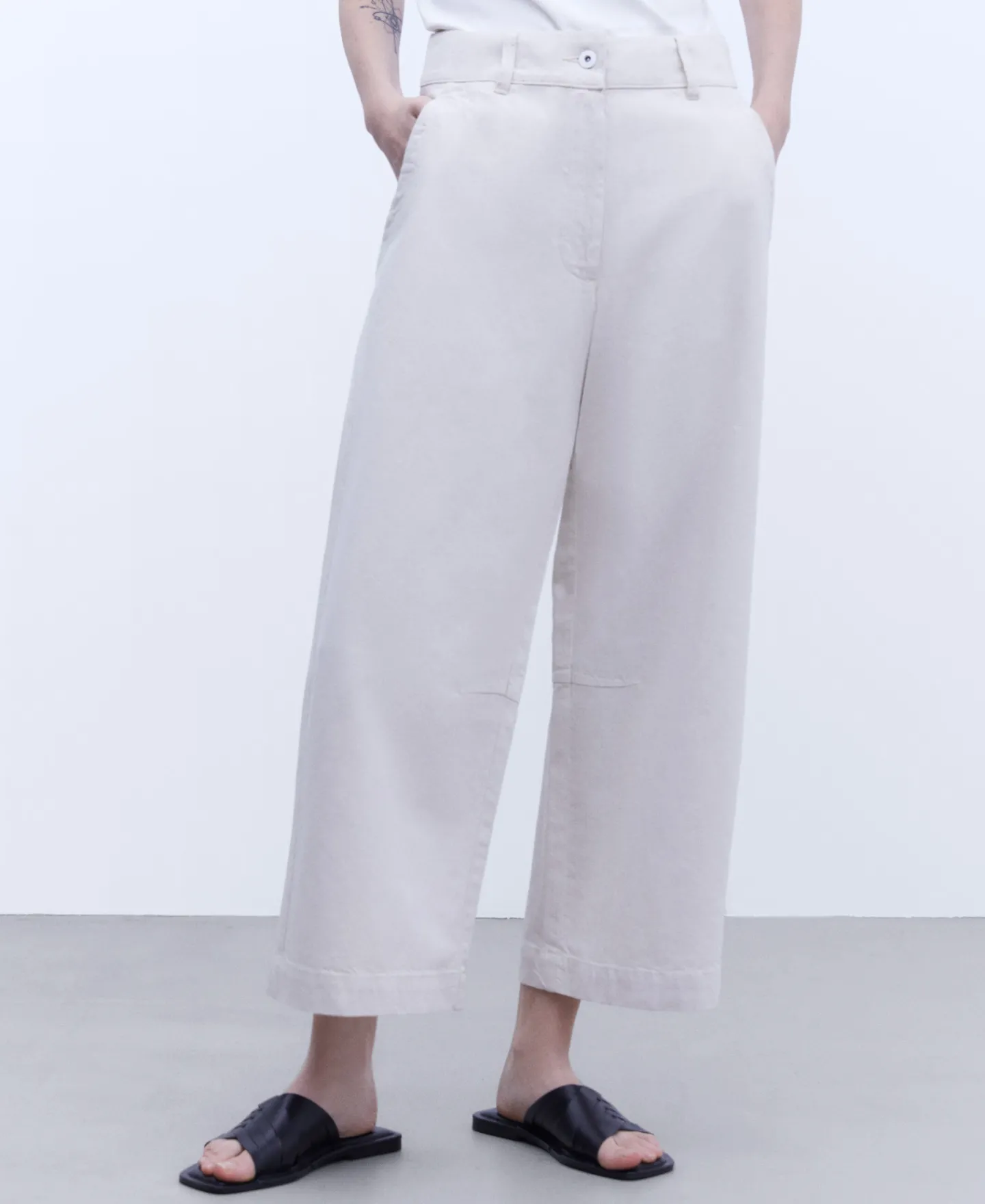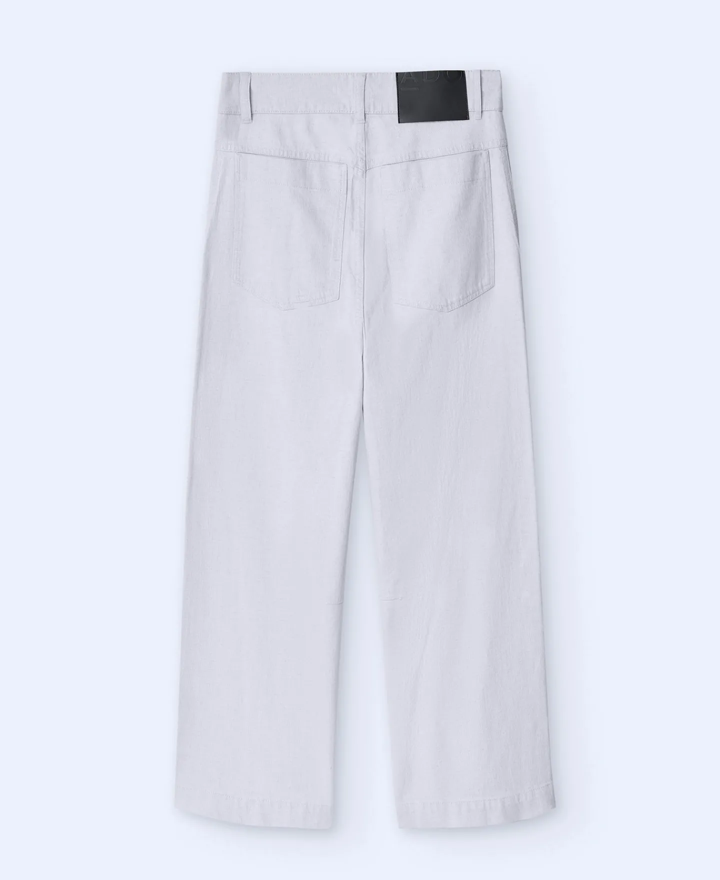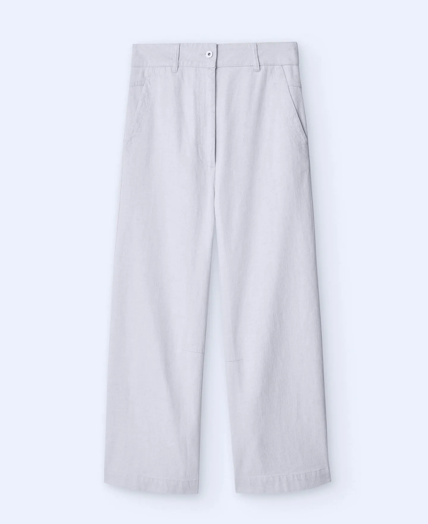Cintura Alta E Perna Ampla. Bolsos Laterais Embutidos. Fecho De Botao E De Correr.Algodao E LinhoCintura AltaPerna Ampla
